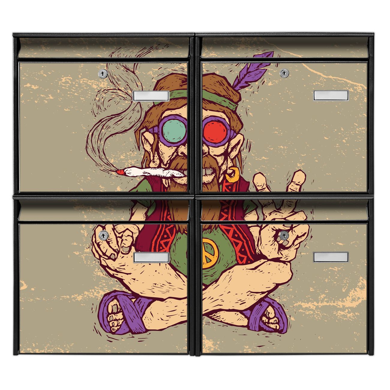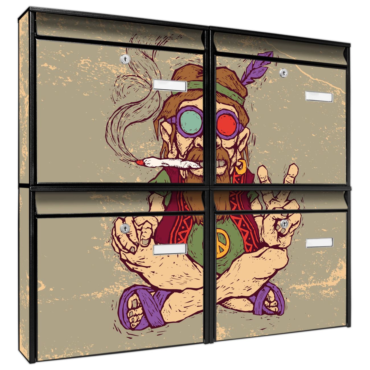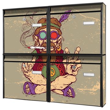 FUNKTION: Die Burg-Wächter Briefkastenanlage mit Motiv Peace bietet Ihnen ausreichend Fassungsvermögen um auch A4 und C4 Sendungen zu empfangen. Das integrierte Namensschild lässt sich individuell beschriften. Wählen Sie aus den Grundfarben weiß, silber und schwarz. DESIGN: Die 4 Briefkästen haben ein ansprechendes und zeitloses Design, ohne dabei auf Funktionalität zu verzichten. Das Material ist sehr stabil, wetterfest und rostfrei. Durch das Motiv Peace werden die Postkästen zu einem Blickfang. DETAILS: Die Postkästen bestehen aus verzinktem Stahl der zusätzlich mit Klarlack versiegelt wurde. Die Kästen sind gesamt 64,5cm hoch, 72,5cm breit und 10cm tief. Das Motiv besteht aus einer wetter- und UV-festen Folie, die Ihren Briefkasten zusätzlich vor Kratzern schützt. Die Postkästen werden mit Montagematerial, je einem Namensschild und je zwei Schlüsseln geliefert. NUTZEN: Das Briefkastenset eignet sich für die Wandmontage, die Größe bietet genügend Platz für Sendungen aller Art. Das zeitlose Design sowie die stabile Bauart bieten Ihnen einen treuen Begleiter für Ihre Post. BANJADO: