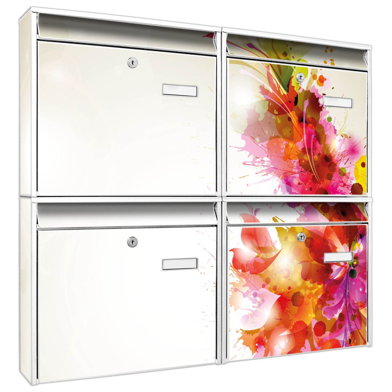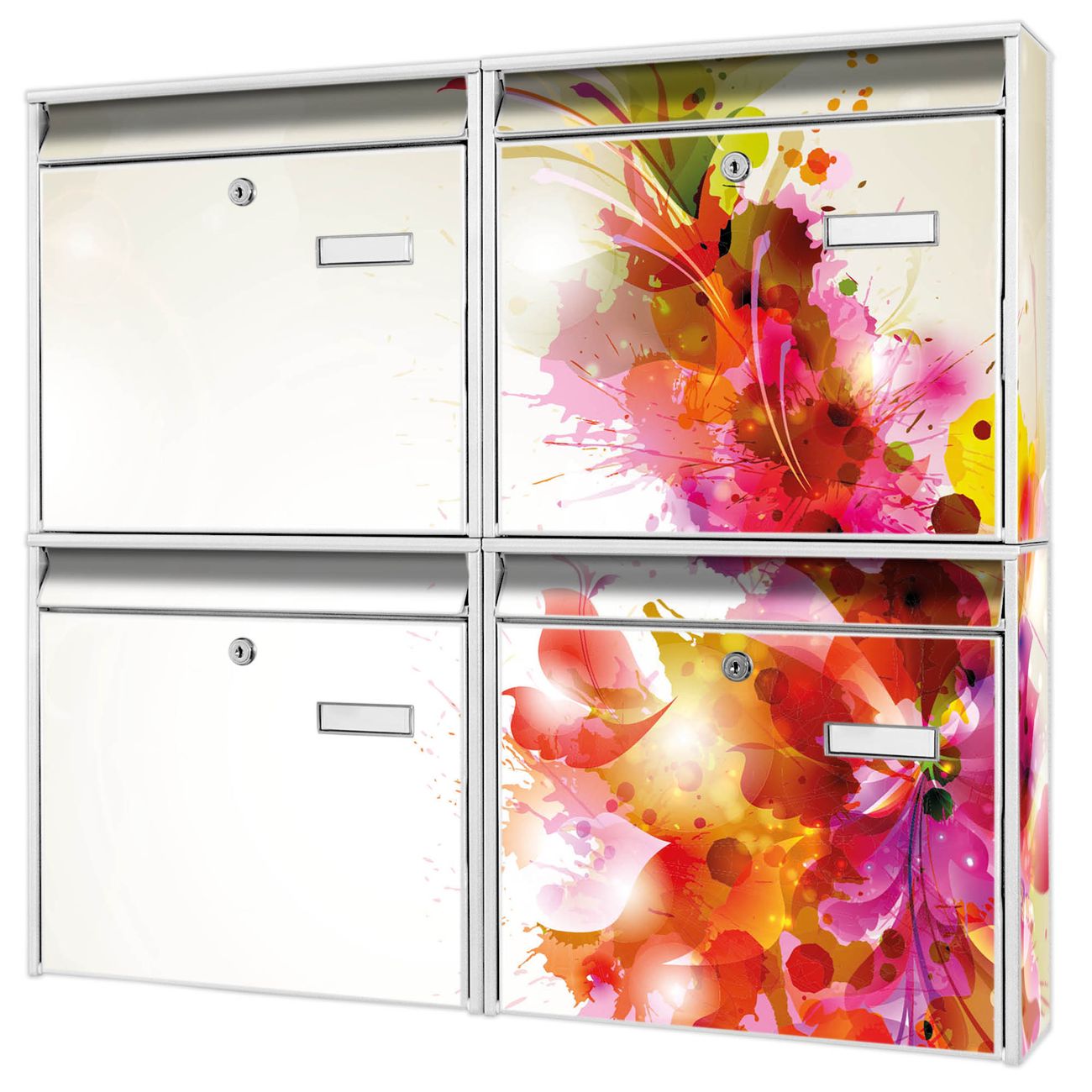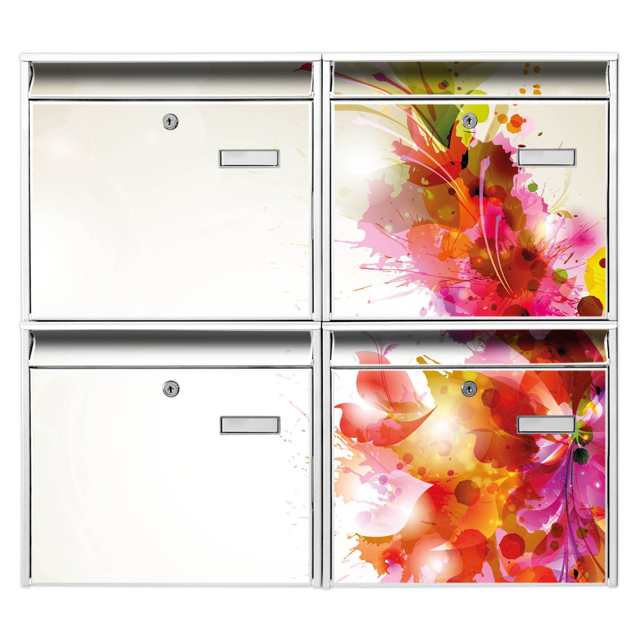 FUNKTION: Die Burg-Wächter Briefkastenanlage mit Motiv Pink Explosion bietet Ihnen ausreichend Fassungsvermögen um auch A4 und C4 Sendungen zu empfangen. Das integrierte Namensschild lässt sich individuell beschriften. Wählen Sie aus den Grundfarben weiß, silber und schwarz. DESIGN: Die 4 Briefkästen haben ein ansprechendes und zeitloses Design, ohne dabei auf Funktionalität zu verzichten. Das Material ist sehr stabil, wetterfest und rostfrei. Durch das Motiv Pink Explosion werden die Postkästen zu einem Blickfang. DETAILS: Die Postkästen bestehen aus verzinktem Stahl der zusätzlich mit Klarlack versiegelt wurde. Die Kästen sind gesamt 64,5cm hoch, 72,5cm breit und 10cm tief. Das Motiv besteht aus einer wetter- und UV-festen Folie, die Ihren Briefkasten zusätzlich vor Kratzern schützt. Die Postkästen werden mit Montagematerial, je einem Namensschild und je zwei Schlüsseln geliefert. NUTZEN: Das Briefkastenset eignet sich für die Wandmontage, die Größe bietet genügend Platz für Sendungen aller Art. Das zeitlose Design sowie die stabile Bauart bieten Ihnen einen treuen Begleiter für Ihre Post. BANJADO: