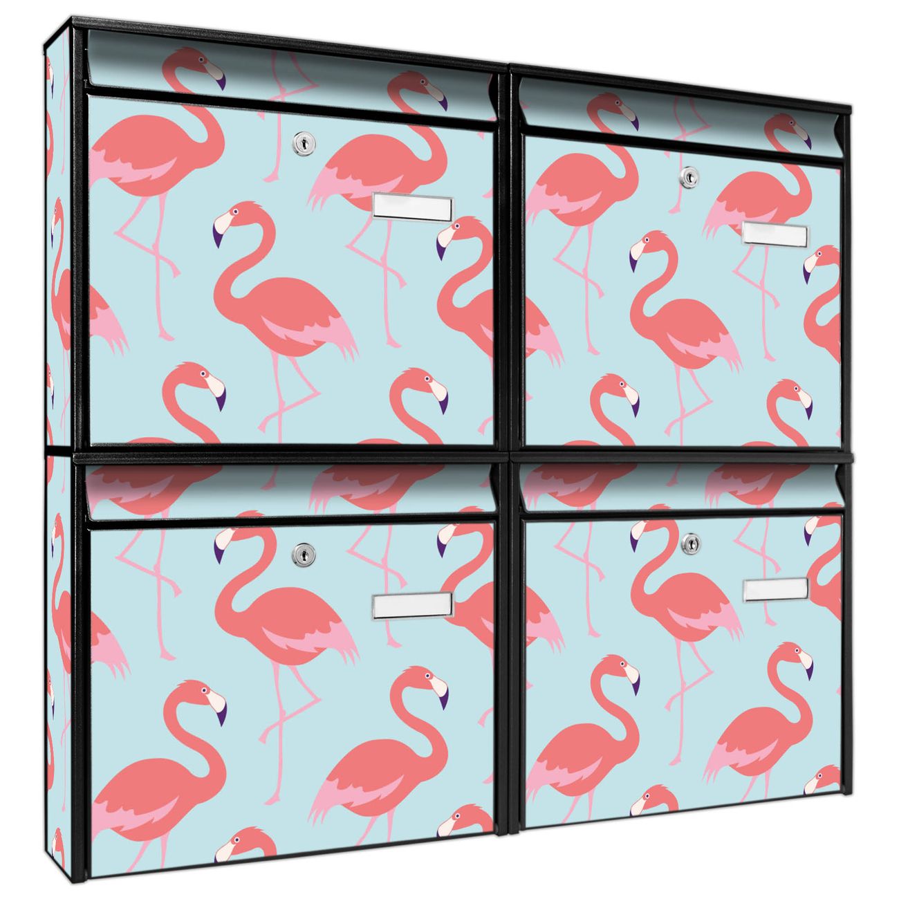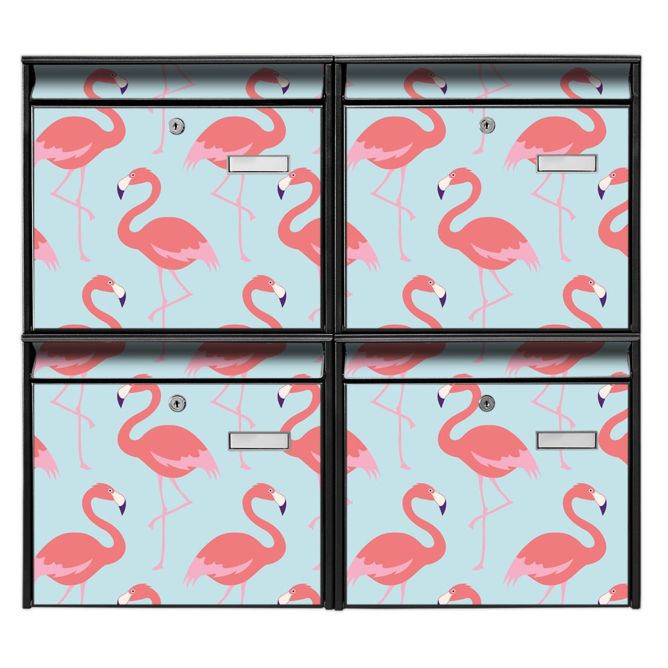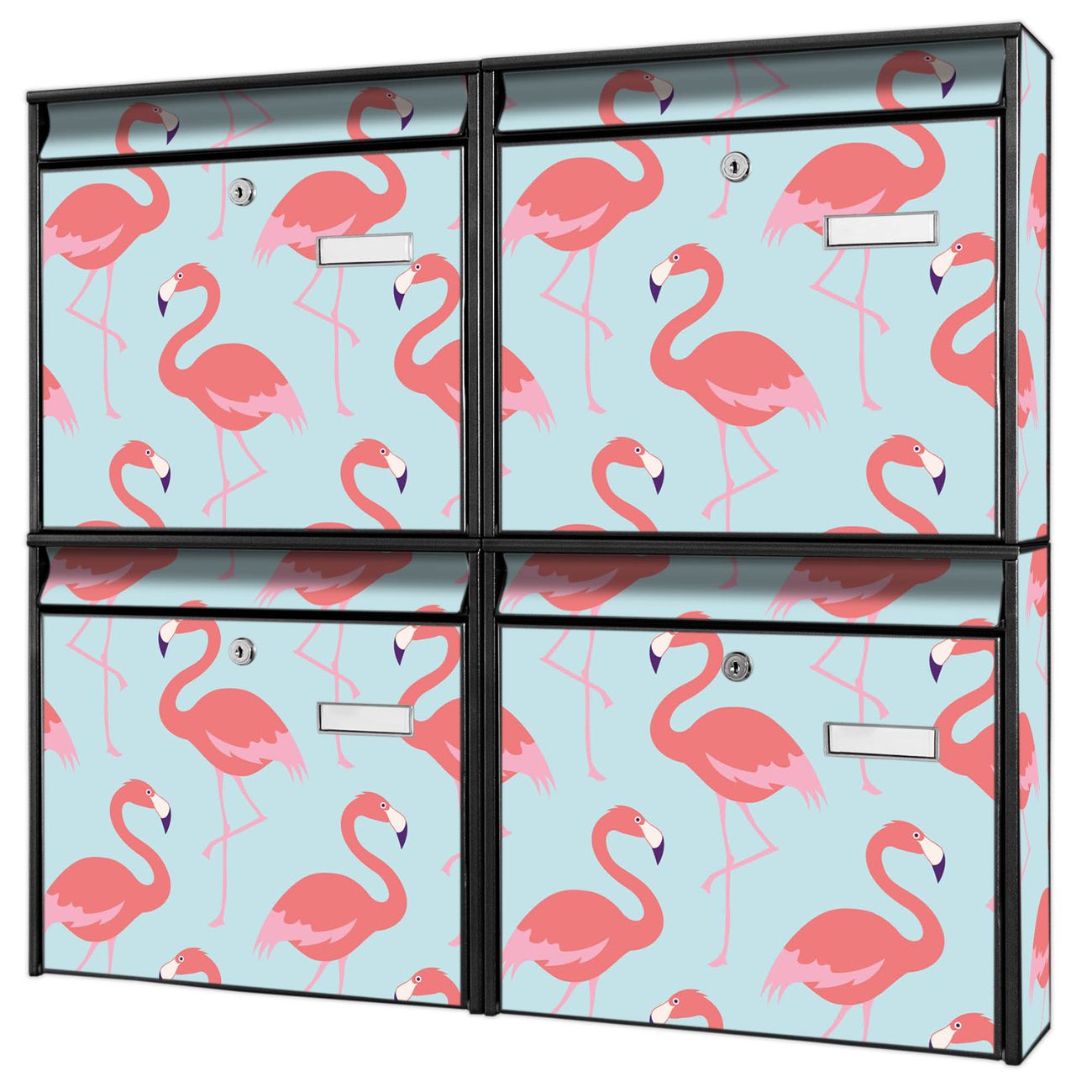 FUNKTION: Die Burg-Wächter Briefkastenanlage mit Motiv Pink Tango bietet Ihnen ausreichend Fassungsvermögen um auch A4 und C4 Sendungen zu empfangen. Das integrierte Namensschild lässt sich individuell beschriften. Wählen Sie aus den Grundfarben weiß, silber und schwarz. DESIGN: Die 4 Briefkästen haben ein ansprechendes und zeitloses Design, ohne dabei auf Funktionalität zu verzichten. Das Material ist sehr stabil, wetterfest und rostfrei. Durch das Motiv Pink Tango werden die Postkästen zu einem Blickfang. DETAILS: Die Postkästen bestehen aus verzinktem Stahl der zusätzlich mit Klarlack versiegelt wurde. Die Kästen sind gesamt 64,5cm hoch, 72,5cm breit und 10cm tief. Das Motiv besteht aus einer wetter- und UV-festen Folie, die Ihren Briefkasten zusätzlich vor Kratzern schützt. Die Postkästen werden mit Montagematerial, je einem Namensschild und je zwei Schlüsseln geliefert. NUTZEN: Das Briefkastenset eignet sich für die Wandmontage, die Größe bietet genügend Platz für Sendungen aller Art. Das zeitlose Design sowie die stabile Bauart bieten Ihnen einen treuen Begleiter für Ihre Post. BANJADO: