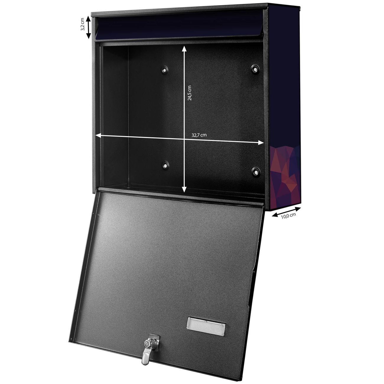- je Briefkasten: 36,2x32,2x10cm BxHxT