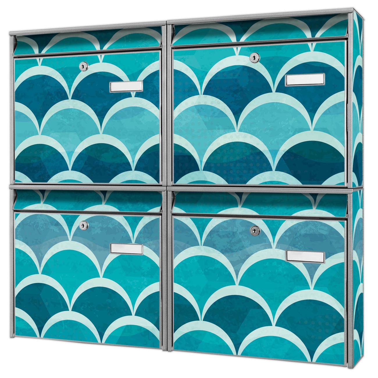 FUNKTION: Die Burg-Wächter Briefkastenanlage mit Motiv Raue See bietet Ihnen ausreichend Fassungsvermögen um auch A4 und C4 Sendungen zu empfangen. Das integrierte Namensschild lässt sich individuell beschriften. Wählen Sie aus den Grundfarben weiß, silber und schwarz. DESIGN: Die 4 Briefkästen haben ein ansprechendes und zeitloses Design, ohne dabei auf Funktionalität zu verzichten. Das Material ist sehr stabil, wetterfest und rostfrei. Durch das Motiv Raue See werden die Postkästen zu einem Blickfang. DETAILS: Die Postkästen bestehen aus verzinktem Stahl der zusätzlich mit Klarlack versiegelt wurde. Die Kästen sind gesamt 64,5cm hoch, 72,5cm breit und 10cm tief. Das Motiv besteht aus einer wetter- und UV-festen Folie, die Ihren Briefkasten zusätzlich vor Kratzern schützt. Die Postkästen werden mit Montagematerial, je einem Namensschild und je zwei Schlüsseln geliefert. NUTZEN: Das Briefkastenset eignet sich für die Wandmontage, die Größe bietet genügend Platz für Sendungen aller Art. Das zeitlose Design sowie die stabile Bauart bieten Ihnen einen treuen Begleiter für Ihre Post. BANJADO:
