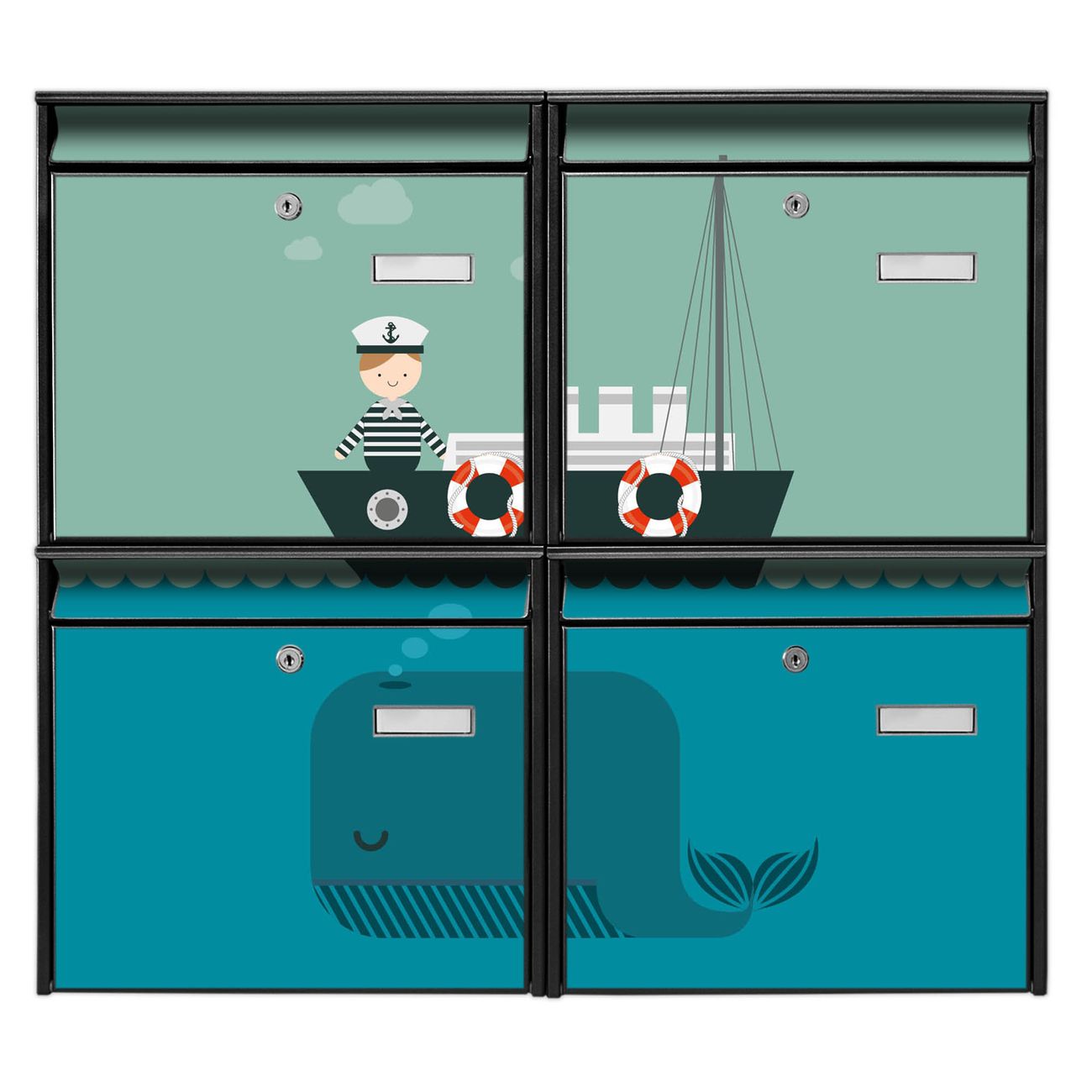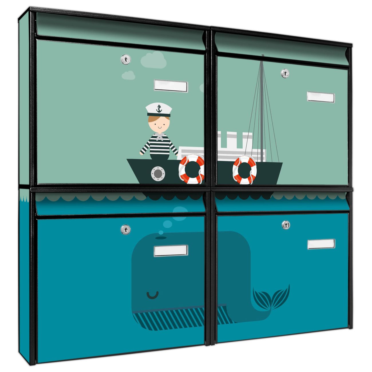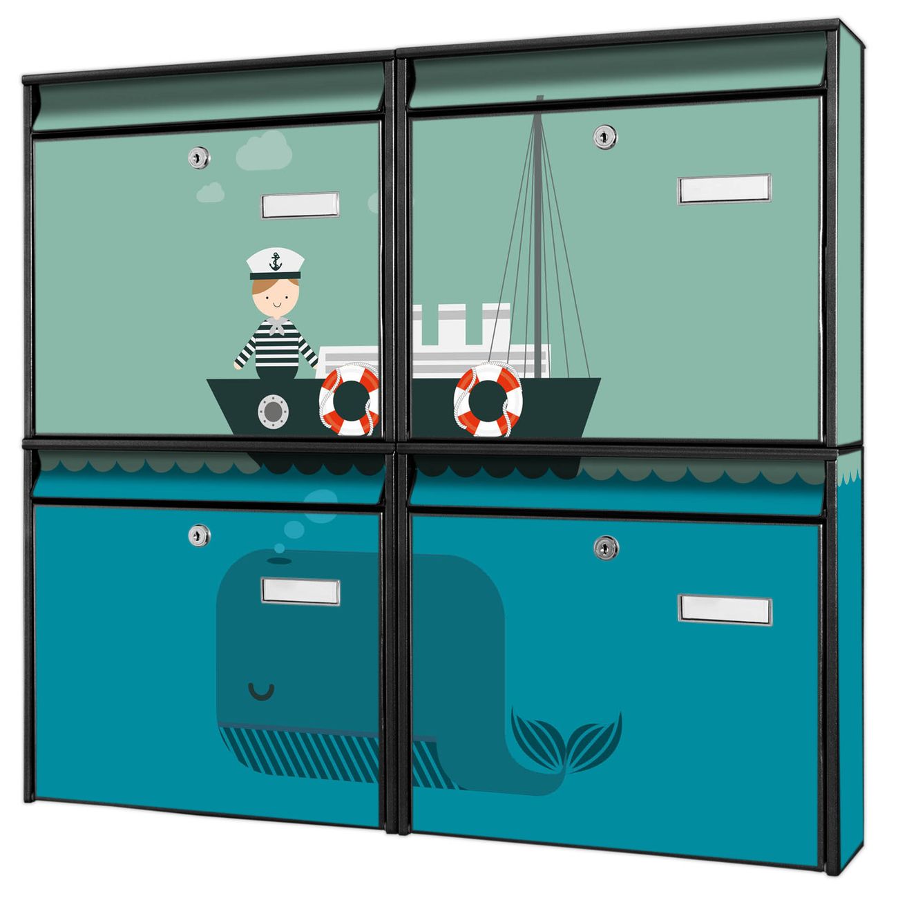 FUNKTION: Die Burg-Wächter Briefkastenanlage mit Motiv Rettet die Wale bietet Ihnen ausreichend Fassungsvermögen um auch A4 und C4 Sendungen zu empfangen. Das integrierte Namensschild lässt sich individuell beschriften. Wählen Sie aus den Grundfarben weiß, silber und schwarz. DESIGN: Die 4 Briefkästen haben ein ansprechendes und zeitloses Design, ohne dabei auf Funktionalität zu verzichten. Das Material ist sehr stabil, wetterfest und rostfrei. Durch das Motiv Rettet die Wale werden die Postkästen zu einem Blickfang. DETAILS: Die Postkästen bestehen aus verzinktem Stahl der zusätzlich mit Klarlack versiegelt wurde. Die Kästen sind gesamt 64,5cm hoch, 72,5cm breit und 10cm tief. Das Motiv besteht aus einer wetter- und UV-festen Folie, die Ihren Briefkasten zusätzlich vor Kratzern schützt. Die Postkästen werden mit Montagematerial, je einem Namensschild und je zwei Schlüsseln geliefert. NUTZEN: Das Briefkastenset eignet sich für die Wandmontage, die Größe bietet genügend Platz für Sendungen aller Art. Das zeitlose Design sowie die stabile Bauart bieten Ihnen einen treuen Begleiter für Ihre Post. BANJADO: