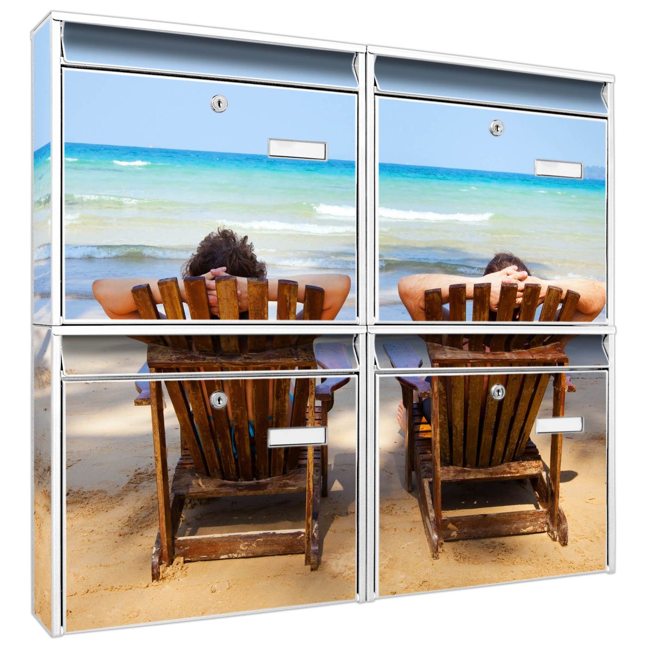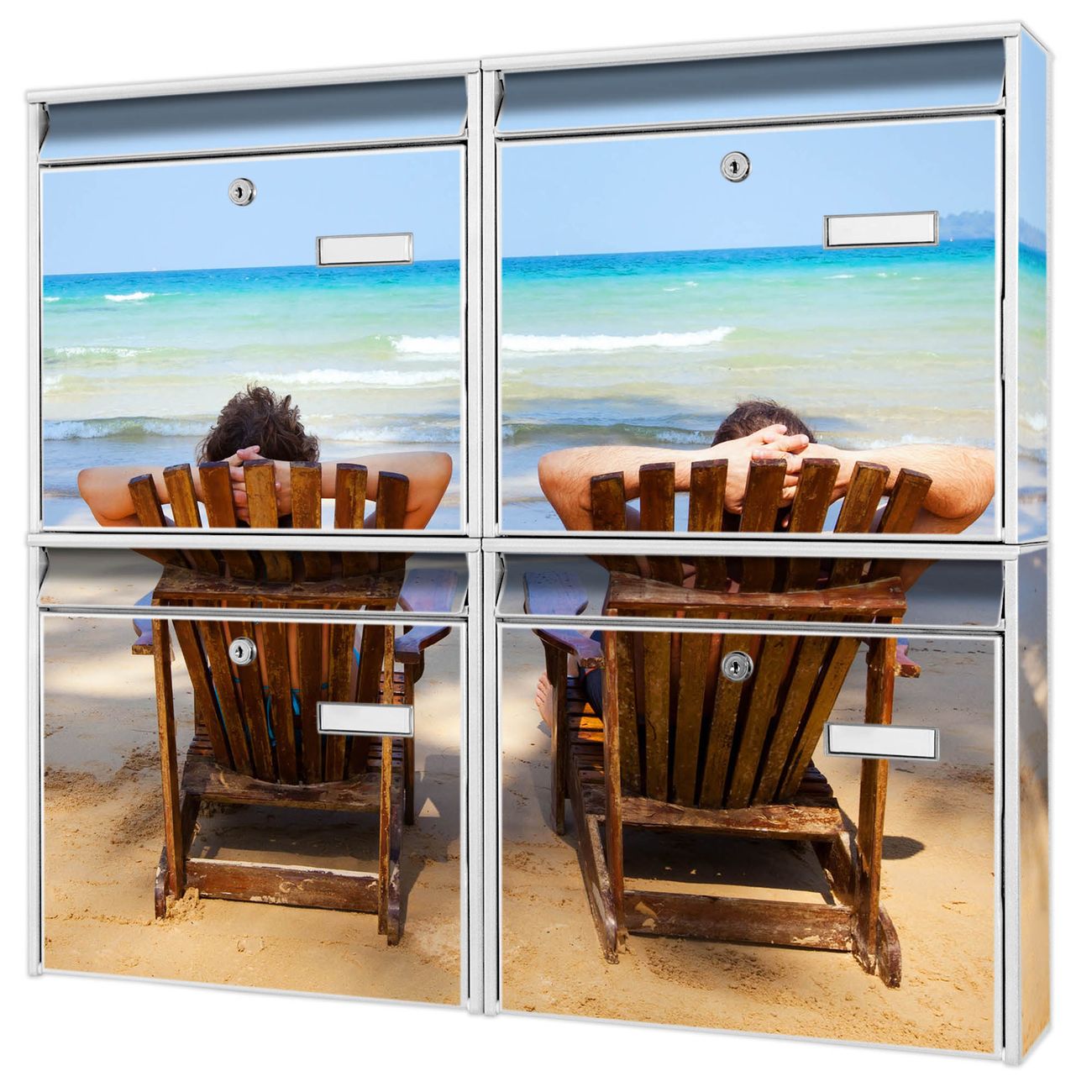 FUNKTION: Die Burg-Wächter Briefkastenanlage mit Motiv Robinson Und Freitag bietet Ihnen ausreichend Fassungsvermögen um auch A4 und C4 Sendungen zu empfangen. Das integrierte Namensschild lässt sich individuell beschriften. Wählen Sie aus den Grundfarben weiß, silber und schwarz. DESIGN: Die 4 Briefkästen haben ein ansprechendes und zeitloses Design, ohne dabei auf Funktionalität zu verzichten. Das Material ist sehr stabil, wetterfest und rostfrei. Durch das Motiv Robinson Und Freitag werden die Postkästen zu einem Blickfang. DETAILS: Die Postkästen bestehen aus verzinktem Stahl der zusätzlich mit Klarlack versiegelt wurde. Die Kästen sind gesamt 64,5cm hoch, 72,5cm breit und 10cm tief. Das Motiv besteht aus einer wetter- und UV-festen Folie, die Ihren Briefkasten zusätzlich vor Kratzern schützt. Die Postkästen werden mit Montagematerial, je einem Namensschild und je zwei Schlüsseln geliefert. NUTZEN: Das Briefkastenset eignet sich für die Wandmontage, die Größe bietet genügend Platz für Sendungen aller Art. Das zeitlose Design sowie die stabile Bauart bieten Ihnen einen treuen Begleiter für Ihre Post. BANJADO:
