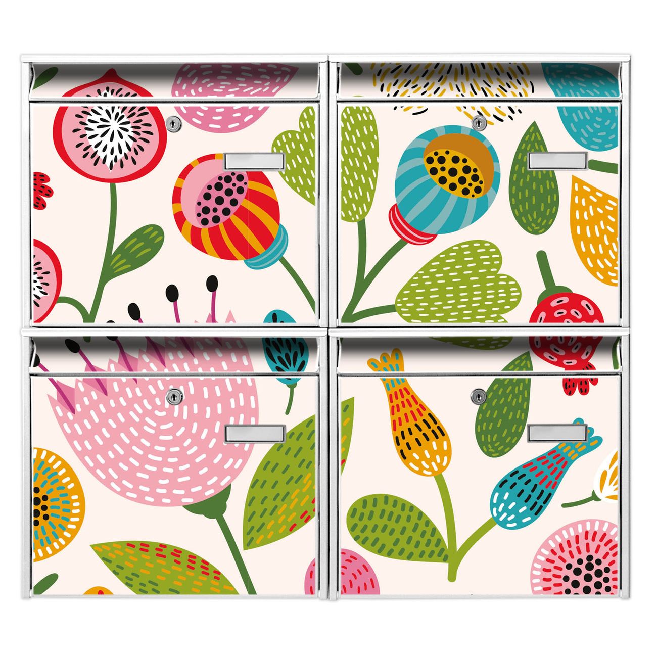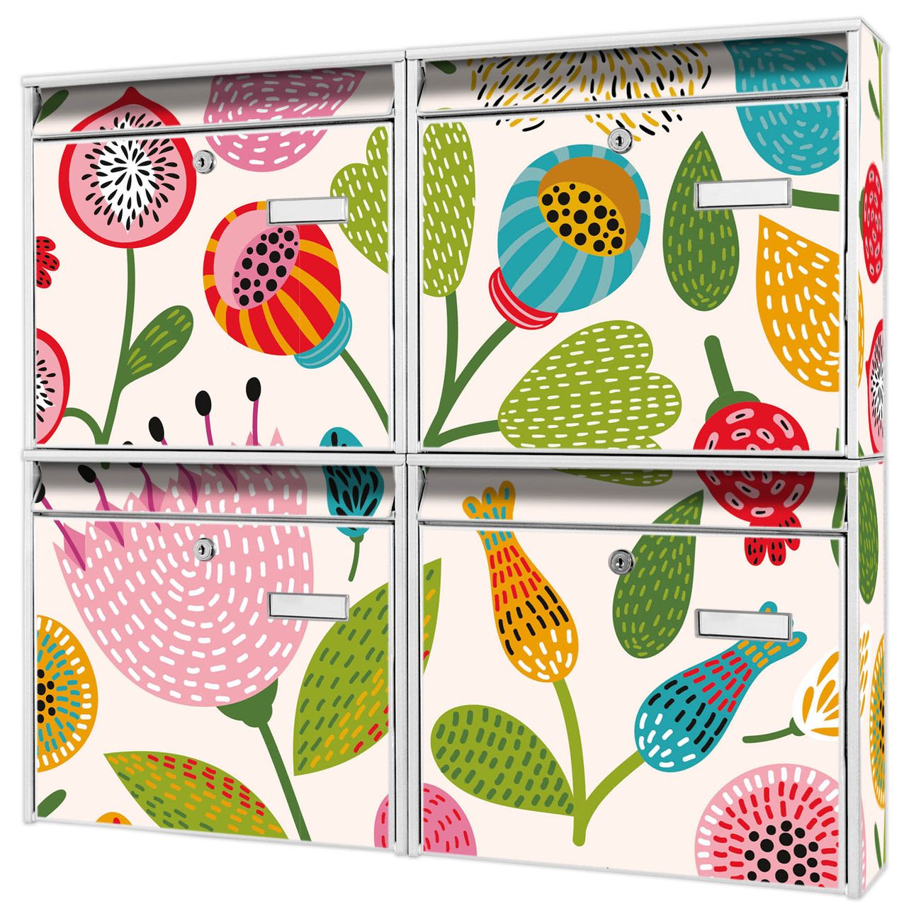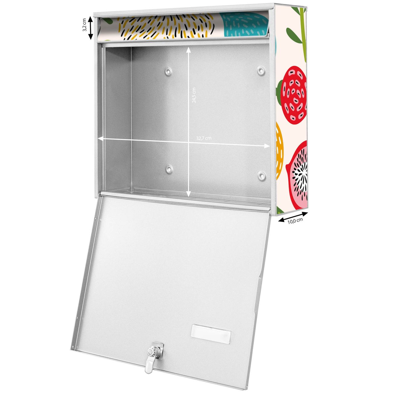 FUNKTION: Die Burg-Wächter Briefkastenanlage mit Motiv Rosa Kelch Hell bietet Ihnen ausreichend Fassungsvermögen um auch A4 und C4 Sendungen zu empfangen. Das integrierte Namensschild lässt sich individuell beschriften. Wählen Sie aus den Grundfarben weiß, silber und schwarz. DESIGN: Die 4 Briefkästen haben ein ansprechendes und zeitloses Design, ohne dabei auf Funktionalität zu verzichten. Das Material ist sehr stabil, wetterfest und rostfrei. Durch das Motiv Rosa Kelch Hell werden die Postkästen zu einem Blickfang. DETAILS: Die Postkästen bestehen aus verzinktem Stahl der zusätzlich mit Klarlack versiegelt wurde. Die Kästen sind gesamt 64,5cm hoch, 72,5cm breit und 10cm tief. Das Motiv besteht aus einer wetter- und UV-festen Folie, die Ihren Briefkasten zusätzlich vor Kratzern schützt. Die Postkästen werden mit Montagematerial, je einem Namensschild und je zwei Schlüsseln geliefert. NUTZEN: Das Briefkastenset eignet sich für die Wandmontage, die Größe bietet genügend Platz für Sendungen aller Art. Das zeitlose Design sowie die stabile Bauart bieten Ihnen einen treuen Begleiter für Ihre Post. BANJADO: