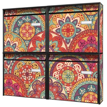 <p><strong>FUNKTION</strong>: Die Burg-Wächter Briefkastenanlage mit Motiv Rosetten bietet Ihnen ausreichend Fassungsvermögen um auch A4 und C4 Sendungen zu empfangen. Das integrierte Namensschild lässt sich individuell beschriften. Wählen Sie aus den Grundfarben weiß, silber und schwarz.</p><p><strong>DESIGN</strong>: Die 4 Briefkästen haben ein ansprechendes und zeitloses Design, ohne dabei auf Funktionalität zu verzichten. Das Material ist sehr stabil, wetterfest und rostfrei. Durch das Motiv Rosetten werden die Postkästen zu einem Blickfang.</p><p><strong>DETAILS</strong>: Die Postkästen bestehen aus verzinktem Stahl der zusätzlich mit Klarlack versiegelt wurde. Die Kästen sind gesamt 64,5cm hoch, 72,5cm breit und 10cm tief. Das Motiv besteht aus einer wetter- und UV-festen Folie, die Ihren Briefkasten zusätzlich vor Kratzern schützt. Die Postkästen werden mit Montagematerial, je einem Namensschild und je zwei Schlüsseln geliefert.</p><p><strong>NUTZEN</strong>: Das Briefkastenset eignet sich für die Wandmontage, die Größe bietet genügend Platz für Sendungen aller Art. Das zeitlose Design sowie die stabile Bauart bieten Ihnen einen treuen Begleiter für Ihre Post.</p><p><b>BANJADO:<br /></b>Ihr BURG-WÄCHTER Briefkasten wird in Sachsen in einer kleinen Manufaktur von Hand veredelt. Die Motivfolie ist lösungsmittelfrei und schutzlaminiert für einen langen Halt ausgelegt. Wir legen großen Wert auf die Verbindung von Funktionalität und Design. Sie erhalten Handarbeit aus Sachsen.</p>