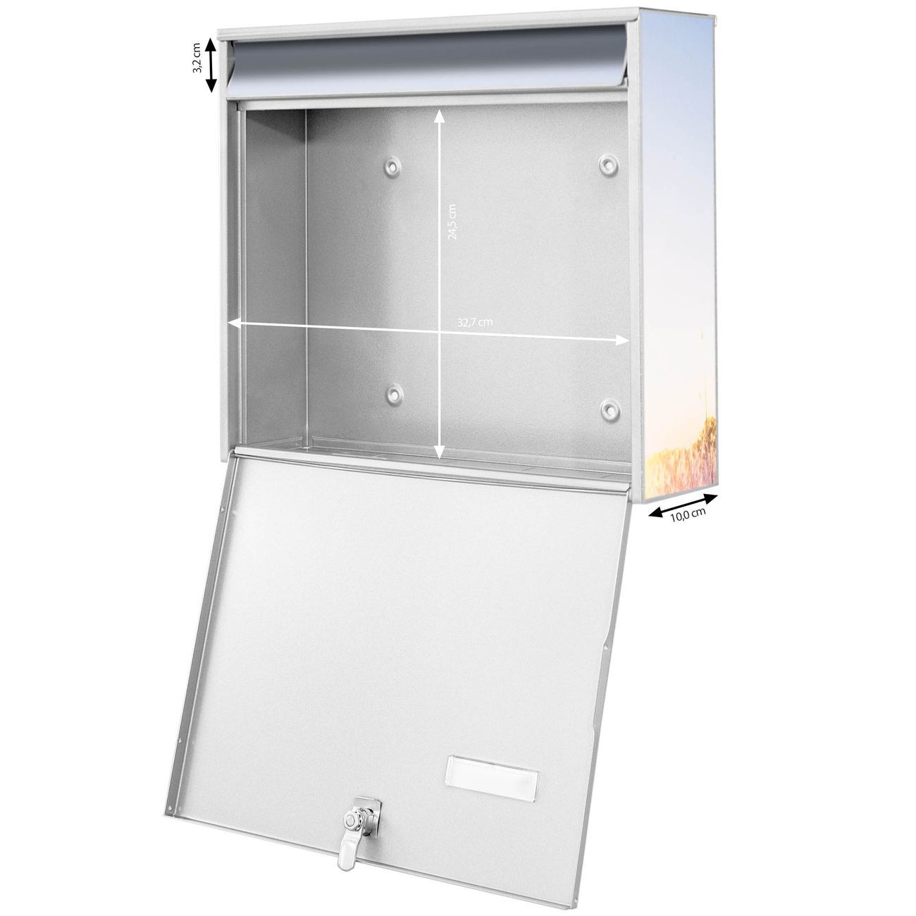 - je Briefschlitz: 34,5 x 3,8cm (B x H)