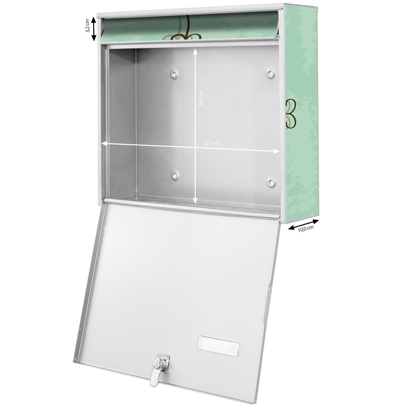 - je Briefschlitz: 34,5 x 3,8cm (B x H)