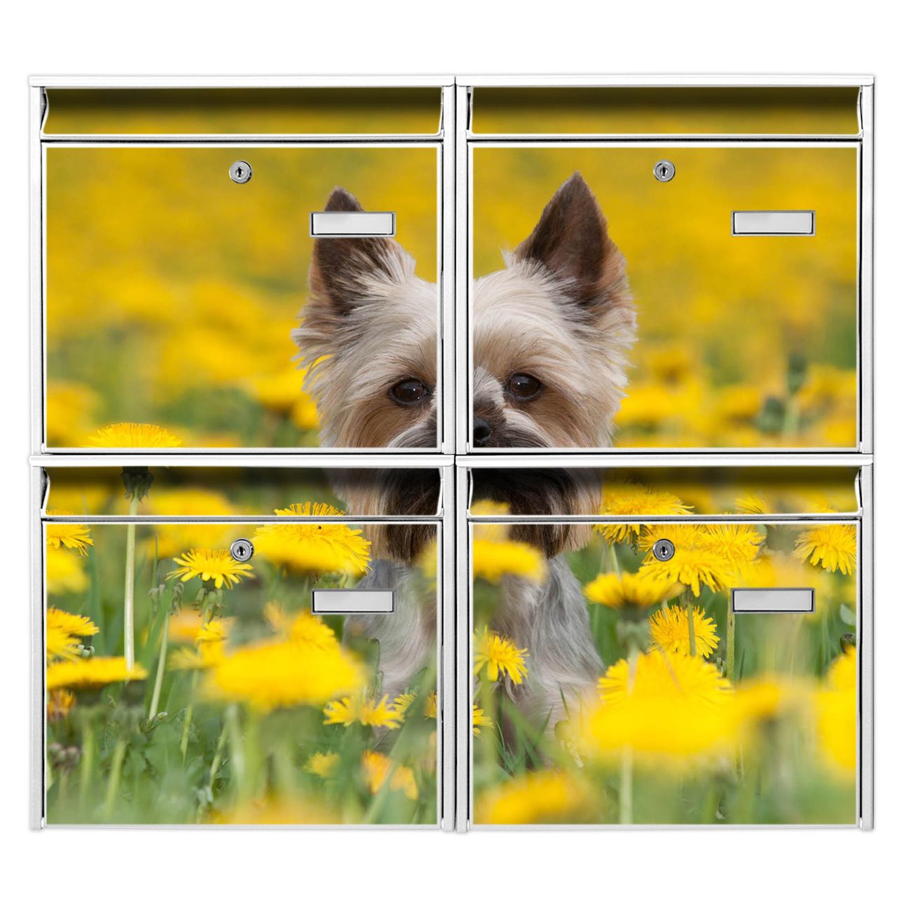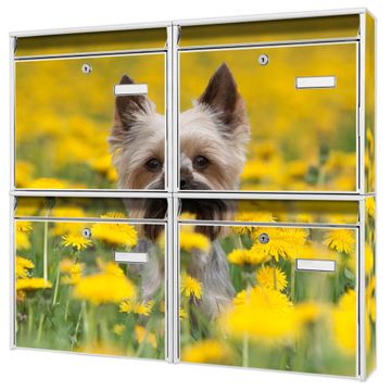 FUNKTION: Die Burg-Wächter Briefkastenanlage mit Motiv Tiffy bietet Ihnen ausreichend Fassungsvermögen um auch A4 und C4 Sendungen zu empfangen. Das integrierte Namensschild lässt sich individuell beschriften. Wählen Sie aus den Grundfarben weiß, silber und schwarz. DESIGN: Die 4 Briefkästen haben ein ansprechendes und zeitloses Design, ohne dabei auf Funktionalität zu verzichten. Das Material ist sehr stabil, wetterfest und rostfrei. Durch das Motiv Tiffy werden die Postkästen zu einem Blickfang. DETAILS: Die Postkästen bestehen aus verzinktem Stahl der zusätzlich mit Klarlack versiegelt wurde. Die Kästen sind gesamt 64,5cm hoch, 72,5cm breit und 10cm tief. Das Motiv besteht aus einer wetter- und UV-festen Folie, die Ihren Briefkasten zusätzlich vor Kratzern schützt. Die Postkästen werden mit Montagematerial, je einem Namensschild und je zwei Schlüsseln geliefert. NUTZEN: Das Briefkastenset eignet sich für die Wandmontage, die Größe bietet genügend Platz für Sendungen aller Art. Das zeitlose Design sowie die stabile Bauart bieten Ihnen einen treuen Begleiter für Ihre Post. BANJADO: