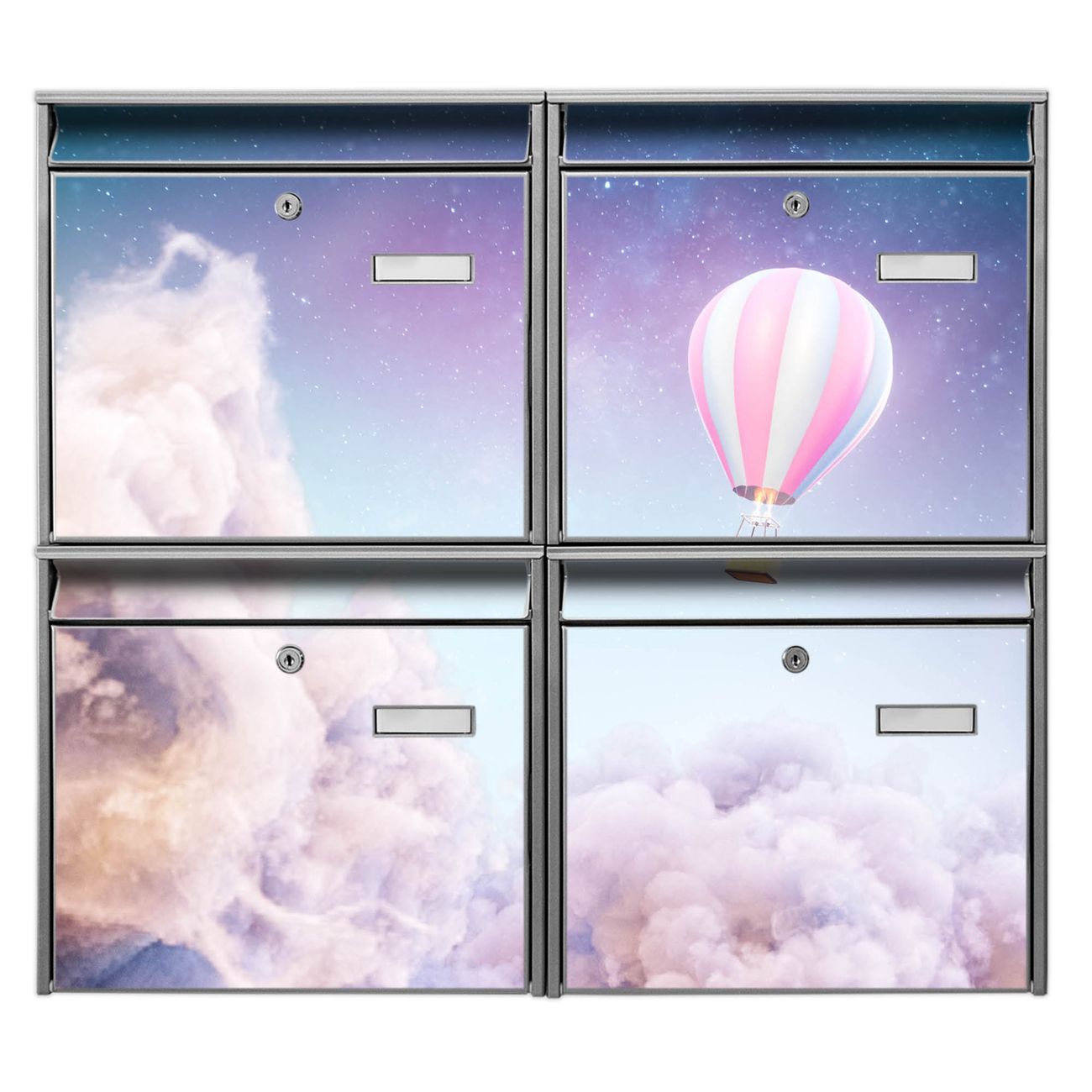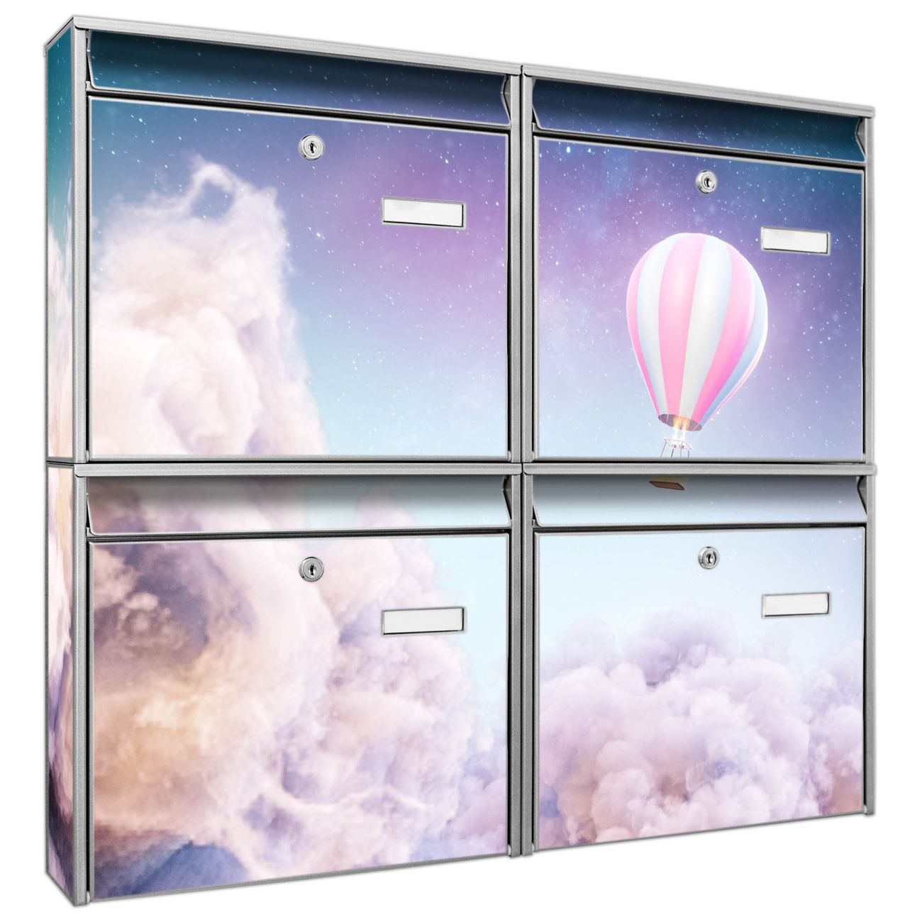 FUNKTION: Die Burg-Wächter Briefkastenanlage mit Motiv Über den Wolken bietet Ihnen ausreichend Fassungsvermögen um auch A4 und C4 Sendungen zu empfangen. Das integrierte Namensschild lässt sich individuell beschriften. Wählen Sie aus den Grundfarben weiß, silber und schwarz. DESIGN: Die 4 Briefkästen haben ein ansprechendes und zeitloses Design, ohne dabei auf Funktionalität zu verzichten. Das Material ist sehr stabil, wetterfest und rostfrei. Durch das Motiv Über den Wolken werden die Postkästen zu einem Blickfang. DETAILS: Die Postkästen bestehen aus verzinktem Stahl der zusätzlich mit Klarlack versiegelt wurde. Die Kästen sind gesamt 64,5cm hoch, 72,5cm breit und 10cm tief. Das Motiv besteht aus einer wetter- und UV-festen Folie, die Ihren Briefkasten zusätzlich vor Kratzern schützt. Die Postkästen werden mit Montagematerial, je einem Namensschild und je zwei Schlüsseln geliefert. NUTZEN: Das Briefkastenset eignet sich für die Wandmontage, die Größe bietet genügend Platz für Sendungen aller Art. Das zeitlose Design sowie die stabile Bauart bieten Ihnen einen treuen Begleiter für Ihre Post. BANJADO: