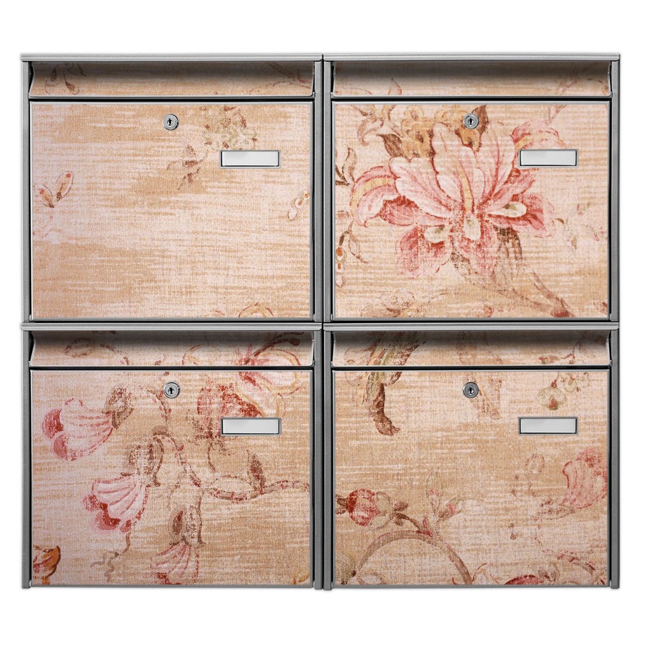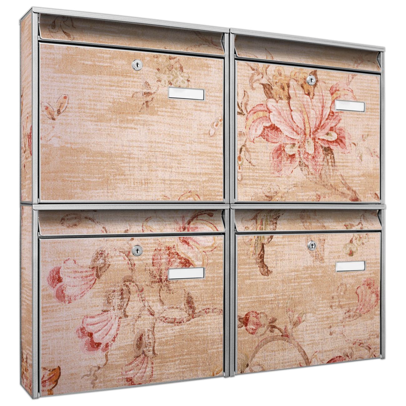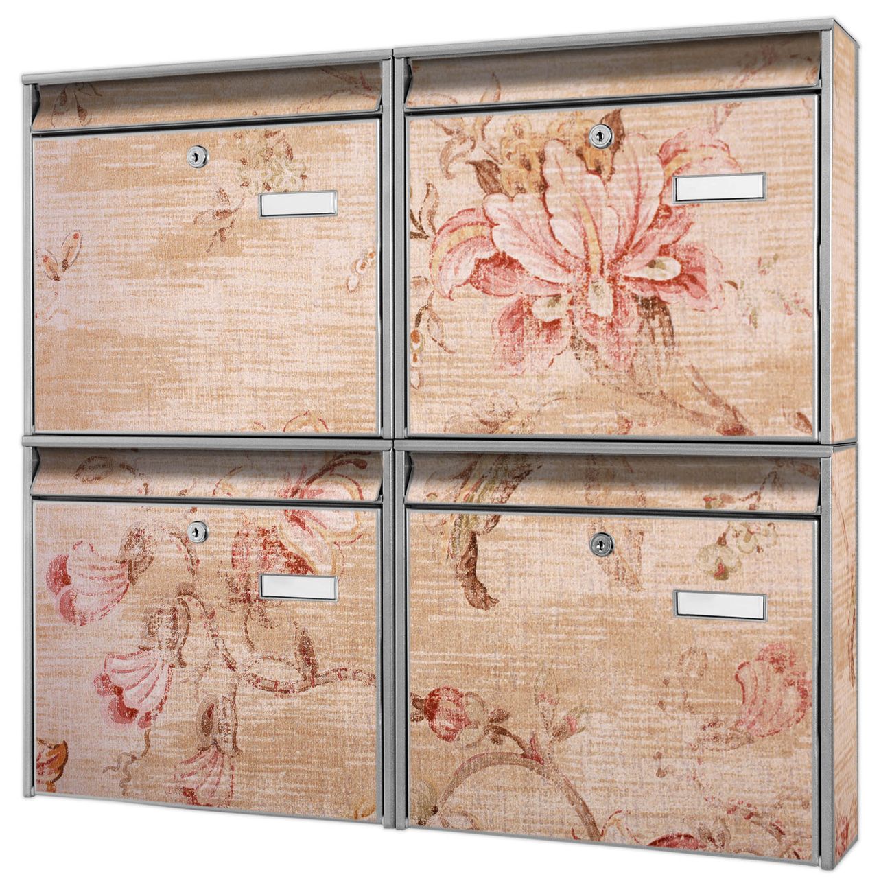 FUNKTION: Die Burg-Wächter Briefkastenanlage mit Motiv Verschwindend bietet Ihnen ausreichend Fassungsvermögen um auch A4 und C4 Sendungen zu empfangen. Das integrierte Namensschild lässt sich individuell beschriften. Wählen Sie aus den Grundfarben weiß, silber und schwarz. DESIGN: Die 4 Briefkästen haben ein ansprechendes und zeitloses Design, ohne dabei auf Funktionalität zu verzichten. Das Material ist sehr stabil, wetterfest und rostfrei. Durch das Motiv Verschwindend werden die Postkästen zu einem Blickfang. DETAILS: Die Postkästen bestehen aus verzinktem Stahl der zusätzlich mit Klarlack versiegelt wurde. Die Kästen sind gesamt 64,5cm hoch, 72,5cm breit und 10cm tief. Das Motiv besteht aus einer wetter- und UV-festen Folie, die Ihren Briefkasten zusätzlich vor Kratzern schützt. Die Postkästen werden mit Montagematerial, je einem Namensschild und je zwei Schlüsseln geliefert. NUTZEN: Das Briefkastenset eignet sich für die Wandmontage, die Größe bietet genügend Platz für Sendungen aller Art. Das zeitlose Design sowie die stabile Bauart bieten Ihnen einen treuen Begleiter für Ihre Post. BANJADO: