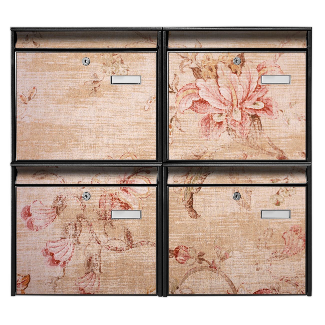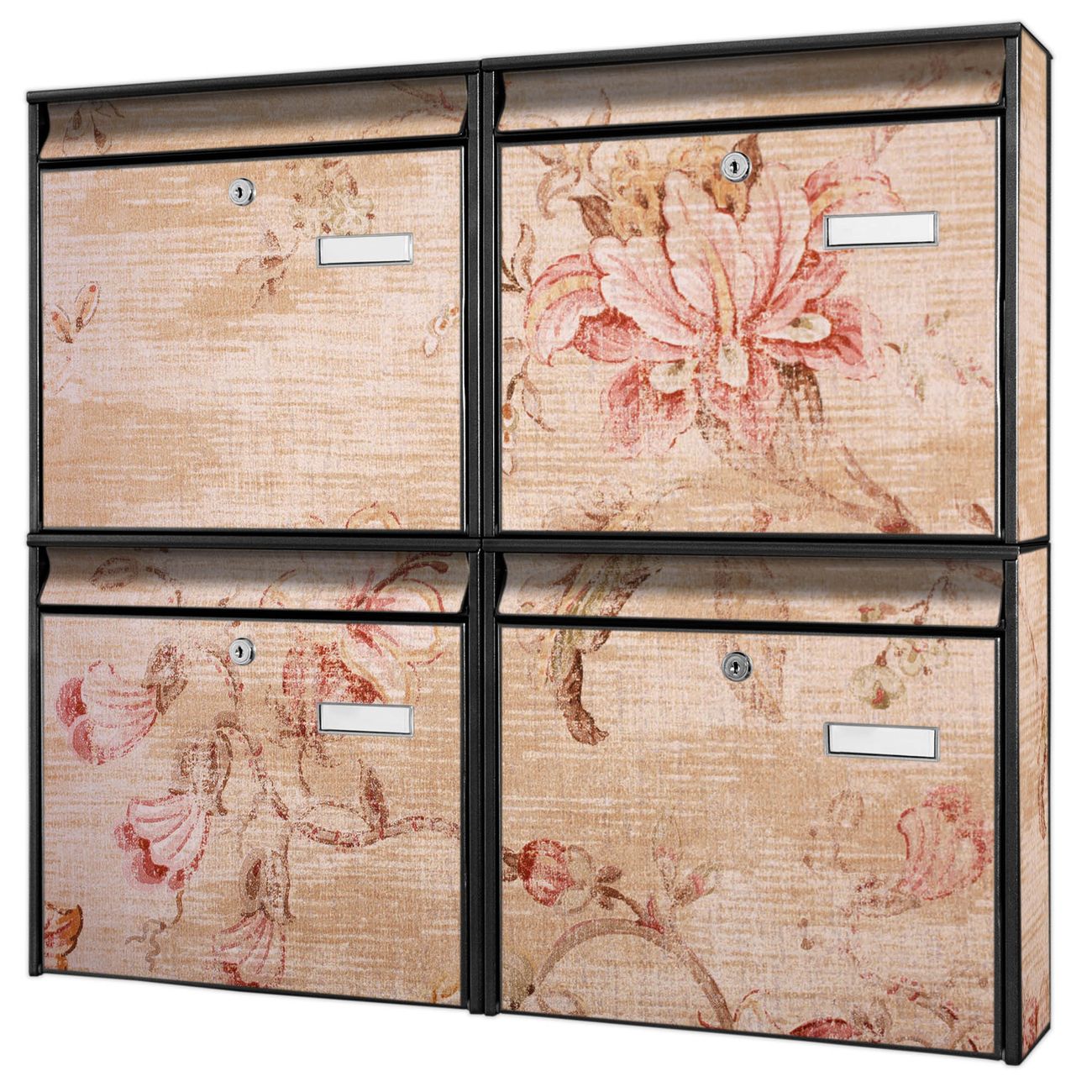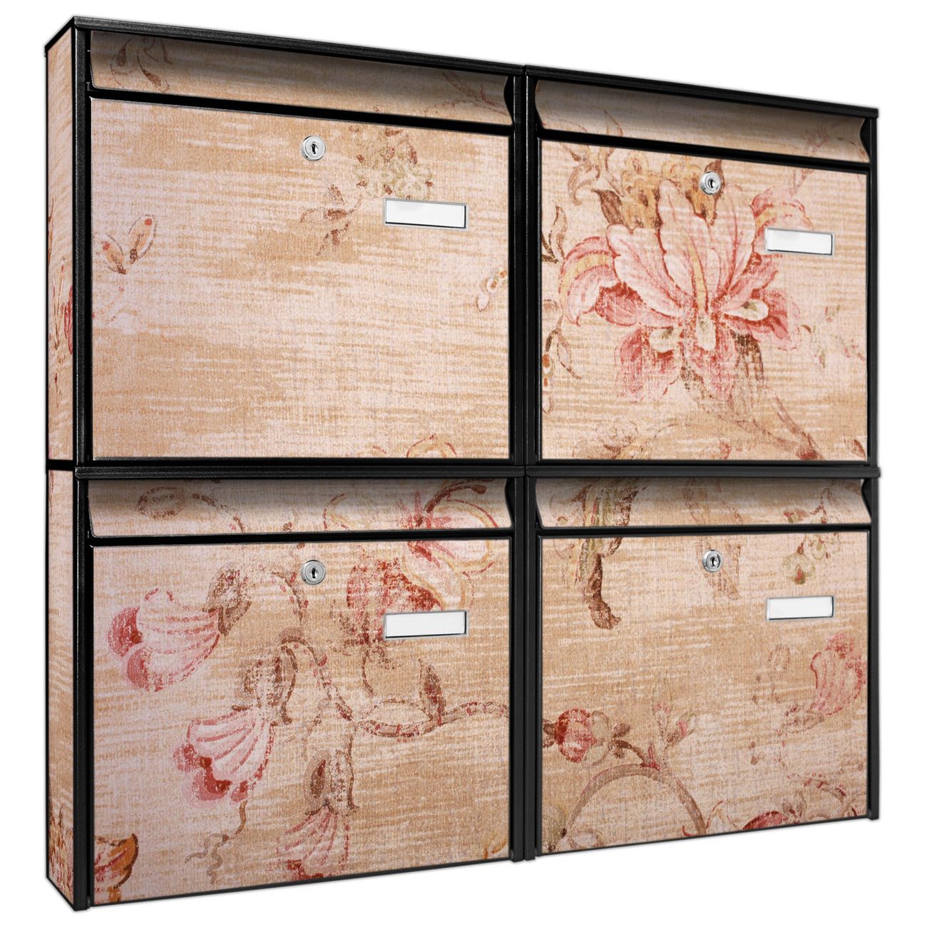 FUNKTION: Die Burg-Wächter Briefkastenanlage mit Motiv Verschwindend bietet Ihnen ausreichend Fassungsvermögen um auch A4 und C4 Sendungen zu empfangen. Das integrierte Namensschild lässt sich individuell beschriften. Wählen Sie aus den Grundfarben weiß, silber und schwarz. DESIGN: Die 4 Briefkästen haben ein ansprechendes und zeitloses Design, ohne dabei auf Funktionalität zu verzichten. Das Material ist sehr stabil, wetterfest und rostfrei. Durch das Motiv Verschwindend werden die Postkästen zu einem Blickfang. DETAILS: Die Postkästen bestehen aus verzinktem Stahl der zusätzlich mit Klarlack versiegelt wurde. Die Kästen sind gesamt 64,5cm hoch, 72,5cm breit und 10cm tief. Das Motiv besteht aus einer wetter- und UV-festen Folie, die Ihren Briefkasten zusätzlich vor Kratzern schützt. Die Postkästen werden mit Montagematerial, je einem Namensschild und je zwei Schlüsseln geliefert. NUTZEN: Das Briefkastenset eignet sich für die Wandmontage, die Größe bietet genügend Platz für Sendungen aller Art. Das zeitlose Design sowie die stabile Bauart bieten Ihnen einen treuen Begleiter für Ihre Post. BANJADO: