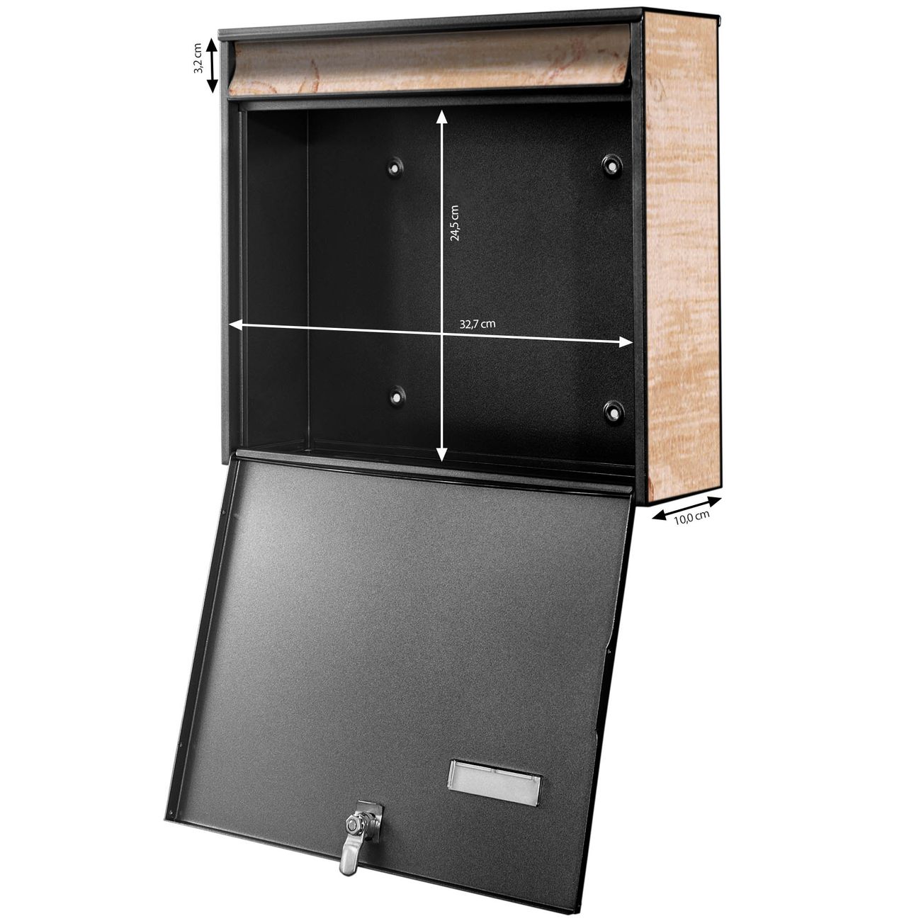 - je Briefschlitz: 34,5 x 3,8cm (B x H)