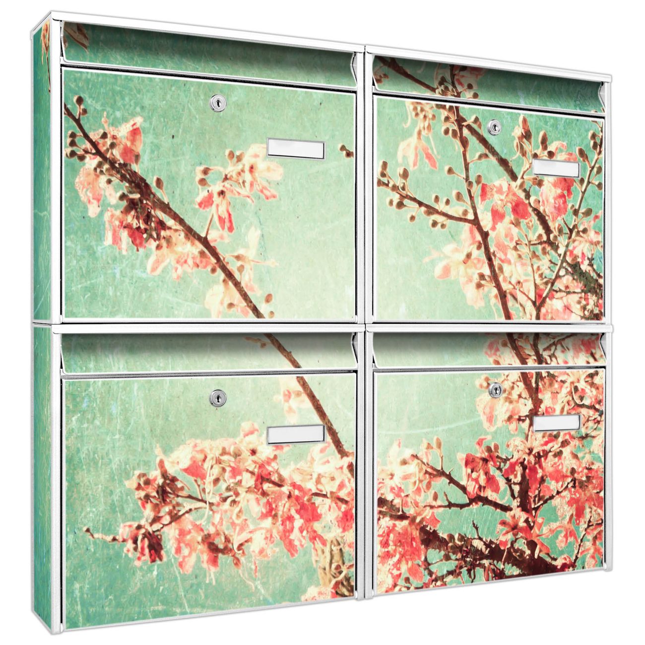 FUNKTION: Die Burg-Wächter Briefkastenanlage mit Motiv Vintage Herbst bietet Ihnen ausreichend Fassungsvermögen um auch A4 und C4 Sendungen zu empfangen. Das integrierte Namensschild lässt sich individuell beschriften. Wählen Sie aus den Grundfarben weiß, silber und schwarz. DESIGN: Die 4 Briefkästen haben ein ansprechendes und zeitloses Design, ohne dabei auf Funktionalität zu verzichten. Das Material ist sehr stabil, wetterfest und rostfrei. Durch das Motiv Vintage Herbst werden die Postkästen zu einem Blickfang. DETAILS: Die Postkästen bestehen aus verzinktem Stahl der zusätzlich mit Klarlack versiegelt wurde. Die Kästen sind gesamt 64,5cm hoch, 72,5cm breit und 10cm tief. Das Motiv besteht aus einer wetter- und UV-festen Folie, die Ihren Briefkasten zusätzlich vor Kratzern schützt. Die Postkästen werden mit Montagematerial, je einem Namensschild und je zwei Schlüsseln geliefert. NUTZEN: Das Briefkastenset eignet sich für die Wandmontage, die Größe bietet genügend Platz für Sendungen aller Art. Das zeitlose Design sowie die stabile Bauart bieten Ihnen einen treuen Begleiter für Ihre Post. BANJADO: