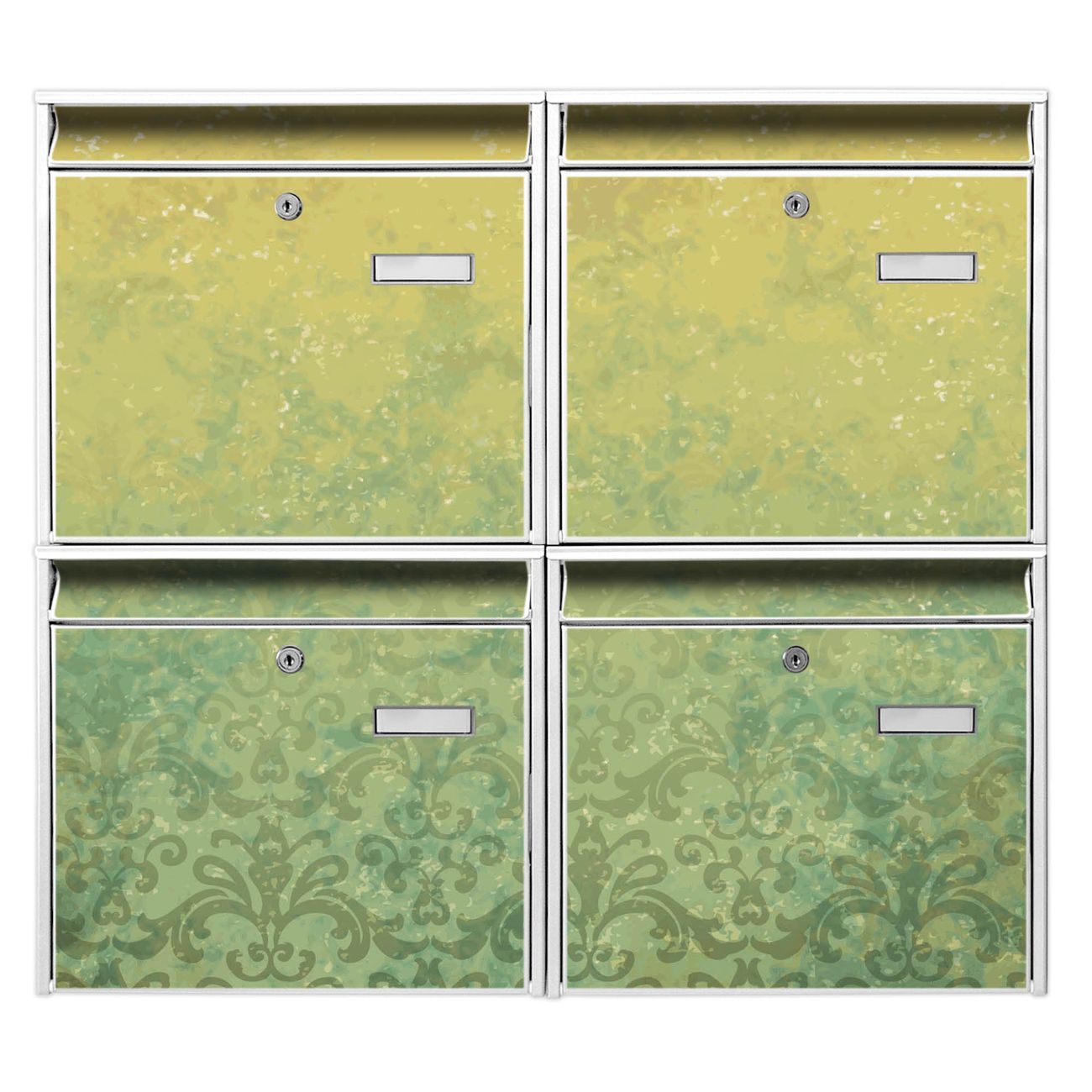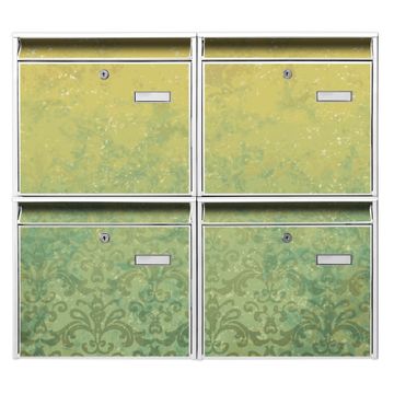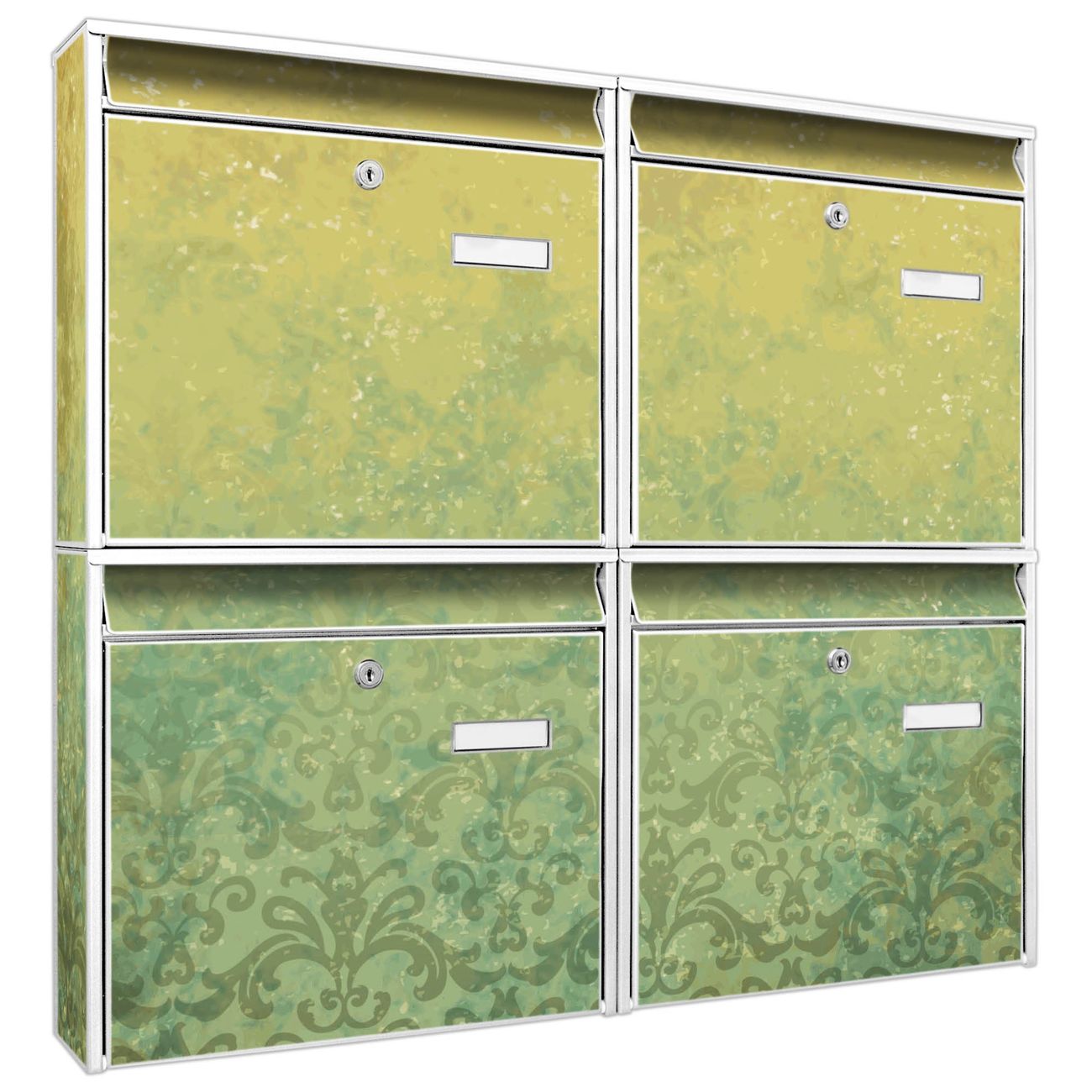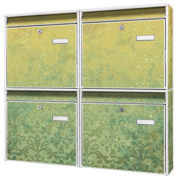 FUNKTION: Die Burg-Wächter Briefkastenanlage mit Motiv Vintage Messing bietet Ihnen ausreichend Fassungsvermögen um auch A4 und C4 Sendungen zu empfangen. Das integrierte Namensschild lässt sich individuell beschriften. Wählen Sie aus den Grundfarben weiß, silber und schwarz. DESIGN: Die 4 Briefkästen haben ein ansprechendes und zeitloses Design, ohne dabei auf Funktionalität zu verzichten. Das Material ist sehr stabil, wetterfest und rostfrei. Durch das Motiv Vintage Messing werden die Postkästen zu einem Blickfang. DETAILS: Die Postkästen bestehen aus verzinktem Stahl der zusätzlich mit Klarlack versiegelt wurde. Die Kästen sind gesamt 64,5cm hoch, 72,5cm breit und 10cm tief. Das Motiv besteht aus einer wetter- und UV-festen Folie, die Ihren Briefkasten zusätzlich vor Kratzern schützt. Die Postkästen werden mit Montagematerial, je einem Namensschild und je zwei Schlüsseln geliefert. NUTZEN: Das Briefkastenset eignet sich für die Wandmontage, die Größe bietet genügend Platz für Sendungen aller Art. Das zeitlose Design sowie die stabile Bauart bieten Ihnen einen treuen Begleiter für Ihre Post. BANJADO: