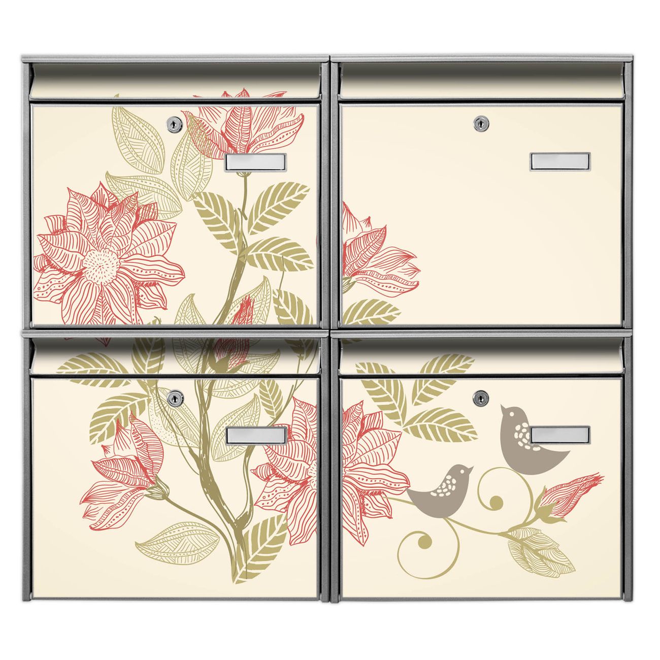 FUNKTION: Die Burg-Wächter Briefkastenanlage mit Motiv Vogelpaar bietet Ihnen ausreichend Fassungsvermögen um auch A4 und C4 Sendungen zu empfangen. Das integrierte Namensschild lässt sich individuell beschriften. Wählen Sie aus den Grundfarben weiß, silber und schwarz. DESIGN: Die 4 Briefkästen haben ein ansprechendes und zeitloses Design, ohne dabei auf Funktionalität zu verzichten. Das Material ist sehr stabil, wetterfest und rostfrei. Durch das Motiv Vogelpaar werden die Postkästen zu einem Blickfang. DETAILS: Die Postkästen bestehen aus verzinktem Stahl der zusätzlich mit Klarlack versiegelt wurde. Die Kästen sind gesamt 64,5cm hoch, 72,5cm breit und 10cm tief. Das Motiv besteht aus einer wetter- und UV-festen Folie, die Ihren Briefkasten zusätzlich vor Kratzern schützt. Die Postkästen werden mit Montagematerial, je einem Namensschild und je zwei Schlüsseln geliefert. NUTZEN: Das Briefkastenset eignet sich für die Wandmontage, die Größe bietet genügend Platz für Sendungen aller Art. Das zeitlose Design sowie die stabile Bauart bieten Ihnen einen treuen Begleiter für Ihre Post. BANJADO: