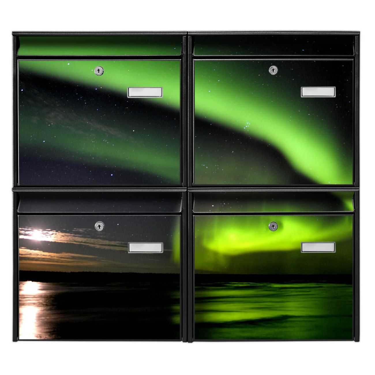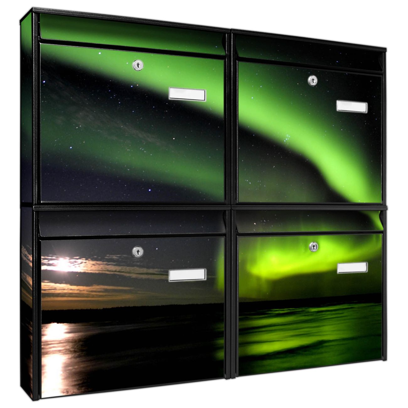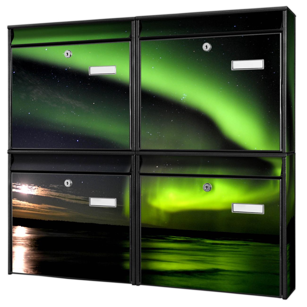 FUNKTION: Die Burg-Wächter Briefkastenanlage mit Motiv Wetterleuchten bietet Ihnen ausreichend Fassungsvermögen um auch A4 und C4 Sendungen zu empfangen. Das integrierte Namensschild lässt sich individuell beschriften. Wählen Sie aus den Grundfarben weiß, silber und schwarz. DESIGN: Die 4 Briefkästen haben ein ansprechendes und zeitloses Design, ohne dabei auf Funktionalität zu verzichten. Das Material ist sehr stabil, wetterfest und rostfrei. Durch das Motiv Wetterleuchten werden die Postkästen zu einem Blickfang. DETAILS: Die Postkästen bestehen aus verzinktem Stahl der zusätzlich mit Klarlack versiegelt wurde. Die Kästen sind gesamt 64,5cm hoch, 72,5cm breit und 10cm tief. Das Motiv besteht aus einer wetter- und UV-festen Folie, die Ihren Briefkasten zusätzlich vor Kratzern schützt. Die Postkästen werden mit Montagematerial, je einem Namensschild und je zwei Schlüsseln geliefert. NUTZEN: Das Briefkastenset eignet sich für die Wandmontage, die Größe bietet genügend Platz für Sendungen aller Art. Das zeitlose Design sowie die stabile Bauart bieten Ihnen einen treuen Begleiter für Ihre Post. BANJADO: