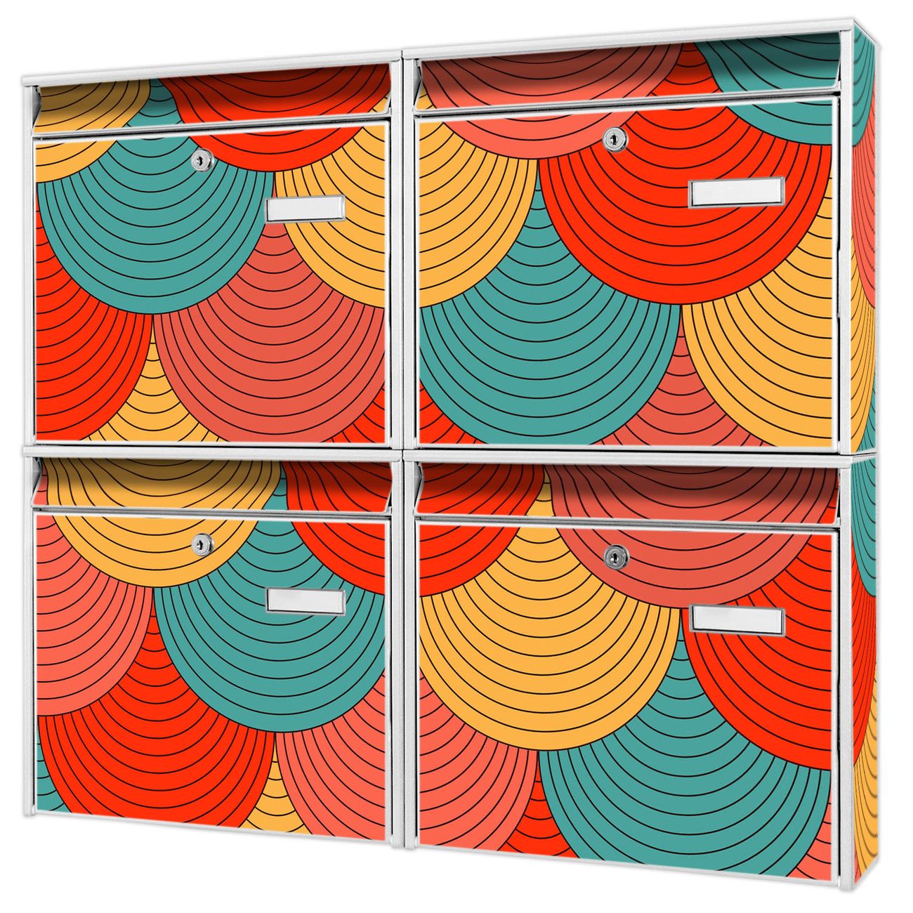 FUNKTION: Die Burg-Wächter Briefkastenanlage mit Motiv Wolkenstore bietet Ihnen ausreichend Fassungsvermögen um auch A4 und C4 Sendungen zu empfangen. Das integrierte Namensschild lässt sich individuell beschriften. Wählen Sie aus den Grundfarben weiß, silber und schwarz. DESIGN: Die 4 Briefkästen haben ein ansprechendes und zeitloses Design, ohne dabei auf Funktionalität zu verzichten. Das Material ist sehr stabil, wetterfest und rostfrei. Durch das Motiv Wolkenstore werden die Postkästen zu einem Blickfang. DETAILS: Die Postkästen bestehen aus verzinktem Stahl der zusätzlich mit Klarlack versiegelt wurde. Die Kästen sind gesamt 64,5cm hoch, 72,5cm breit und 10cm tief. Das Motiv besteht aus einer wetter- und UV-festen Folie, die Ihren Briefkasten zusätzlich vor Kratzern schützt. Die Postkästen werden mit Montagematerial, je einem Namensschild und je zwei Schlüsseln geliefert. NUTZEN: Das Briefkastenset eignet sich für die Wandmontage, die Größe bietet genügend Platz für Sendungen aller Art. Das zeitlose Design sowie die stabile Bauart bieten Ihnen einen treuen Begleiter für Ihre Post. BANJADO: