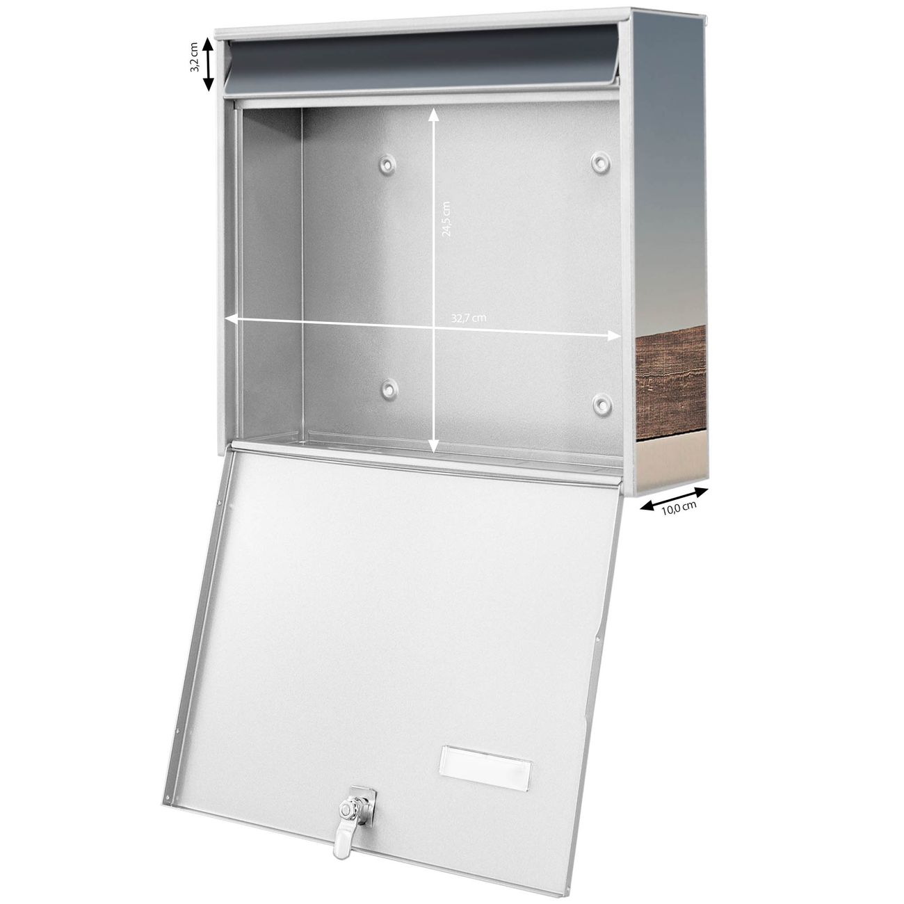 - je Briefschlitz: 34,5 x 3,8cm (B x H)