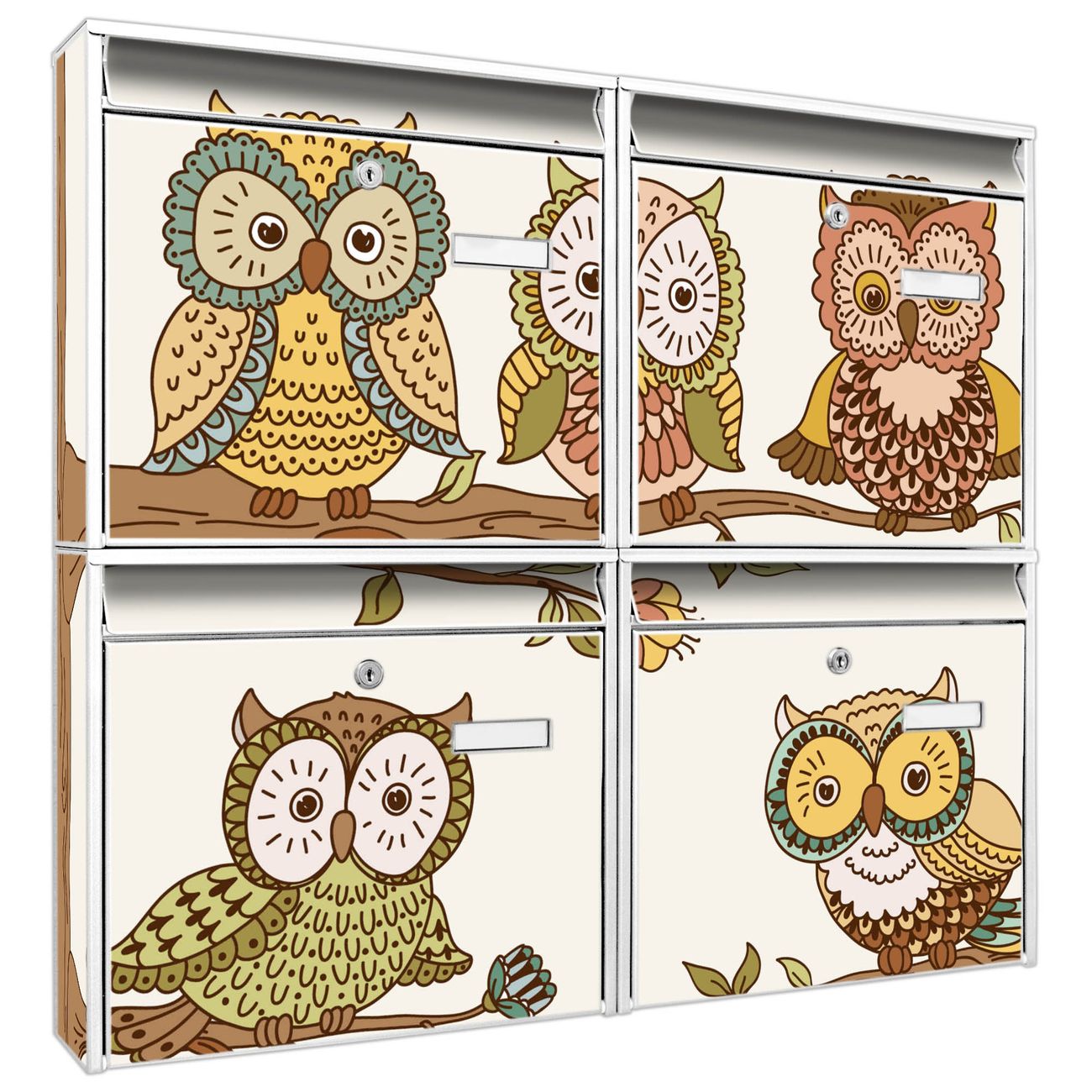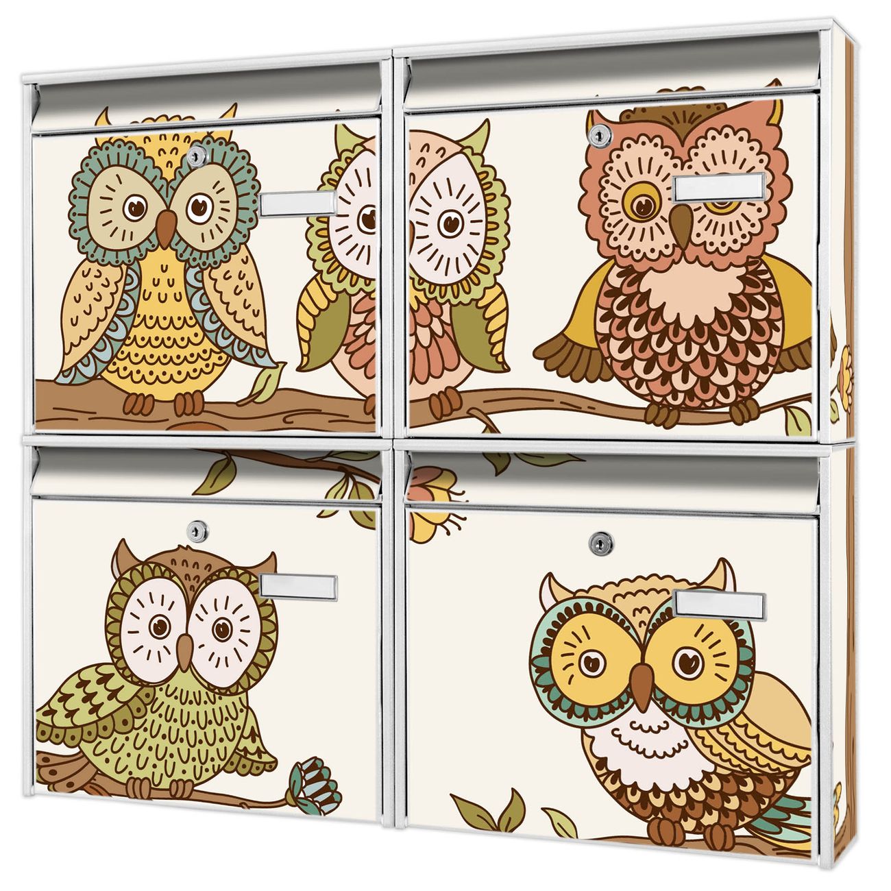 FUNKTION: Die Burg-Wächter Briefkastenanlage mit Motiv Zehn-Augen-Prinzip bietet Ihnen ausreichend Fassungsvermögen um auch A4 und C4 Sendungen zu empfangen. Das integrierte Namensschild lässt sich individuell beschriften. Wählen Sie aus den Grundfarben weiß, silber und schwarz. DESIGN: Die 4 Briefkästen haben ein ansprechendes und zeitloses Design, ohne dabei auf Funktionalität zu verzichten. Das Material ist sehr stabil, wetterfest und rostfrei. Durch das Motiv Zehn-Augen-Prinzip werden die Postkästen zu einem Blickfang. DETAILS: Die Postkästen bestehen aus verzinktem Stahl der zusätzlich mit Klarlack versiegelt wurde. Die Kästen sind gesamt 64,5cm hoch, 72,5cm breit und 10cm tief. Das Motiv besteht aus einer wetter- und UV-festen Folie, die Ihren Briefkasten zusätzlich vor Kratzern schützt. Die Postkästen werden mit Montagematerial, je einem Namensschild und je zwei Schlüsseln geliefert. NUTZEN: Das Briefkastenset eignet sich für die Wandmontage, die Größe bietet genügend Platz für Sendungen aller Art. Das zeitlose Design sowie die stabile Bauart bieten Ihnen einen treuen Begleiter für Ihre Post. BANJADO: