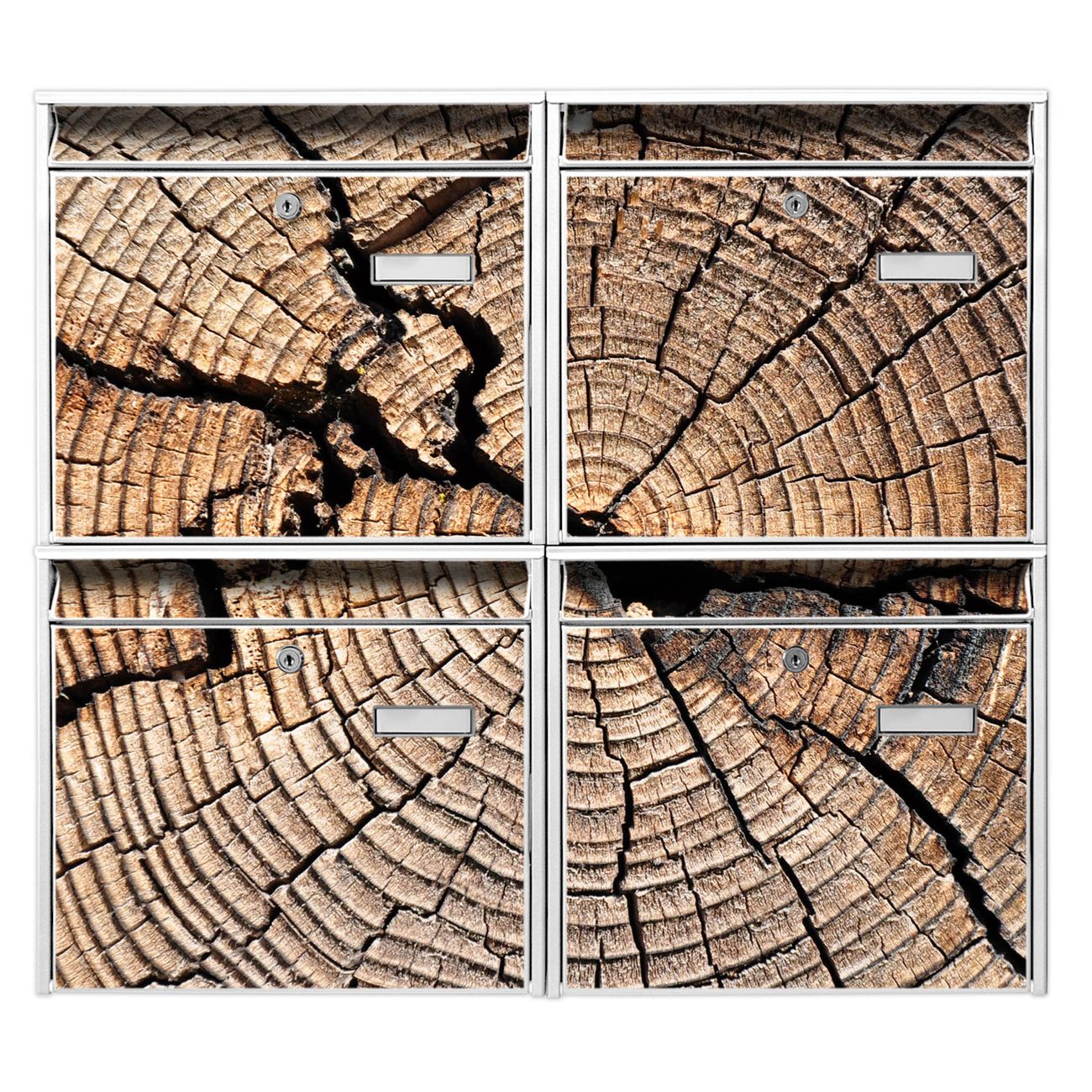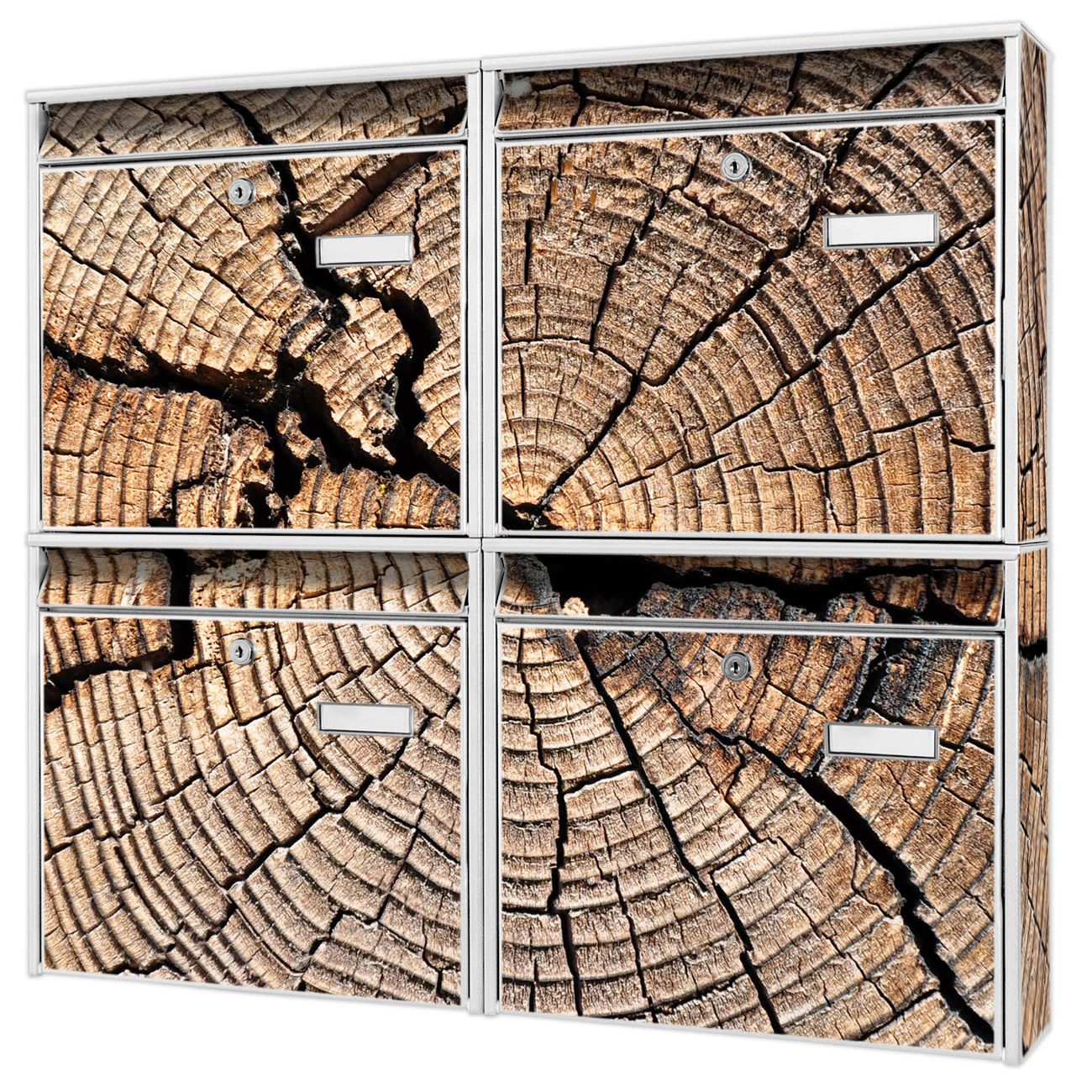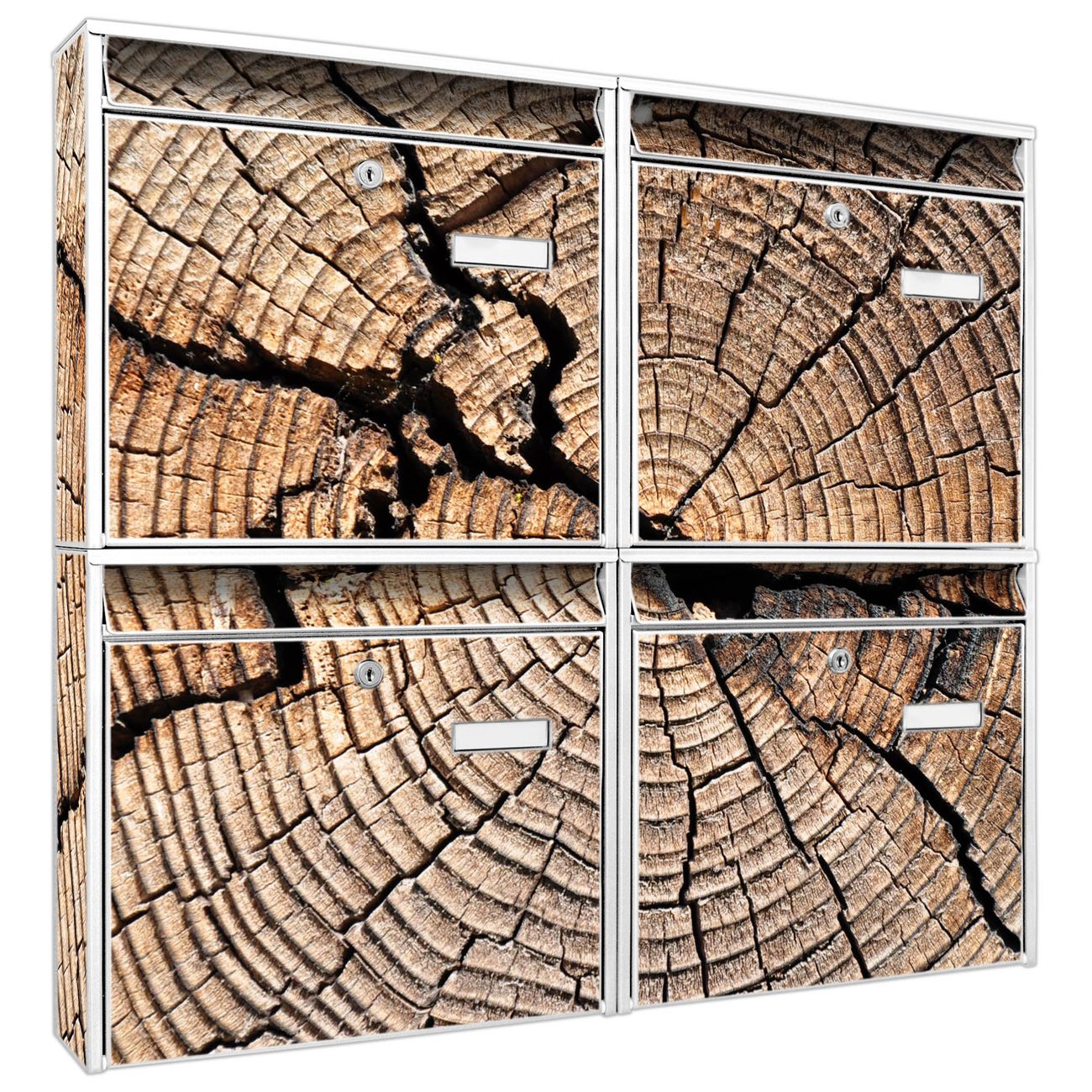 FUNKTION: Die Burg-Wächter Briefkastenanlage mit Motiv Zeichen Der Zeit bietet Ihnen ausreichend Fassungsvermögen um auch A4 und C4 Sendungen zu empfangen. Das integrierte Namensschild lässt sich individuell beschriften. Wählen Sie aus den Grundfarben weiß, silber und schwarz. DESIGN: Die 4 Briefkästen haben ein ansprechendes und zeitloses Design, ohne dabei auf Funktionalität zu verzichten. Das Material ist sehr stabil, wetterfest und rostfrei. Durch das Motiv Zeichen Der Zeit werden die Postkästen zu einem Blickfang. DETAILS: Die Postkästen bestehen aus verzinktem Stahl der zusätzlich mit Klarlack versiegelt wurde. Die Kästen sind gesamt 64,5cm hoch, 72,5cm breit und 10cm tief. Das Motiv besteht aus einer wetter- und UV-festen Folie, die Ihren Briefkasten zusätzlich vor Kratzern schützt. Die Postkästen werden mit Montagematerial, je einem Namensschild und je zwei Schlüsseln geliefert. NUTZEN: Das Briefkastenset eignet sich für die Wandmontage, die Größe bietet genügend Platz für Sendungen aller Art. Das zeitlose Design sowie die stabile Bauart bieten Ihnen einen treuen Begleiter für Ihre Post. BANJADO: