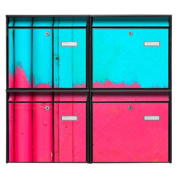FUNKTION: Die Burg-Wächter Briefkastenanlage mit Motiv Zwei Farben bietet Ihnen ausreichend Fassungsvermögen um auch A4 und C4 Sendungen zu empfangen. Das integrierte Namensschild lässt sich individuell beschriften. Wählen Sie aus den Grundfarben weiß, silber und schwarz. DESIGN: Die 4 Briefkästen haben ein ansprechendes und zeitloses Design, ohne dabei auf Funktionalität zu verzichten. Das Material ist sehr stabil, wetterfest und rostfrei. Durch das Motiv Zwei Farben werden die Postkästen zu einem Blickfang. DETAILS: Die Postkästen bestehen aus verzinktem Stahl der zusätzlich mit Klarlack versiegelt wurde. Die Kästen sind gesamt 64,5cm hoch, 72,5cm breit und 10cm tief. Das Motiv besteht aus einer wetter- und UV-festen Folie, die Ihren Briefkasten zusätzlich vor Kratzern schützt. Die Postkästen werden mit Montagematerial, je einem Namensschild und je zwei Schlüsseln geliefert. NUTZEN: Das Briefkastenset eignet sich für die Wandmontage, die Größe bietet genügend Platz für Sendungen aller Art. Das zeitlose Design sowie die stabile Bauart bieten Ihnen einen treuen Begleiter für Ihre Post. BANJADO: