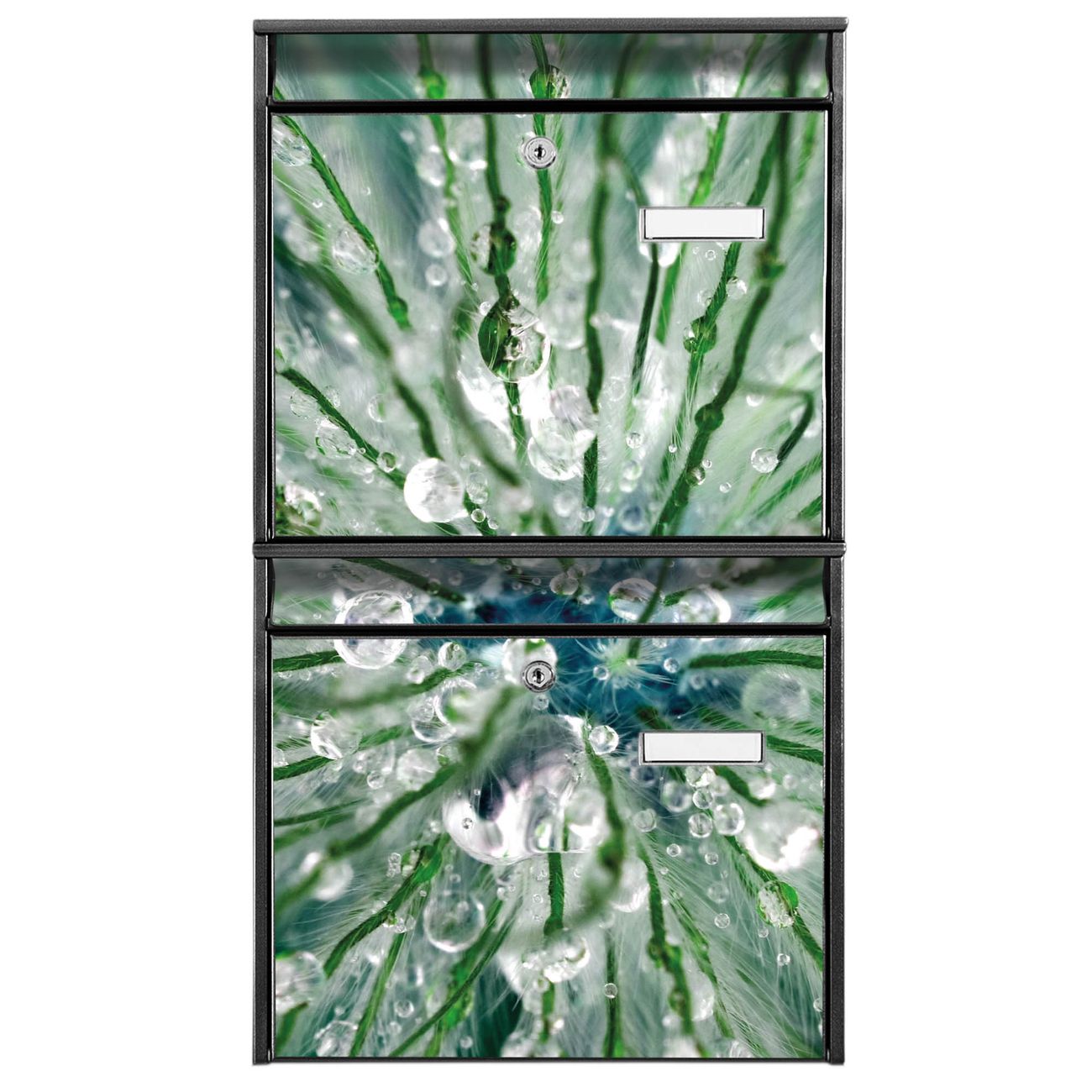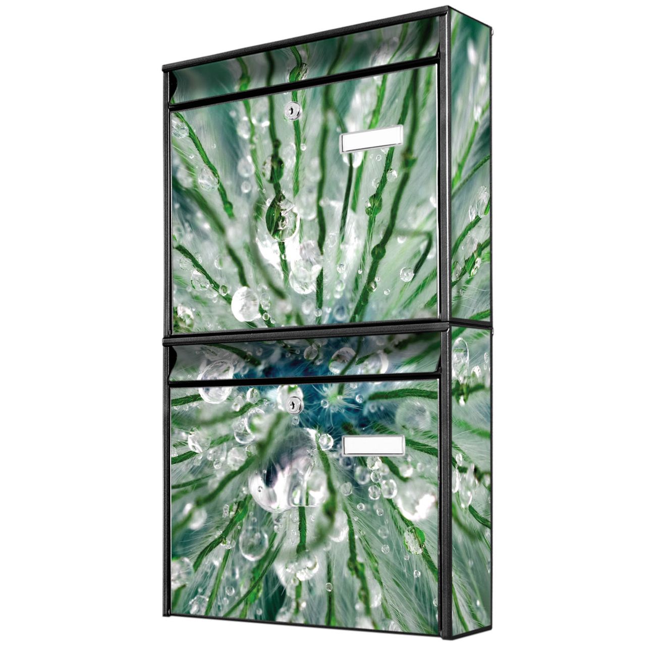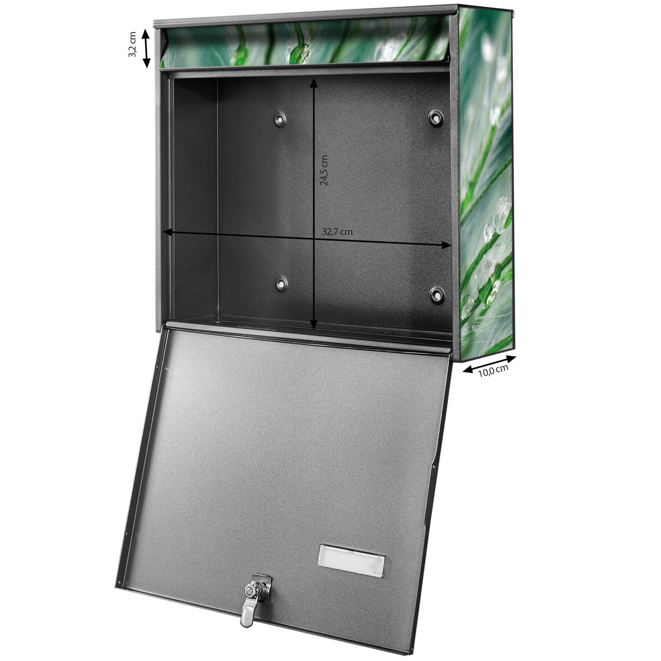 FUNKTION: Die Burg-Wächter Briefkastenanlage mit Motiv Blüte Mit Tautropfen bietet Ihnen ausreichend Fassungsvermögen um auch A4 und C4 Sendungen zu empfangen. Das integrierte Namensschild lässt sich individuell beschriften. Wählen Sie aus den Grundfarben weiß, silber und schwarz. DESIGN: Die 2 Briefkästen haben ein ansprechendes und zeitloses Design, ohne dabei auf Funktionalität zu verzichten. Das Material ist sehr stabil, wetterfest und rostfrei. Durch das Motiv Blüte Mit Tautropfen werden die Postkästen zu einem Blickfang. DETAILS: Die Postkästen bestehen aus verzinktem Stahl der zusätzlich mit Klarlack versiegelt wurde. Die Kästen sind gesamt 64,5cm hoch, 36,2cm breit und 10cm tief. Das Motiv besteht aus einer wetter- und UV-festen Folie, die Ihren Briefkasten zusätzlich vor Kratzern schützt. Die Postkästen werden mit Montagematerial, je einem Namensschild und je zwei Schlüsseln geliefert. NUTZEN: Das Briefkastenset eignet sich für die Wandmontage, die Größe bietet genügend Platz für Sendungen aller Art. Das zeitlose Design sowie die stabile Bauart bieten Ihnen einen treuen Begleiter für Ihre Post. BANJADO: