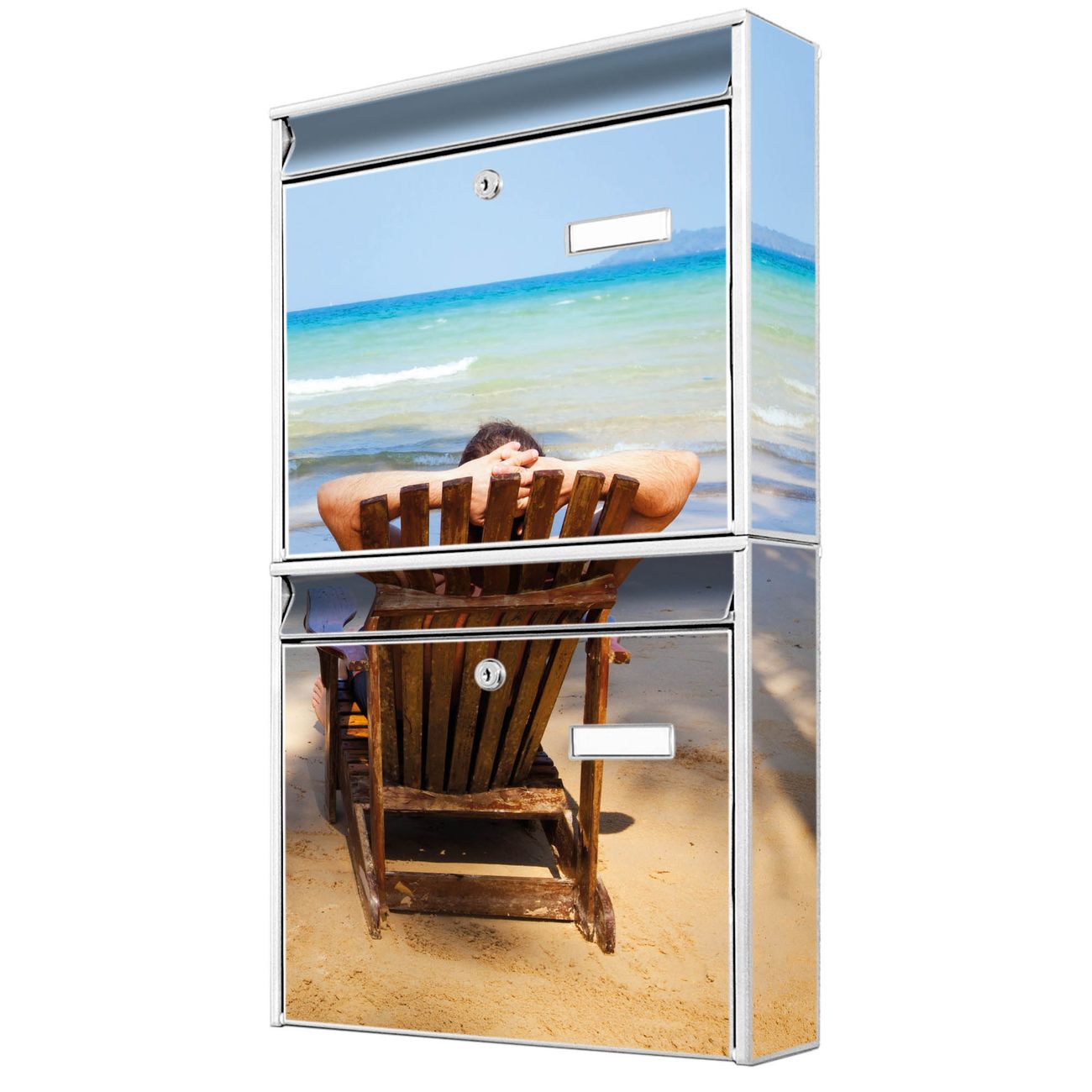 FUNKTION: Die Burg-Wächter Briefkastenanlage mit Motiv Robinson Und Freitag bietet Ihnen ausreichend Fassungsvermögen um auch A4 und C4 Sendungen zu empfangen. Das integrierte Namensschild lässt sich individuell beschriften. Wählen Sie aus den Grundfarben weiß, silber und schwarz. DESIGN: Die 2 Briefkästen haben ein ansprechendes und zeitloses Design, ohne dabei auf Funktionalität zu verzichten. Das Material ist sehr stabil, wetterfest und rostfrei. Durch das Motiv Robinson Und Freitag werden die Postkästen zu einem Blickfang. DETAILS: Die Postkästen bestehen aus verzinktem Stahl der zusätzlich mit Klarlack versiegelt wurde. Die Kästen sind gesamt 64,5cm hoch, 36,2cm breit und 10cm tief. Das Motiv besteht aus einer wetter- und UV-festen Folie, die Ihren Briefkasten zusätzlich vor Kratzern schützt. Die Postkästen werden mit Montagematerial, je einem Namensschild und je zwei Schlüsseln geliefert. NUTZEN: Das Briefkastenset eignet sich für die Wandmontage, die Größe bietet genügend Platz für Sendungen aller Art. Das zeitlose Design sowie die stabile Bauart bieten Ihnen einen treuen Begleiter für Ihre Post. BANJADO: