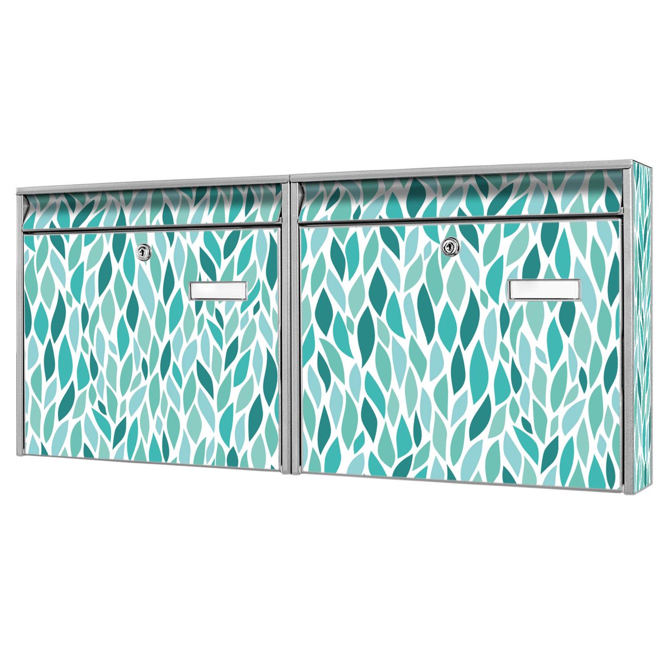 FUNKTION: Die Burg Wächter doppel Briefkastenanlage mit Motiv Blätter Mint bietet Ihnen ein großes Fassungsvermögen, sodass auch A4 Sendungen eingeworfen werden können. Das Namensschild lässt sich individuell beschriften. DESIGN: Die 2 Briefkästen mit Blätter Mint Motiv haben ein sehr ansprechendes und zeitloses Design. Heben Sie Sich von der tristen grauen Masse ab, ohne auf Funktionalität zu verzichten. Sie erhalten 2 Schlüssel sowie das Montagematerial. DETAILS: Der Doppelbriefkasten besteht aus verzinktem Stahl weiß. Er ist 72,5cm x 32,2cm x 10cm groß. Das Motiv besteht aus einer wetter- und UV-festen Folie, die Ihren Briefkasten zusätzlich vor Kratzern schützt. NUTZEN: Die stabile Bauart sowie die Wetterfestigkeit machen diese doppel Briefkästen zu einem zuverlässigen Begleiter im Alltag. Effektvoll in Reihe gehangen schmückt die Anlage jede Hauswand. BANJADO: Ihr Briefkasten wird in Sachsen in einer kleinen Manufaktur von Hand veredelt. Die Motivfolie ist lösungsmittelfrei und schutzlaminiert für einen langen Halt. Wir legen großen Wert auf die Verbindung von Funktionalität und Design. Sie erhalten Handarbeit aus Sachsen.