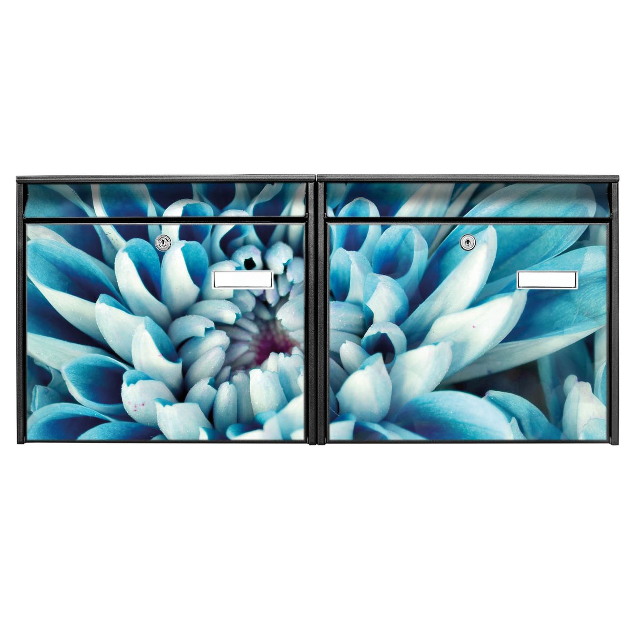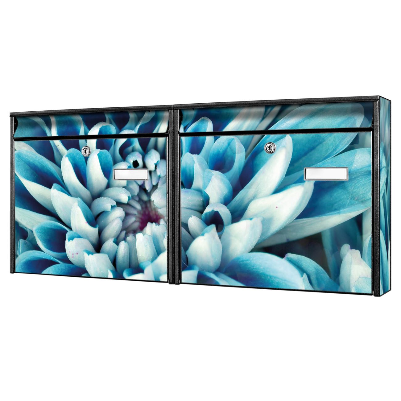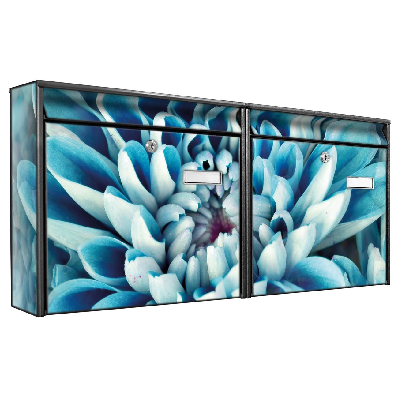 Doppelbriefkasten quer Blaue Blüten