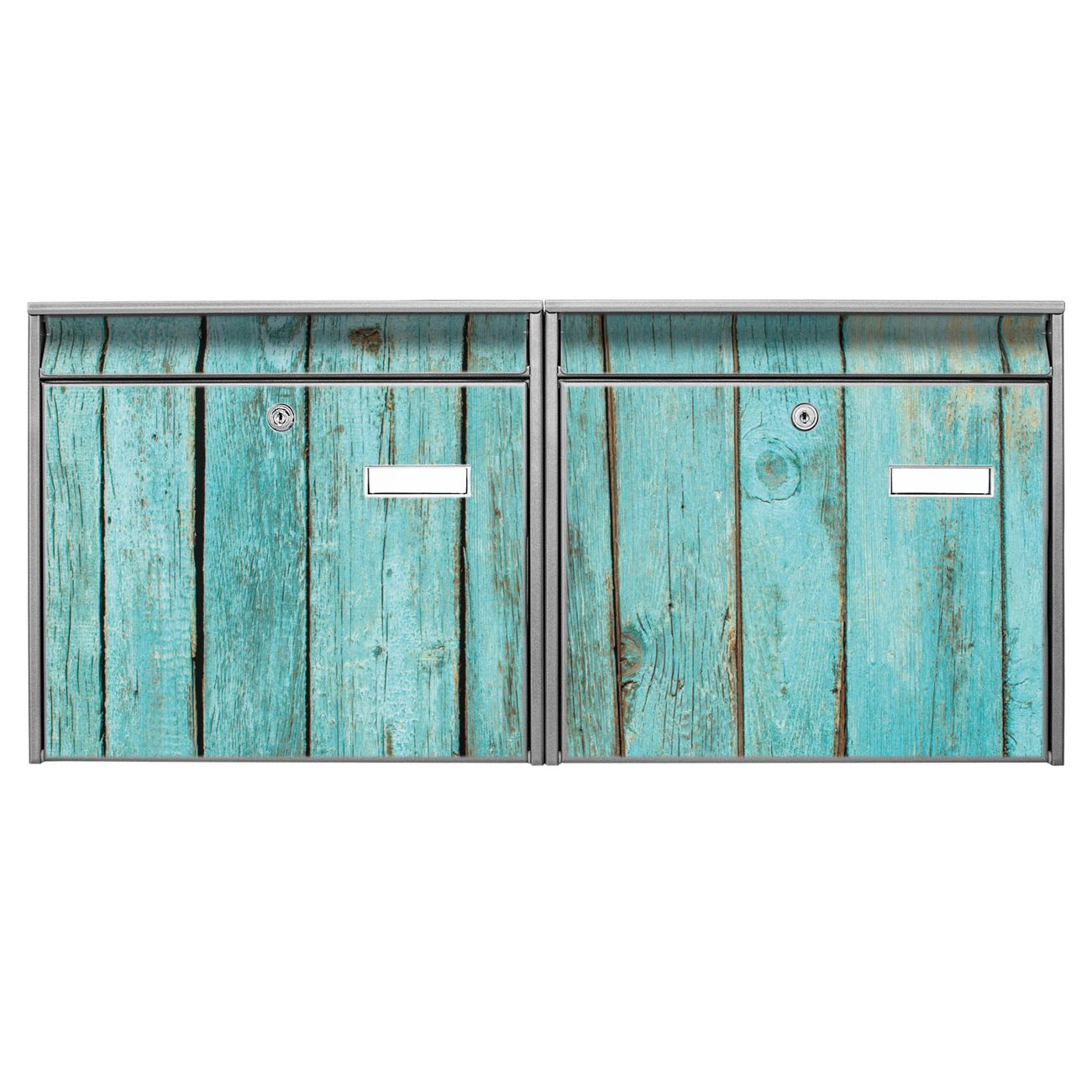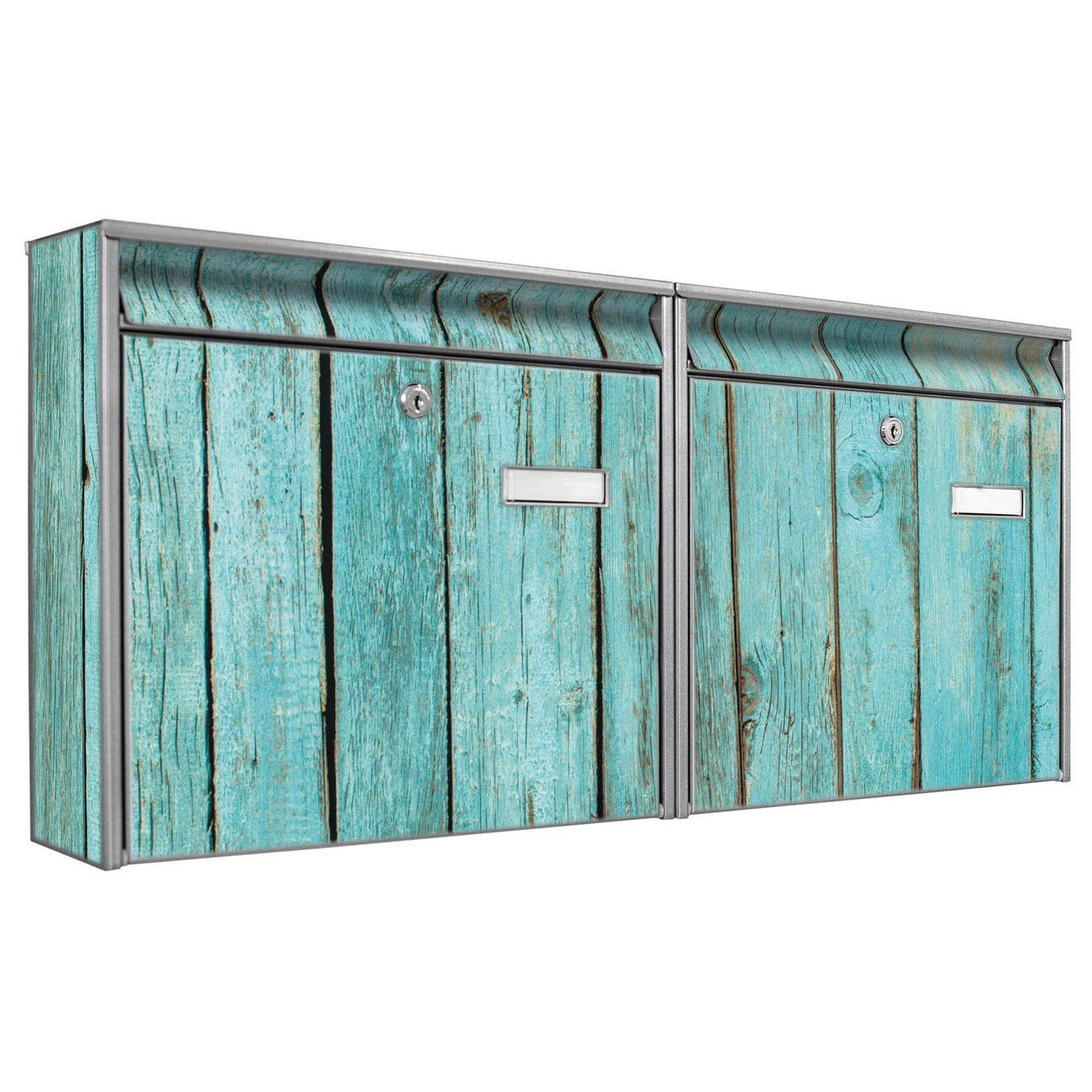 FUNKTION: Die Burg Wächter doppel Briefkastenanlage mit Motiv Blaues Holz bietet Ihnen ein großes Fassungsvermögen, sodass auch A4 Sendungen eingeworfen werden können. Das Namensschild lässt sich individuell beschriften. DESIGN: Die 2 Briefkästen mit Blaues Holz Motiv haben ein sehr ansprechendes und zeitloses Design. Heben Sie Sich von der tristen grauen Masse ab, ohne auf Funktionalität zu verzichten. Sie erhalten 2 Schlüssel sowie das Montagematerial. DETAILS: Der Doppelbriefkasten besteht aus verzinktem Stahl weiß. Er ist 72,5cm x 32,2cm x 10cm groß. Das Motiv besteht aus einer wetter- und UV-festen Folie, die Ihren Briefkasten zusätzlich vor Kratzern schützt. NUTZEN: Die stabile Bauart sowie die Wetterfestigkeit machen diese doppel Briefkästen zu einem zuverlässigen Begleiter im Alltag. Effektvoll in Reihe gehangen schmückt die Anlage jede Hauswand. BANJADO: Ihr Briefkasten wird in Sachsen in einer kleinen Manufaktur von Hand veredelt. Die Motivfolie ist lösungsmittelfrei und schutzlaminiert für einen langen Halt. Wir legen großen Wert auf die Verbindung von Funktionalität und Design. Sie erhalten Handarbeit aus Sachsen.