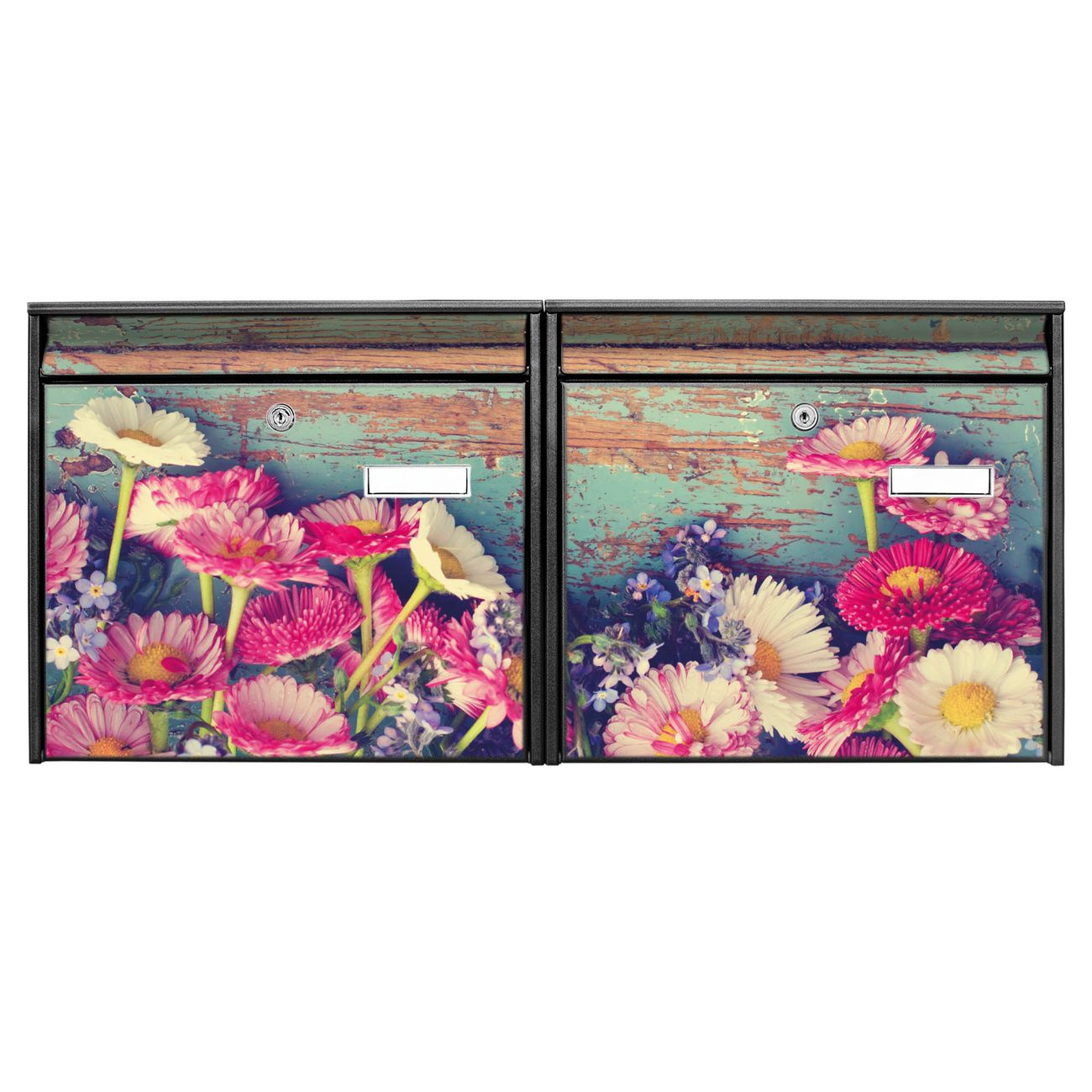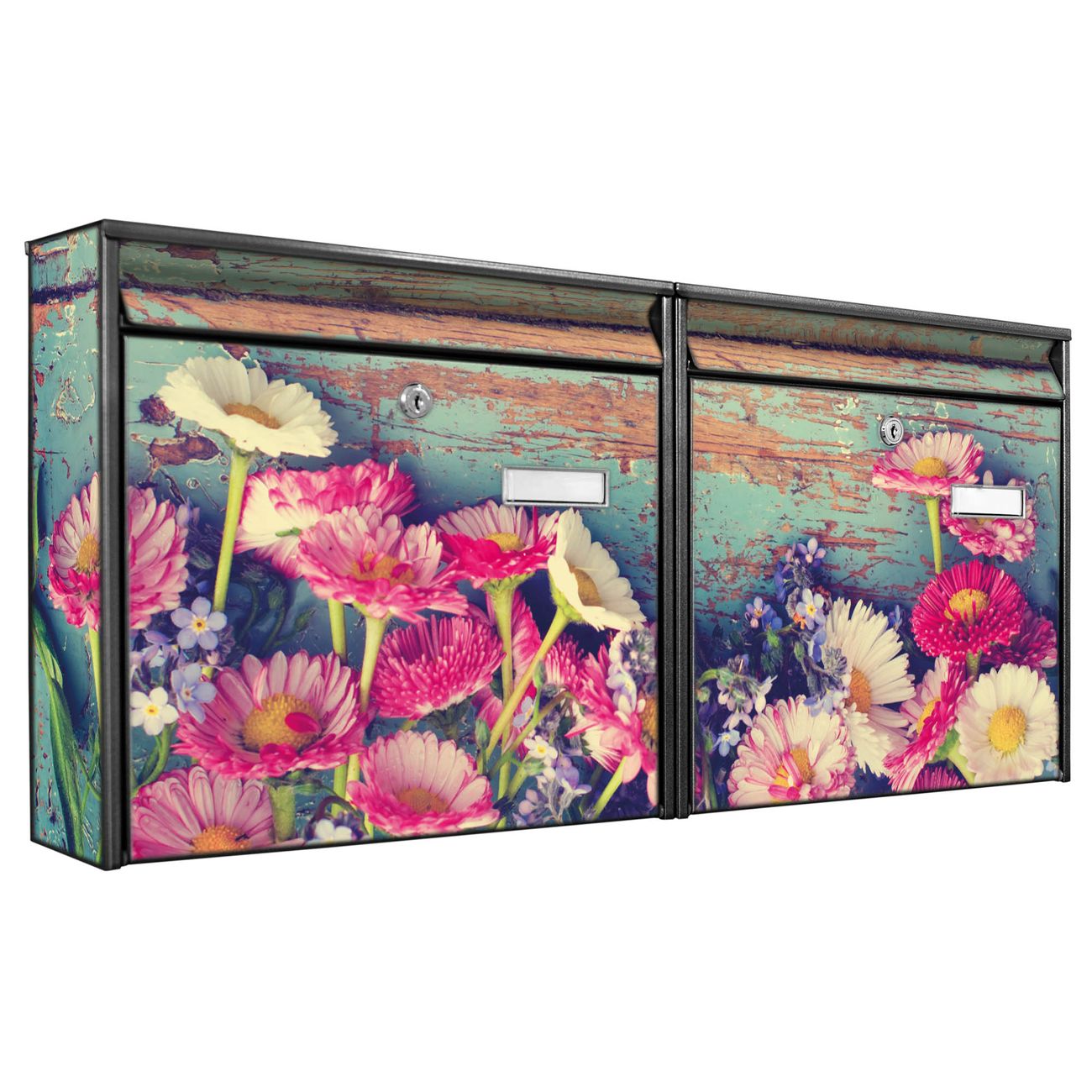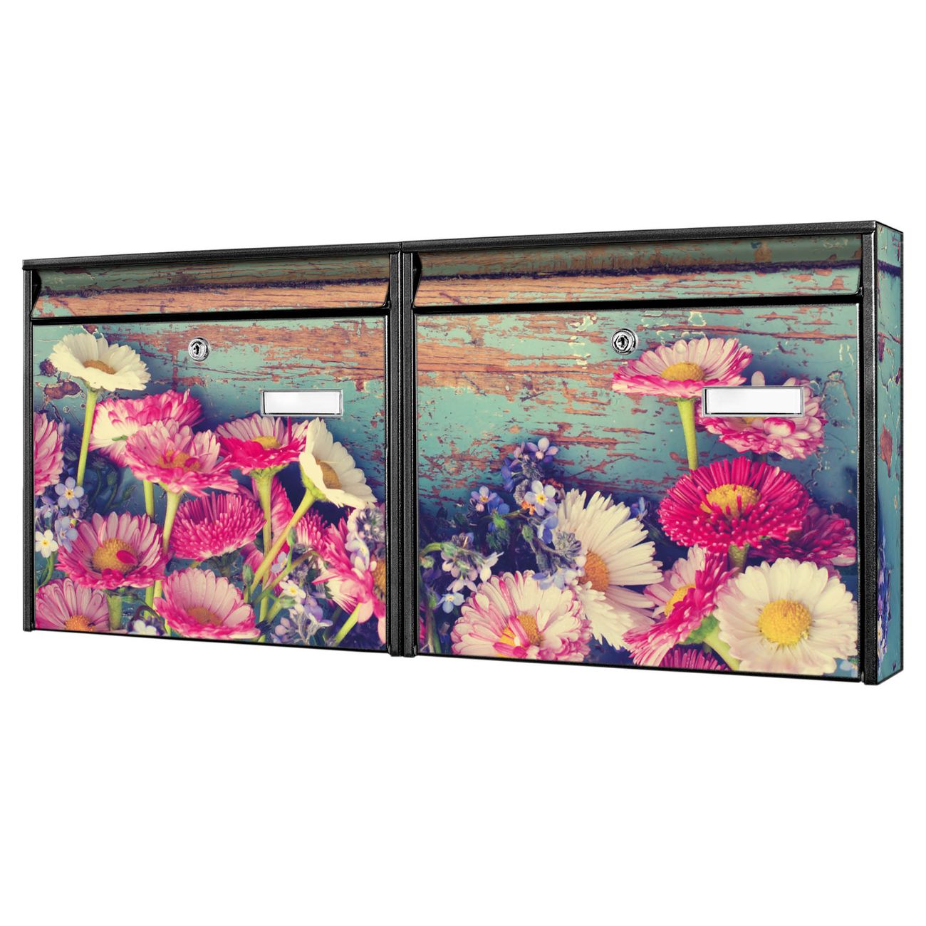 FUNKTION: Die Burg Wächter doppel Briefkastenanlage mit Motiv Blumenpfücken bietet Ihnen ein großes Fassungsvermögen, sodass auch A4 Sendungen eingeworfen werden können. Das Namensschild lässt sich individuell beschriften. DESIGN: Die 2 Briefkästen mit Blumenpfücken Motiv haben ein sehr ansprechendes und zeitloses Design. Heben Sie Sich von der tristen grauen Masse ab, ohne auf Funktionalität zu verzichten. Sie erhalten 2 Schlüssel sowie das Montagematerial. DETAILS: Der Doppelbriefkasten besteht aus verzinktem Stahl weiß. Er ist 72,5cm x 32,2cm x 10cm groß. Das Motiv besteht aus einer wetter- und UV-festen Folie, die Ihren Briefkasten zusätzlich vor Kratzern schützt. NUTZEN: Die stabile Bauart sowie die Wetterfestigkeit machen diese doppel Briefkästen zu einem zuverlässigen Begleiter im Alltag. Effektvoll in Reihe gehangen schmückt die Anlage jede Hauswand. BANJADO: Ihr Briefkasten wird in Sachsen in einer kleinen Manufaktur von Hand veredelt. Die Motivfolie ist lösungsmittelfrei und schutzlaminiert für einen langen Halt. Wir legen großen Wert auf die Verbindung von Funktionalität und Design. Sie erhalten Handarbeit aus Sachsen.
