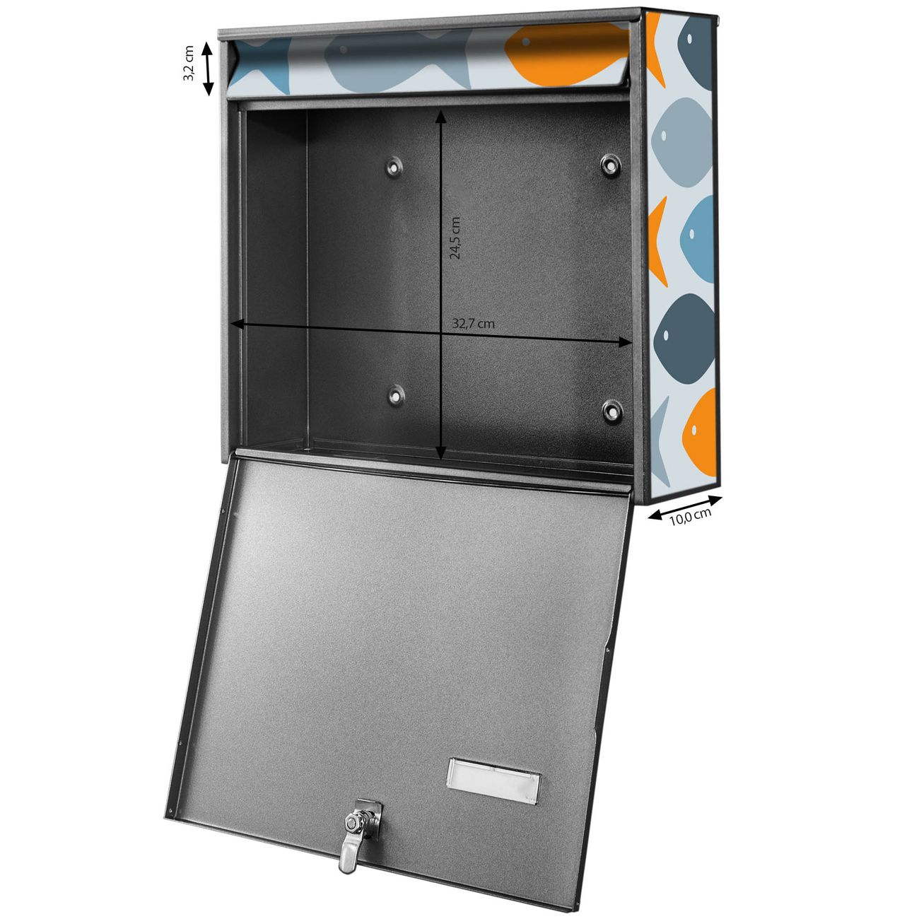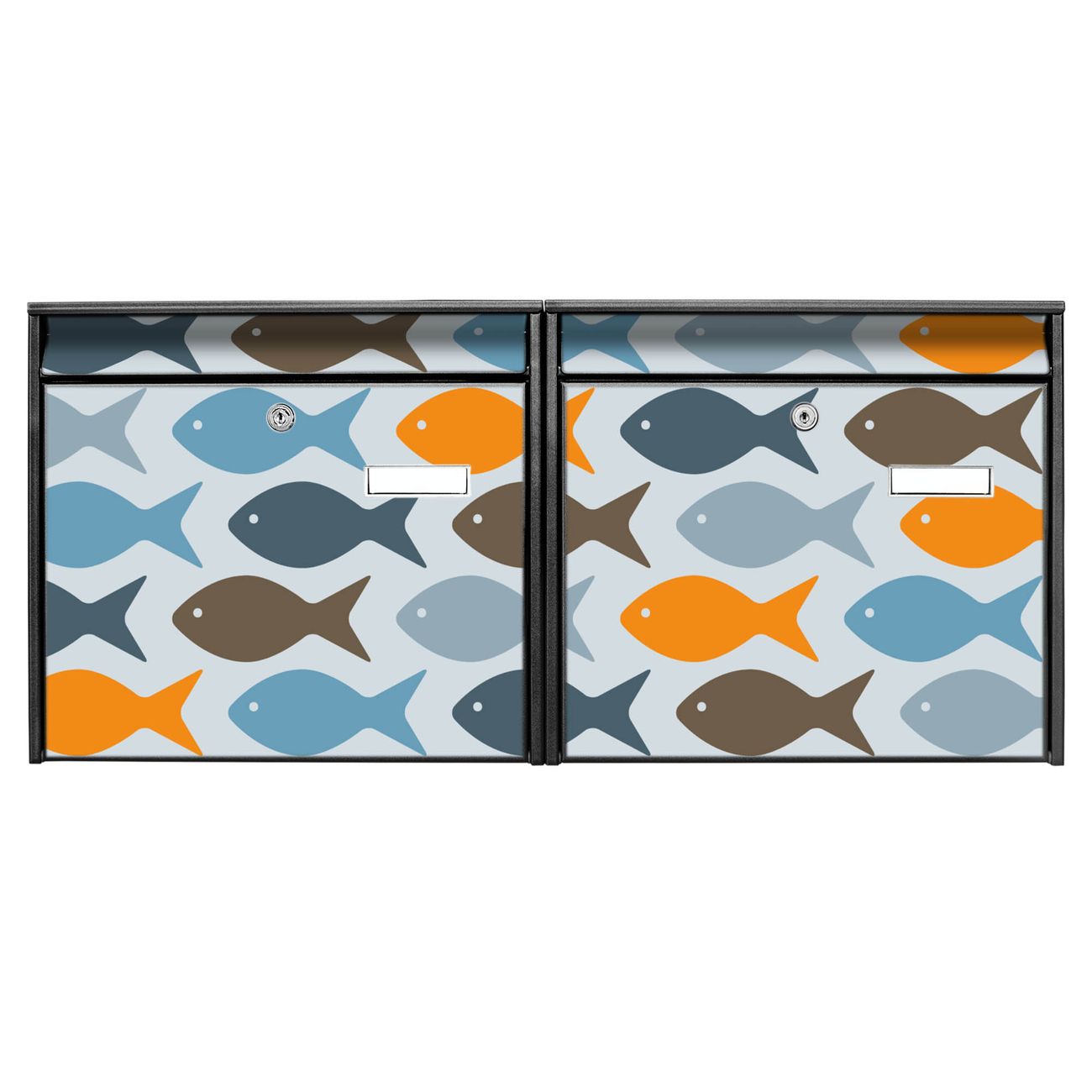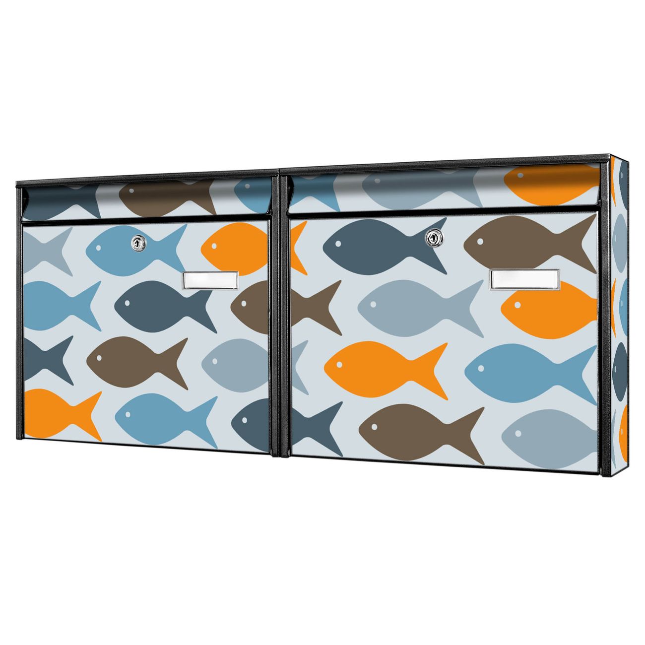 FUNKTION: Die Burg Wächter doppel Briefkastenanlage mit Motiv Bunte Fische bietet Ihnen ein großes Fassungsvermögen, sodass auch A4 Sendungen eingeworfen werden können. Das Namensschild lässt sich individuell beschriften. DESIGN: Die 2 Briefkästen mit Bunte Fische Motiv haben ein sehr ansprechendes und zeitloses Design. Heben Sie Sich von der tristen grauen Masse ab, ohne auf Funktionalität zu verzichten. Sie erhalten 2 Schlüssel sowie das Montagematerial. DETAILS: Der Doppelbriefkasten besteht aus verzinktem Stahl weiß. Er ist 72,5cm x 32,2cm x 10cm groß. Das Motiv besteht aus einer wetter- und UV-festen Folie, die Ihren Briefkasten zusätzlich vor Kratzern schützt. NUTZEN: Die stabile Bauart sowie die Wetterfestigkeit machen diese doppel Briefkästen zu einem zuverlässigen Begleiter im Alltag. Effektvoll in Reihe gehangen schmückt die Anlage jede Hauswand. BANJADO: Ihr Briefkasten wird in Sachsen in einer kleinen Manufaktur von Hand veredelt. Die Motivfolie ist lösungsmittelfrei und schutzlaminiert für einen langen Halt. Wir legen großen Wert auf die Verbindung von Funktionalität und Design. Sie erhalten Handarbeit aus Sachsen.