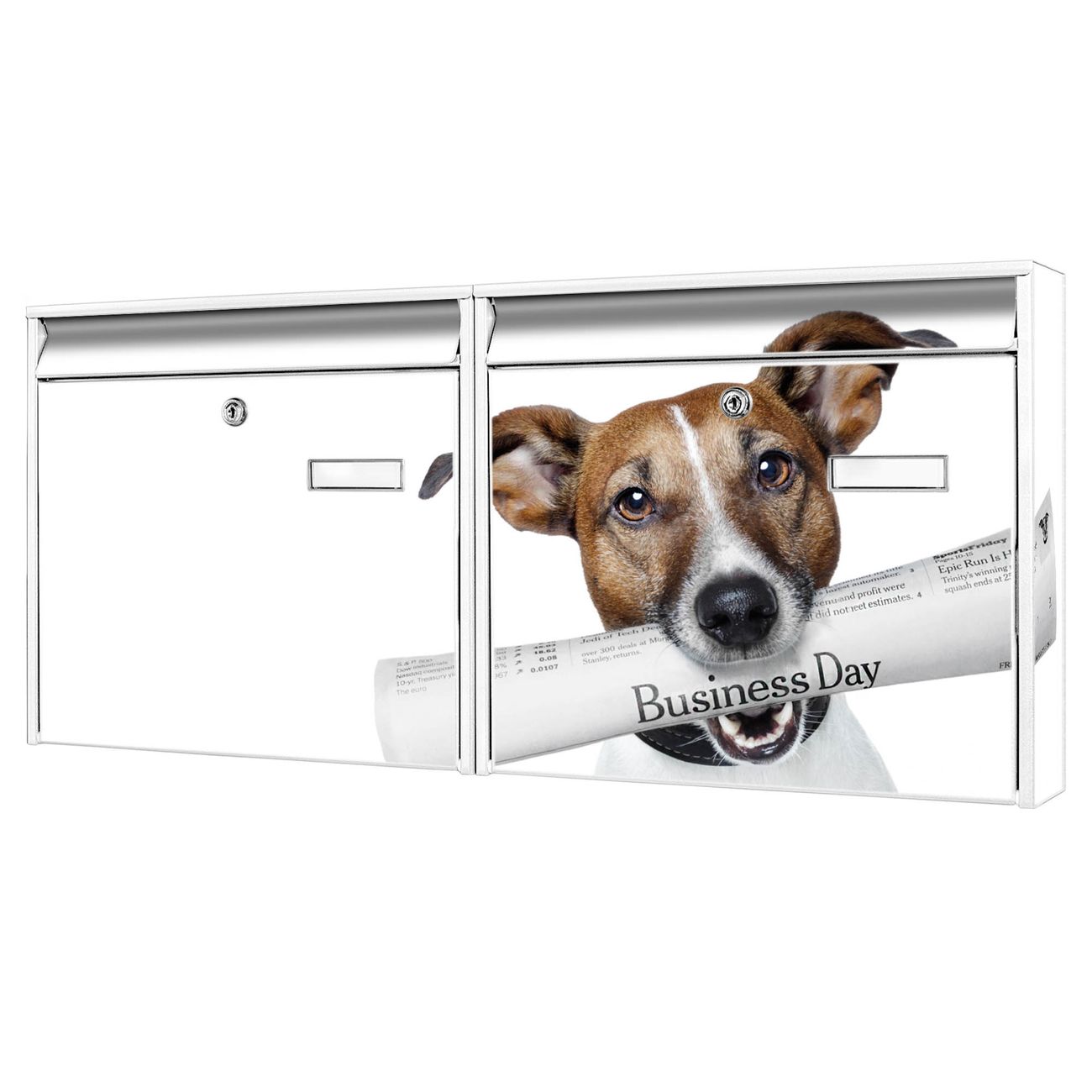 FUNKTION: Die Burg Wächter doppel Briefkastenanlage mit Motiv Business Day bietet Ihnen ein großes Fassungsvermögen, sodass auch A4 Sendungen eingeworfen werden können. Das Namensschild lässt sich individuell beschriften. DESIGN: Die 2 Briefkästen mit Business Day Motiv haben ein sehr ansprechendes und zeitloses Design. Heben Sie Sich von der tristen grauen Masse ab, ohne auf Funktionalität zu verzichten. Sie erhalten 2 Schlüssel sowie das Montagematerial. DETAILS: Der Doppelbriefkasten besteht aus verzinktem Stahl weiß. Er ist 72,5cm x 32,2cm x 10cm groß. Das Motiv besteht aus einer wetter- und UV-festen Folie, die Ihren Briefkasten zusätzlich vor Kratzern schützt. NUTZEN: Die stabile Bauart sowie die Wetterfestigkeit machen diese doppel Briefkästen zu einem zuverlässigen Begleiter im Alltag. Effektvoll in Reihe gehangen schmückt die Anlage jede Hauswand. BANJADO: Ihr Briefkasten wird in Sachsen in einer kleinen Manufaktur von Hand veredelt. Die Motivfolie ist lösungsmittelfrei und schutzlaminiert für einen langen Halt. Wir legen großen Wert auf die Verbindung von Funktionalität und Design. Sie erhalten Handarbeit aus Sachsen.