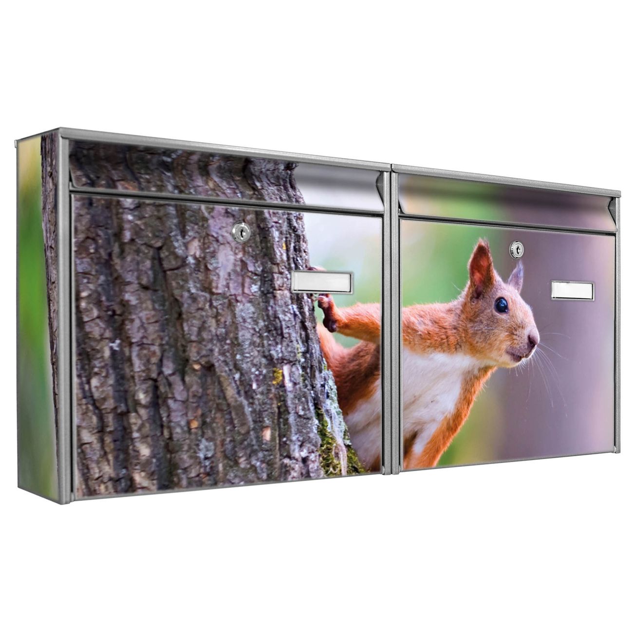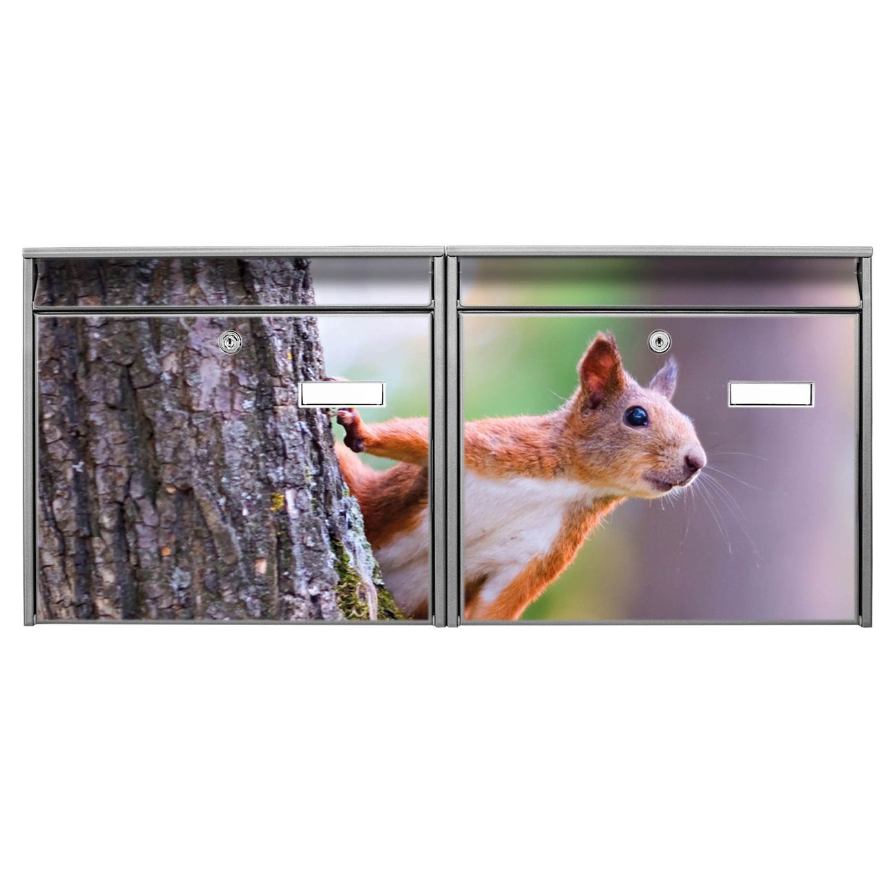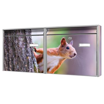 FUNKTION: Die Burg Wächter doppel Briefkastenanlage mit Motiv Eichhörnchen bietet Ihnen ein großes Fassungsvermögen, sodass auch A4 Sendungen eingeworfen werden können. Das Namensschild lässt sich individuell beschriften. DESIGN: Die 2 Briefkästen mit Eichhörnchen Motiv haben ein sehr ansprechendes und zeitloses Design. Heben Sie Sich von der tristen grauen Masse ab, ohne auf Funktionalität zu verzichten. Sie erhalten 2 Schlüssel sowie das Montagematerial. DETAILS: Der Doppelbriefkasten besteht aus verzinktem Stahl weiß. Er ist 72,5cm x 32,2cm x 10cm groß. Das Motiv besteht aus einer wetter- und UV-festen Folie, die Ihren Briefkasten zusätzlich vor Kratzern schützt. NUTZEN: Die stabile Bauart sowie die Wetterfestigkeit machen diese doppel Briefkästen zu einem zuverlässigen Begleiter im Alltag. Effektvoll in Reihe gehangen schmückt die Anlage jede Hauswand. BANJADO: Ihr Briefkasten wird in Sachsen in einer kleinen Manufaktur von Hand veredelt. Die Motivfolie ist lösungsmittelfrei und schutzlaminiert für einen langen Halt. Wir legen großen Wert auf die Verbindung von Funktionalität und Design. Sie erhalten Handarbeit aus Sachsen.