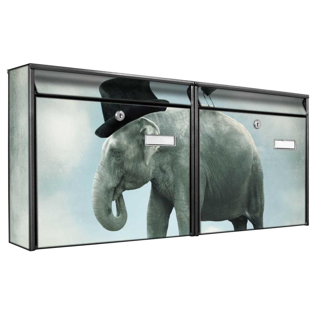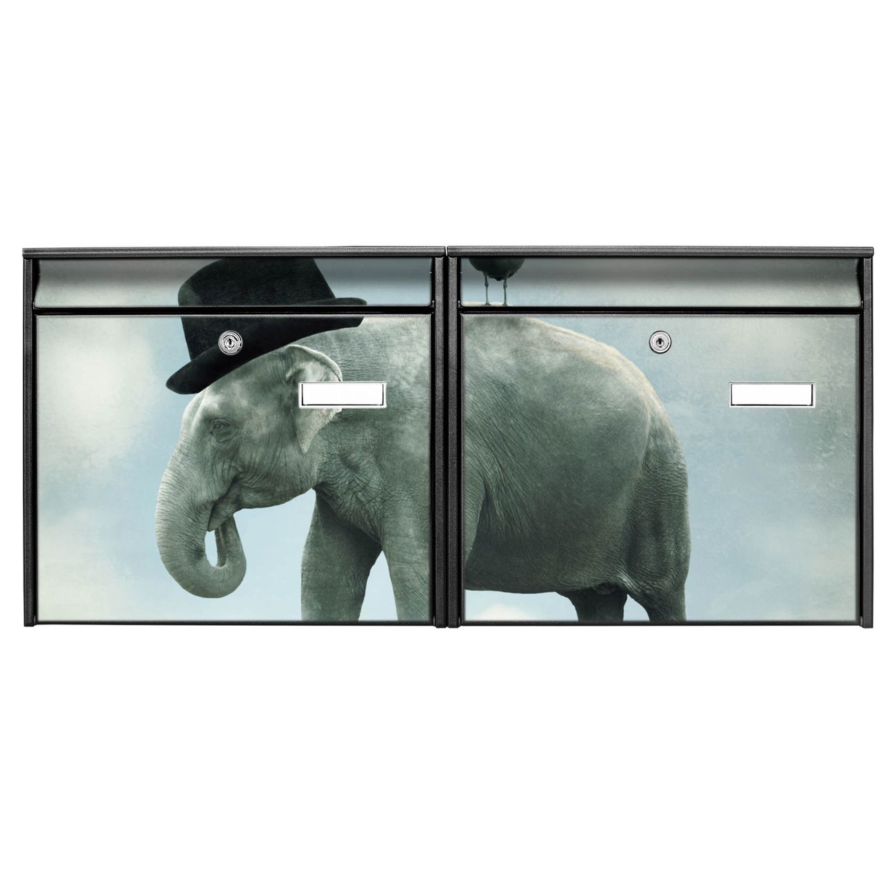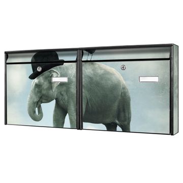 Doppelbriefkasten quer Elefant und Möwe