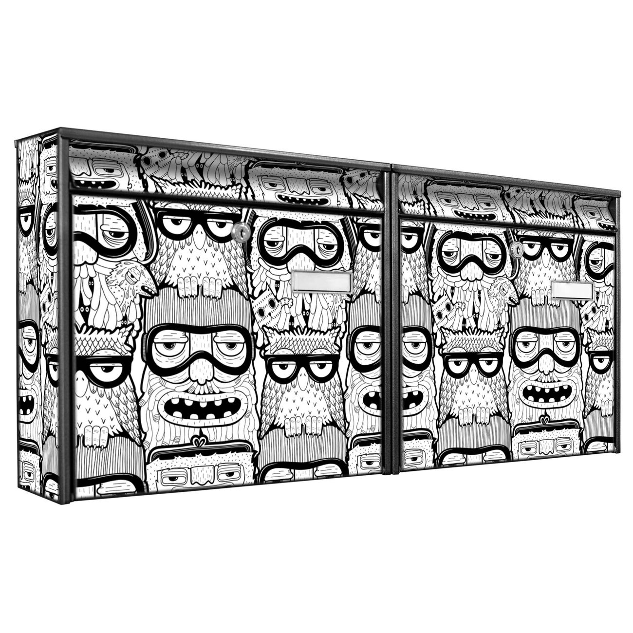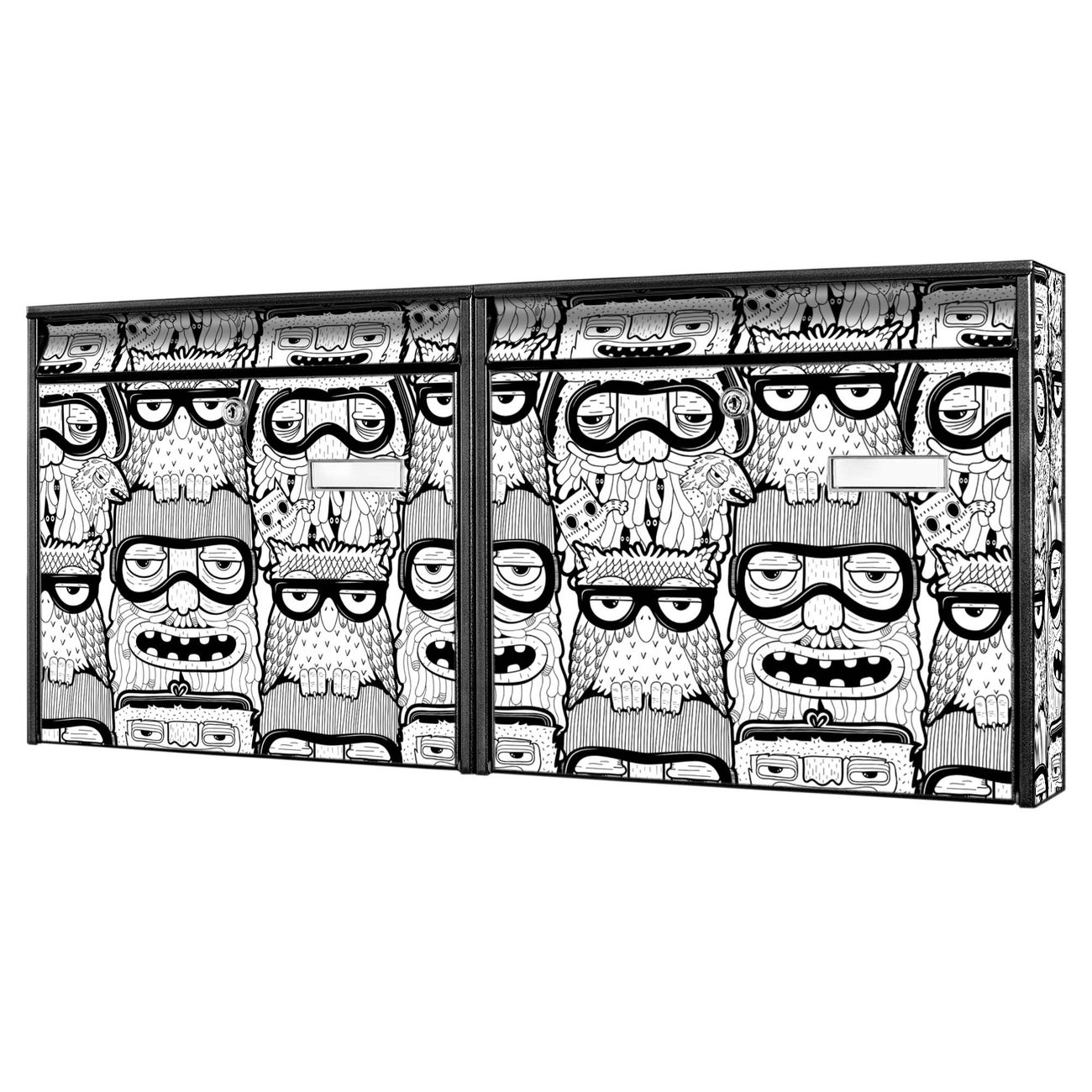 FUNKTION: Die Burg Wächter doppel Briefkastenanlage mit Motiv Eule und Olaf bietet Ihnen ein großes Fassungsvermögen, sodass auch A4 Sendungen eingeworfen werden können. Das Namensschild lässt sich individuell beschriften. DESIGN: Die 2 Briefkästen mit Eule und Olaf Motiv haben ein sehr ansprechendes und zeitloses Design. Heben Sie Sich von der tristen grauen Masse ab, ohne auf Funktionalität zu verzichten. Sie erhalten 2 Schlüssel sowie das Montagematerial. DETAILS: Der Doppelbriefkasten besteht aus verzinktem Stahl weiß. Er ist 72,5cm x 32,2cm x 10cm groß. Das Motiv besteht aus einer wetter- und UV-festen Folie, die Ihren Briefkasten zusätzlich vor Kratzern schützt. NUTZEN: Die stabile Bauart sowie die Wetterfestigkeit machen diese doppel Briefkästen zu einem zuverlässigen Begleiter im Alltag. Effektvoll in Reihe gehangen schmückt die Anlage jede Hauswand. BANJADO: Ihr Briefkasten wird in Sachsen in einer kleinen Manufaktur von Hand veredelt. Die Motivfolie ist lösungsmittelfrei und schutzlaminiert für einen langen Halt. Wir legen großen Wert auf die Verbindung von Funktionalität und Design. Sie erhalten Handarbeit aus Sachsen.