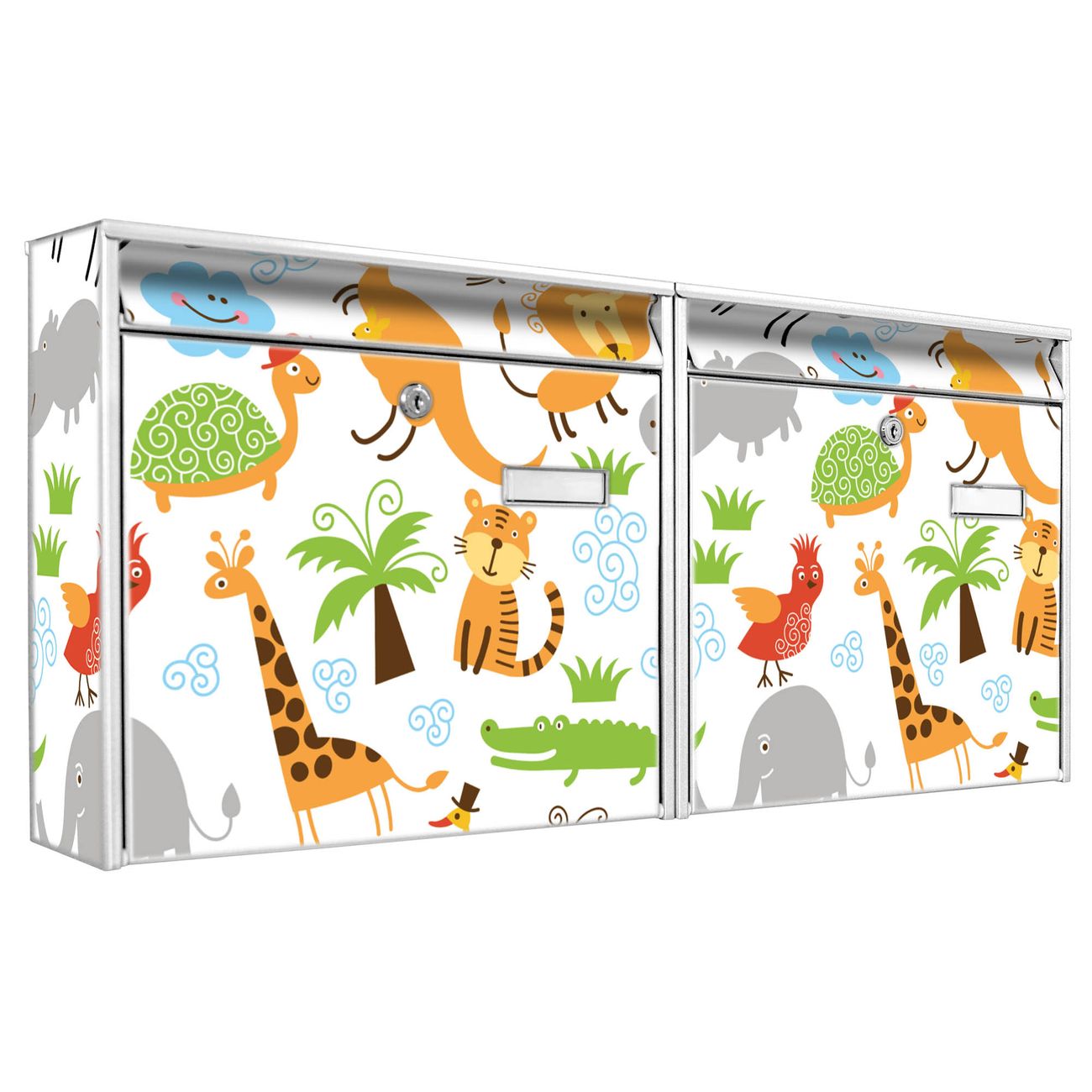 Doppelbriefkasten quer Fröhliche Tiere