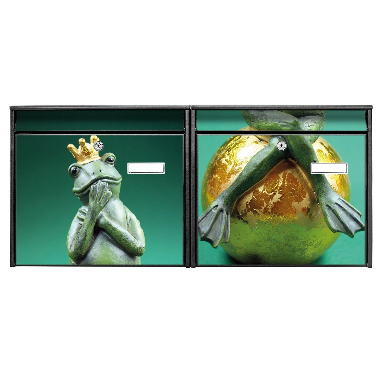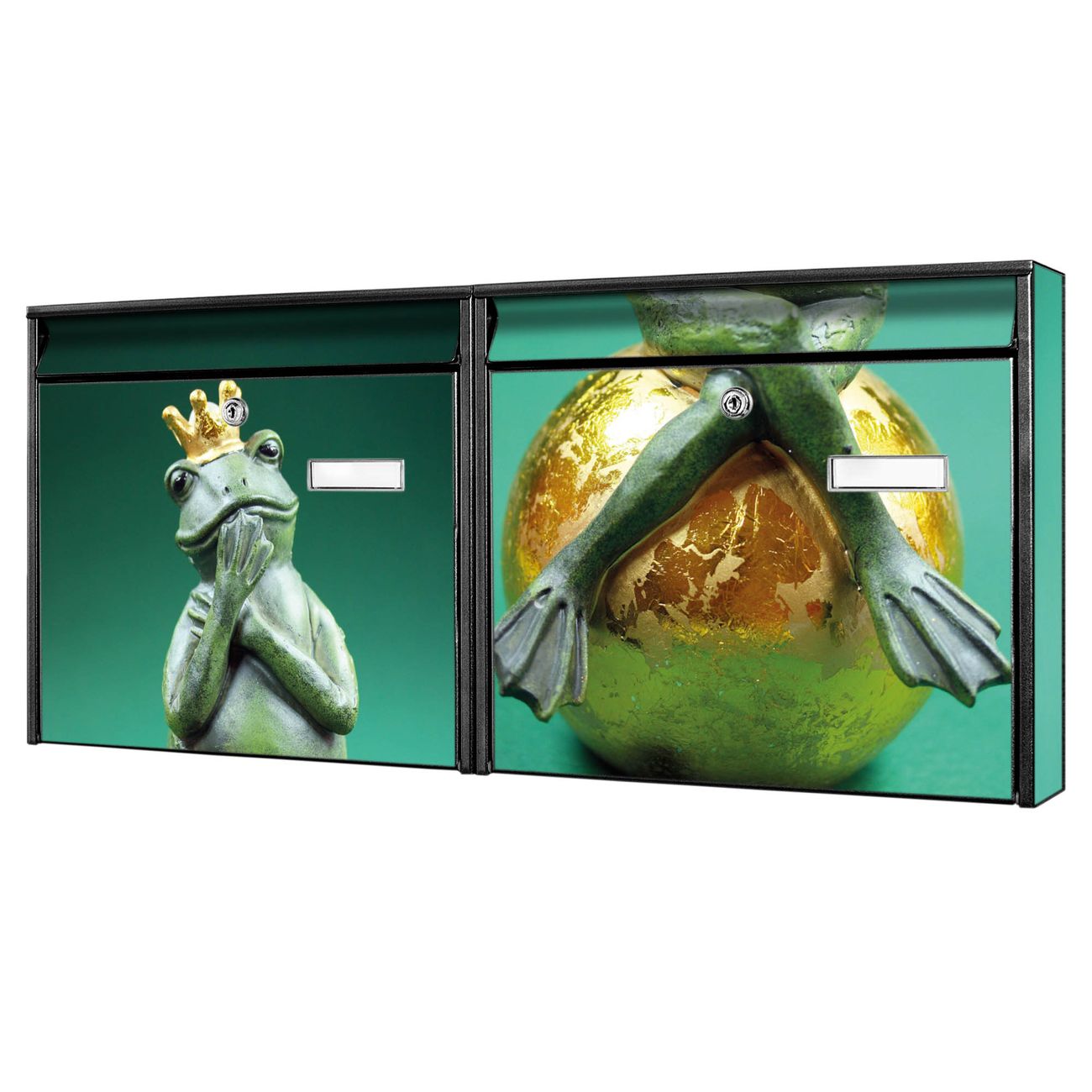 FUNKTION: Die Burg Wächter doppel Briefkastenanlage mit Motiv Froschkönig bietet Ihnen ein großes Fassungsvermögen, sodass auch A4 Sendungen eingeworfen werden können. Das Namensschild lässt sich individuell beschriften. DESIGN: Die 2 Briefkästen mit Froschkönig Motiv haben ein sehr ansprechendes und zeitloses Design. Heben Sie Sich von der tristen grauen Masse ab, ohne auf Funktionalität zu verzichten. Sie erhalten 2 Schlüssel sowie das Montagematerial. DETAILS: Der Doppelbriefkasten besteht aus verzinktem Stahl weiß. Er ist 72,5cm x 32,2cm x 10cm groß. Das Motiv besteht aus einer wetter- und UV-festen Folie, die Ihren Briefkasten zusätzlich vor Kratzern schützt. NUTZEN: Die stabile Bauart sowie die Wetterfestigkeit machen diese doppel Briefkästen zu einem zuverlässigen Begleiter im Alltag. Effektvoll in Reihe gehangen schmückt die Anlage jede Hauswand. BANJADO: Ihr Briefkasten wird in Sachsen in einer kleinen Manufaktur von Hand veredelt. Die Motivfolie ist lösungsmittelfrei und schutzlaminiert für einen langen Halt. Wir legen großen Wert auf die Verbindung von Funktionalität und Design. Sie erhalten Handarbeit aus Sachsen.