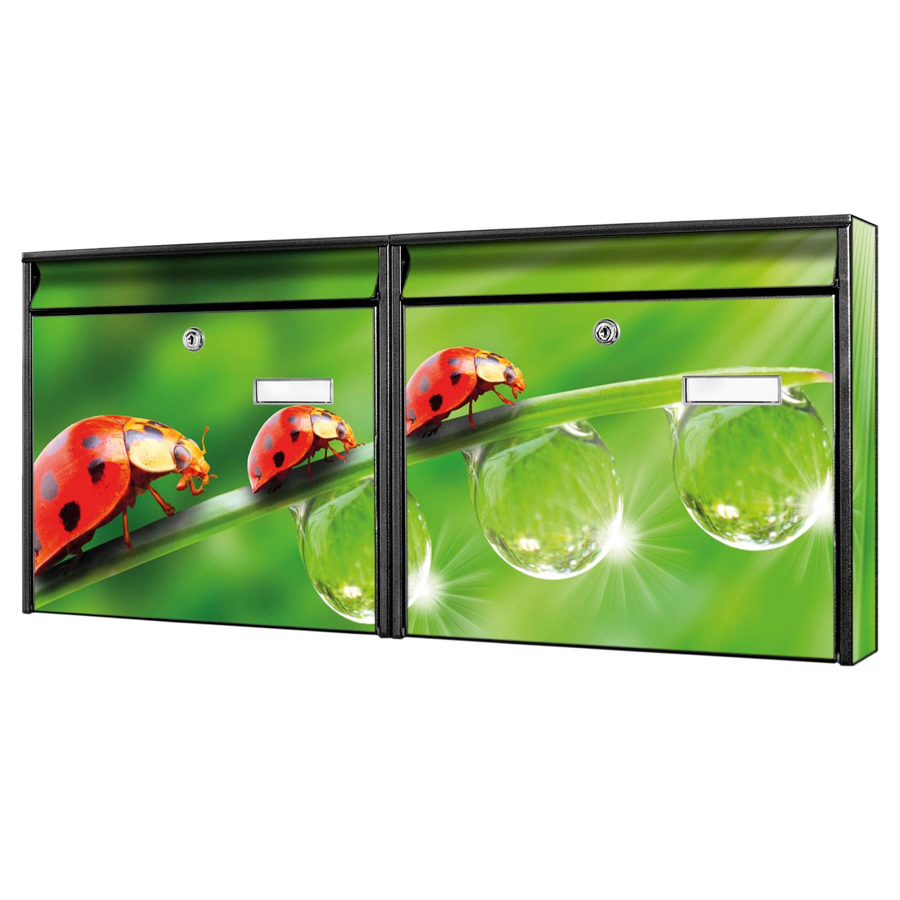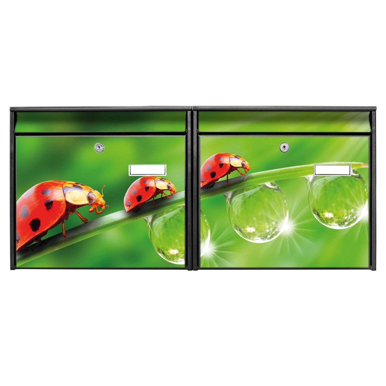 FUNKTION: Die Burg Wächter doppel Briefkastenanlage mit Motiv Für Jeden Einen bietet Ihnen ein großes Fassungsvermögen, sodass auch A4 Sendungen eingeworfen werden können. Das Namensschild lässt sich individuell beschriften. DESIGN: Die 2 Briefkästen mit Für Jeden Einen Motiv haben ein sehr ansprechendes und zeitloses Design. Heben Sie Sich von der tristen grauen Masse ab, ohne auf Funktionalität zu verzichten. Sie erhalten 2 Schlüssel sowie das Montagematerial. DETAILS: Der Doppelbriefkasten besteht aus verzinktem Stahl weiß. Er ist 72,5cm x 32,2cm x 10cm groß. Das Motiv besteht aus einer wetter- und UV-festen Folie, die Ihren Briefkasten zusätzlich vor Kratzern schützt. NUTZEN: Die stabile Bauart sowie die Wetterfestigkeit machen diese doppel Briefkästen zu einem zuverlässigen Begleiter im Alltag. Effektvoll in Reihe gehangen schmückt die Anlage jede Hauswand. BANJADO: Ihr Briefkasten wird in Sachsen in einer kleinen Manufaktur von Hand veredelt. Die Motivfolie ist lösungsmittelfrei und schutzlaminiert für einen langen Halt. Wir legen großen Wert auf die Verbindung von Funktionalität und Design. Sie erhalten Handarbeit aus Sachsen.