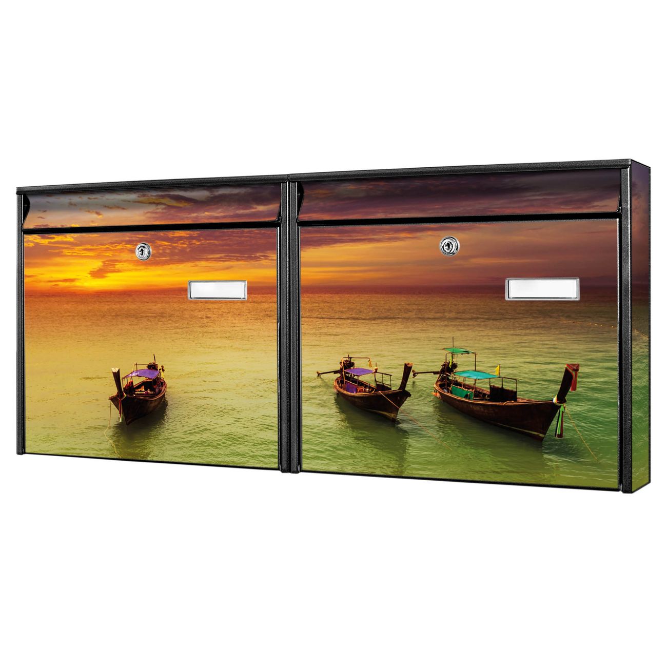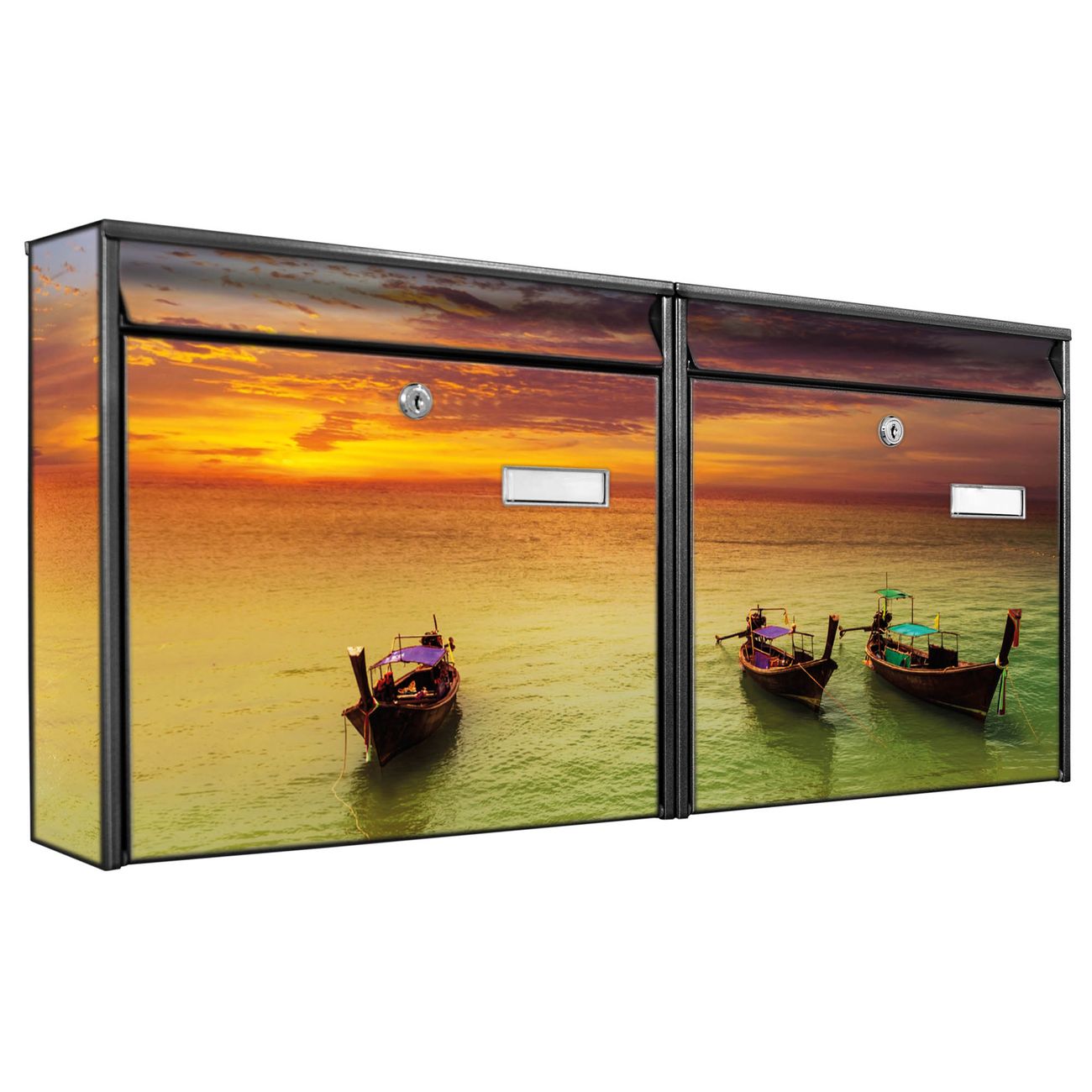 FUNKTION: Die Burg Wächter doppel Briefkastenanlage mit Motiv Golf Von Thailand bietet Ihnen ein großes Fassungsvermögen, sodass auch A4 Sendungen eingeworfen werden können. Das Namensschild lässt sich individuell beschriften. DESIGN: Die 2 Briefkästen mit Golf Von Thailand Motiv haben ein sehr ansprechendes und zeitloses Design. Heben Sie Sich von der tristen grauen Masse ab, ohne auf Funktionalität zu verzichten. Sie erhalten 2 Schlüssel sowie das Montagematerial. DETAILS: Der Doppelbriefkasten besteht aus verzinktem Stahl weiß. Er ist 72,5cm x 32,2cm x 10cm groß. Das Motiv besteht aus einer wetter- und UV-festen Folie, die Ihren Briefkasten zusätzlich vor Kratzern schützt. NUTZEN: Die stabile Bauart sowie die Wetterfestigkeit machen diese doppel Briefkästen zu einem zuverlässigen Begleiter im Alltag. Effektvoll in Reihe gehangen schmückt die Anlage jede Hauswand. BANJADO: Ihr Briefkasten wird in Sachsen in einer kleinen Manufaktur von Hand veredelt. Die Motivfolie ist lösungsmittelfrei und schutzlaminiert für einen langen Halt. Wir legen großen Wert auf die Verbindung von Funktionalität und Design. Sie erhalten Handarbeit aus Sachsen.