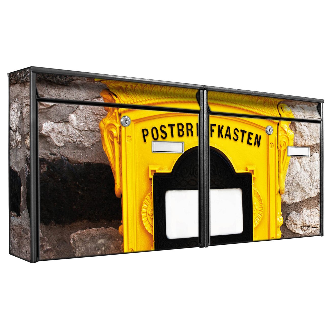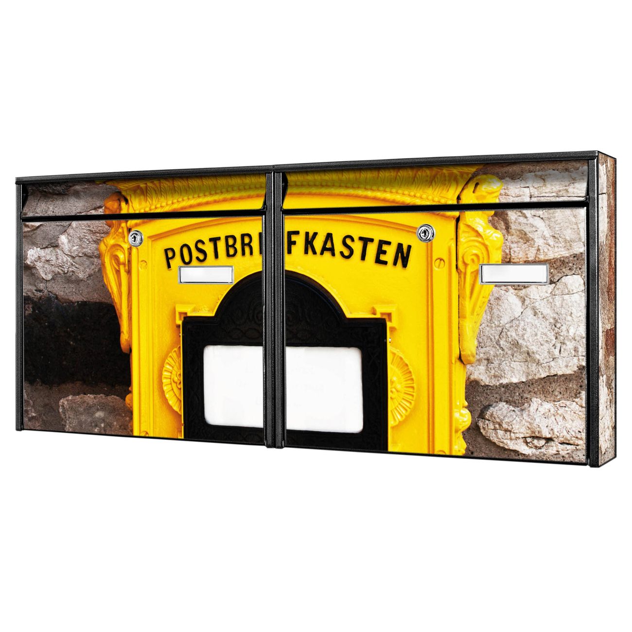 FUNKTION: Die Burg Wächter doppel Briefkastenanlage mit Motiv Historischer Postkasten bietet Ihnen ein großes Fassungsvermögen, sodass auch A4 Sendungen eingeworfen werden können. Das Namensschild lässt sich individuell beschriften. DESIGN: Die 2 Briefkästen mit Historischer Postkasten Motiv haben ein sehr ansprechendes und zeitloses Design. Heben Sie Sich von der tristen grauen Masse ab, ohne auf Funktionalität zu verzichten. Sie erhalten 2 Schlüssel sowie das Montagematerial. DETAILS: Der Doppelbriefkasten besteht aus verzinktem Stahl weiß. Er ist 72,5cm x 32,2cm x 10cm groß. Das Motiv besteht aus einer wetter- und UV-festen Folie, die Ihren Briefkasten zusätzlich vor Kratzern schützt. NUTZEN: Die stabile Bauart sowie die Wetterfestigkeit machen diese doppel Briefkästen zu einem zuverlässigen Begleiter im Alltag. Effektvoll in Reihe gehangen schmückt die Anlage jede Hauswand. BANJADO: Ihr Briefkasten wird in Sachsen in einer kleinen Manufaktur von Hand veredelt. Die Motivfolie ist lösungsmittelfrei und schutzlaminiert für einen langen Halt. Wir legen großen Wert auf die Verbindung von Funktionalität und Design. Sie erhalten Handarbeit aus Sachsen.
