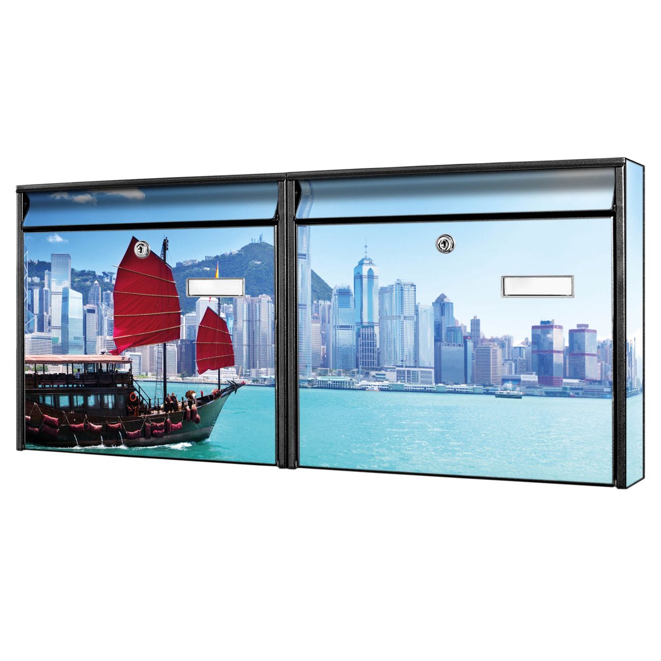 FUNKTION: Die Burg Wächter doppel Briefkastenanlage mit Motiv Hong Kong bietet Ihnen ein großes Fassungsvermögen, sodass auch A4 Sendungen eingeworfen werden können. Das Namensschild lässt sich individuell beschriften. DESIGN: Die 2 Briefkästen mit Hong Kong Motiv haben ein sehr ansprechendes und zeitloses Design. Heben Sie Sich von der tristen grauen Masse ab, ohne auf Funktionalität zu verzichten. Sie erhalten 2 Schlüssel sowie das Montagematerial. DETAILS: Der Doppelbriefkasten besteht aus verzinktem Stahl weiß. Er ist 72,5cm x 32,2cm x 10cm groß. Das Motiv besteht aus einer wetter- und UV-festen Folie, die Ihren Briefkasten zusätzlich vor Kratzern schützt. NUTZEN: Die stabile Bauart sowie die Wetterfestigkeit machen diese doppel Briefkästen zu einem zuverlässigen Begleiter im Alltag. Effektvoll in Reihe gehangen schmückt die Anlage jede Hauswand. BANJADO: Ihr Briefkasten wird in Sachsen in einer kleinen Manufaktur von Hand veredelt. Die Motivfolie ist lösungsmittelfrei und schutzlaminiert für einen langen Halt. Wir legen großen Wert auf die Verbindung von Funktionalität und Design. Sie erhalten Handarbeit aus Sachsen.