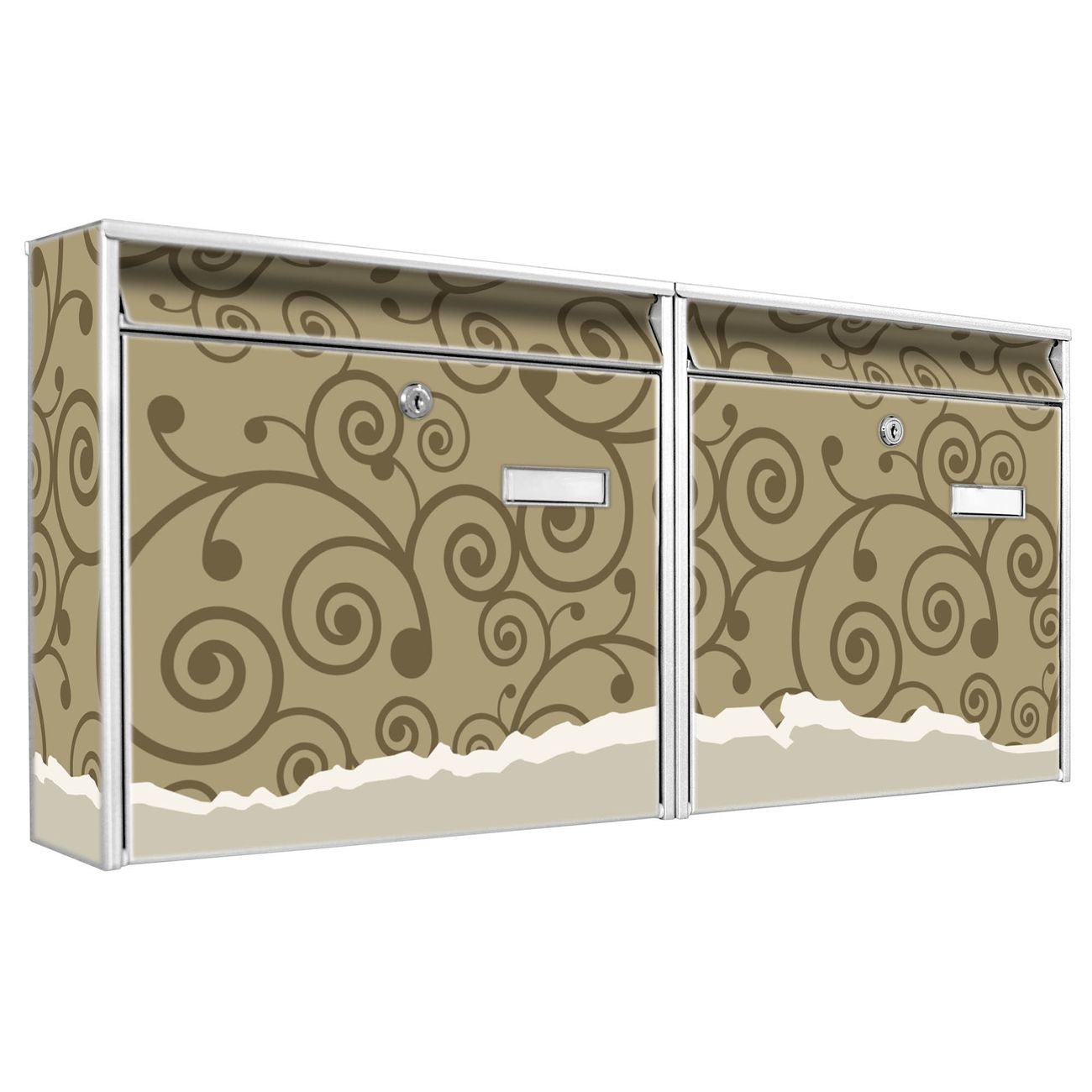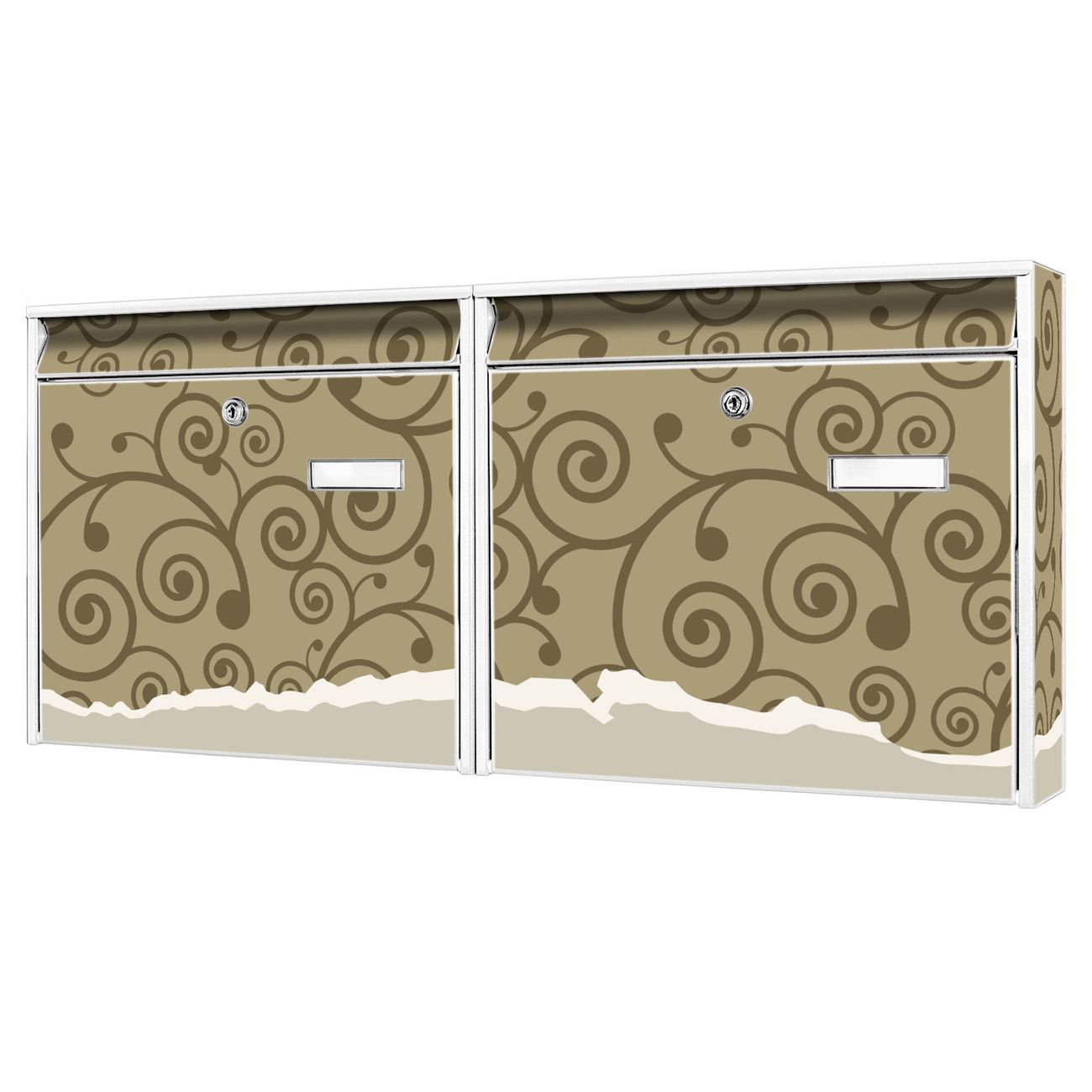FUNKTION: Die Burg Wächter doppel Briefkastenanlage mit Motiv Kringel bietet Ihnen ein großes Fassungsvermögen, sodass auch A4 Sendungen eingeworfen werden können. Das Namensschild lässt sich individuell beschriften. DESIGN: Die 2 Briefkästen mit Kringel Motiv haben ein sehr ansprechendes und zeitloses Design. Heben Sie Sich von der tristen grauen Masse ab, ohne auf Funktionalität zu verzichten. Sie erhalten 2 Schlüssel sowie das Montagematerial. DETAILS: Der Doppelbriefkasten besteht aus verzinktem Stahl weiß. Er ist 72,5cm x 32,2cm x 10cm groß. Das Motiv besteht aus einer wetter- und UV-festen Folie, die Ihren Briefkasten zusätzlich vor Kratzern schützt. NUTZEN: Die stabile Bauart sowie die Wetterfestigkeit machen diese doppel Briefkästen zu einem zuverlässigen Begleiter im Alltag. Effektvoll in Reihe gehangen schmückt die Anlage jede Hauswand. BANJADO: Ihr Briefkasten wird in Sachsen in einer kleinen Manufaktur von Hand veredelt. Die Motivfolie ist lösungsmittelfrei und schutzlaminiert für einen langen Halt. Wir legen großen Wert auf die Verbindung von Funktionalität und Design. Sie erhalten Handarbeit aus Sachsen.