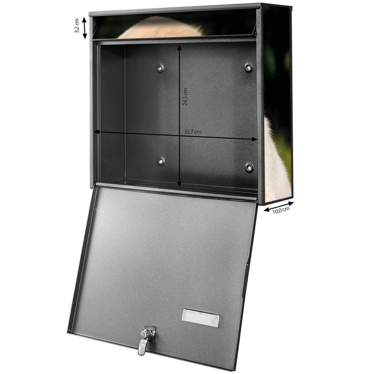 FUNKTION: Die Burg Wächter doppel Briefkastenanlage mit Motiv Labrador bietet Ihnen ein großes Fassungsvermögen, sodass auch A4 Sendungen eingeworfen werden können. Das Namensschild lässt sich individuell beschriften. DESIGN: Die 2 Briefkästen mit Labrador Motiv haben ein sehr ansprechendes und zeitloses Design. Heben Sie Sich von der tristen grauen Masse ab, ohne auf Funktionalität zu verzichten. Sie erhalten 2 Schlüssel sowie das Montagematerial. DETAILS: Der Doppelbriefkasten besteht aus verzinktem Stahl weiß. Er ist 72,5cm x 32,2cm x 10cm groß. Das Motiv besteht aus einer wetter- und UV-festen Folie, die Ihren Briefkasten zusätzlich vor Kratzern schützt. NUTZEN: Die stabile Bauart sowie die Wetterfestigkeit machen diese doppel Briefkästen zu einem zuverlässigen Begleiter im Alltag. Effektvoll in Reihe gehangen schmückt die Anlage jede Hauswand. BANJADO: Ihr Briefkasten wird in Sachsen in einer kleinen Manufaktur von Hand veredelt. Die Motivfolie ist lösungsmittelfrei und schutzlaminiert für einen langen Halt. Wir legen großen Wert auf die Verbindung von Funktionalität und Design. Sie erhalten Handarbeit aus Sachsen.
