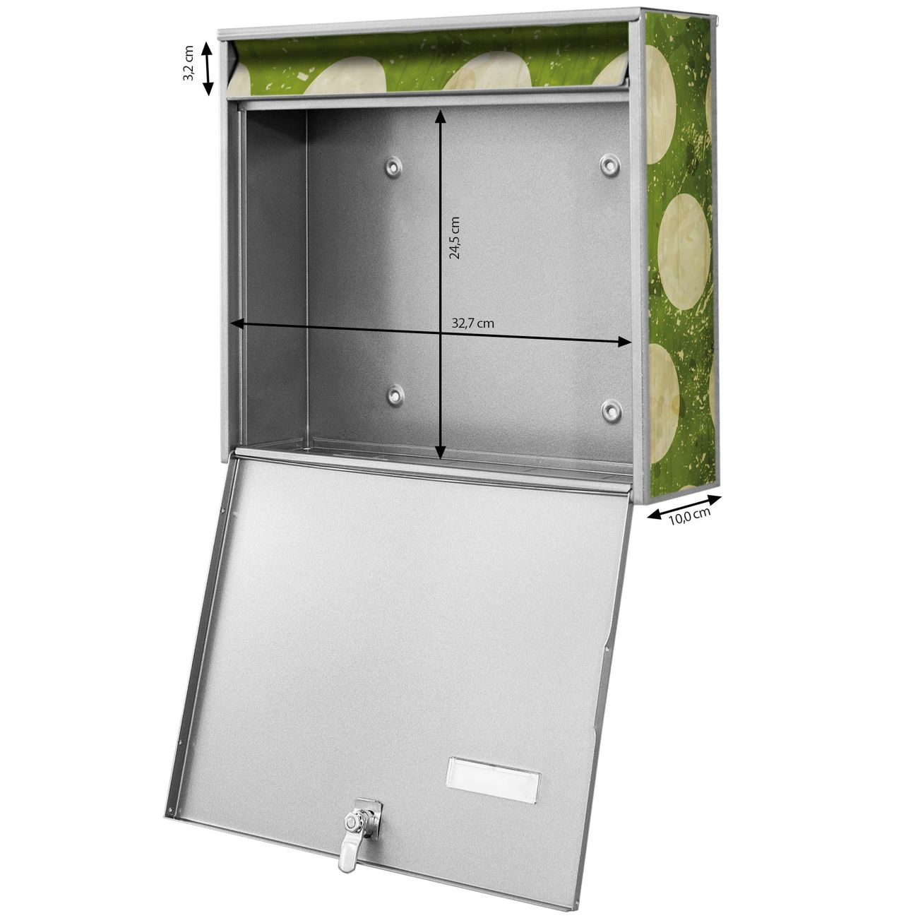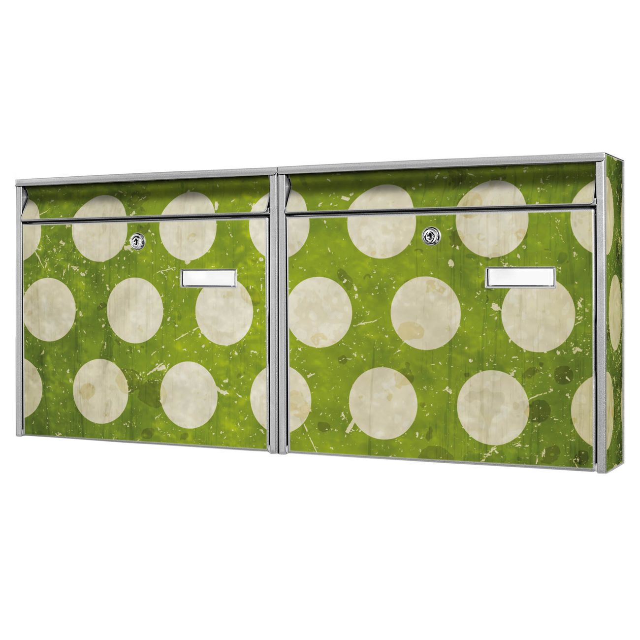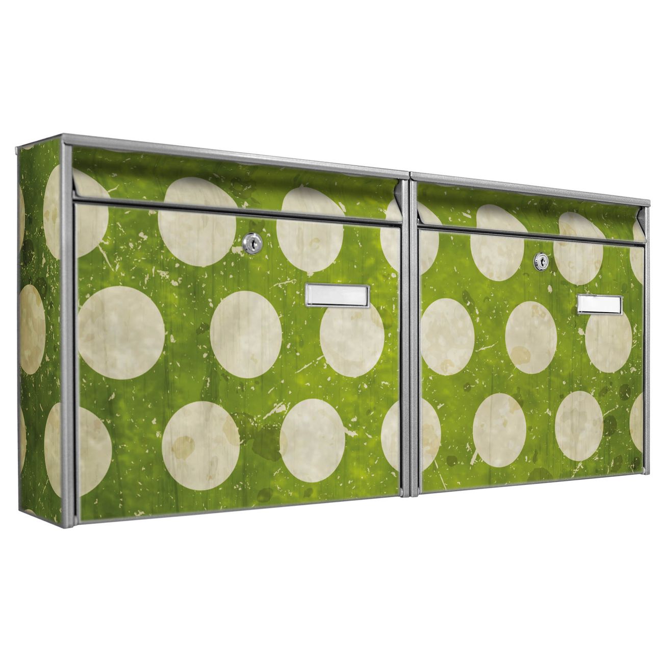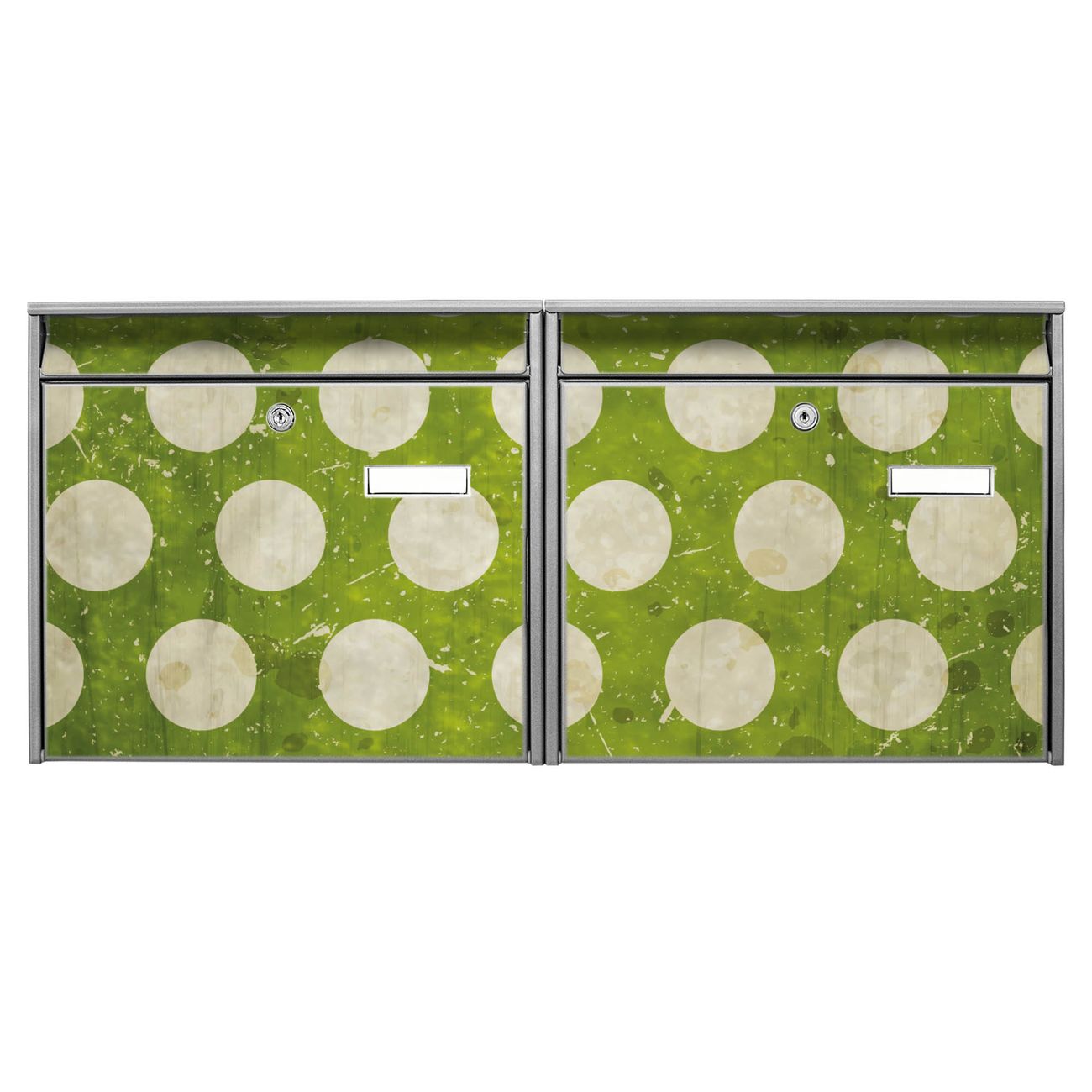 FUNKTION: Die Burg Wächter doppel Briefkastenanlage mit Motiv Punkte Grün Vintage bietet Ihnen ein großes Fassungsvermögen, sodass auch A4 Sendungen eingeworfen werden können. Das Namensschild lässt sich individuell beschriften. DESIGN: Die 2 Briefkästen mit Punkte Grün Vintage Motiv haben ein sehr ansprechendes und zeitloses Design. Heben Sie Sich von der tristen grauen Masse ab, ohne auf Funktionalität zu verzichten. Sie erhalten 2 Schlüssel sowie das Montagematerial. DETAILS: Der Doppelbriefkasten besteht aus verzinktem Stahl weiß. Er ist 72,5cm x 32,2cm x 10cm groß. Das Motiv besteht aus einer wetter- und UV-festen Folie, die Ihren Briefkasten zusätzlich vor Kratzern schützt. NUTZEN: Die stabile Bauart sowie die Wetterfestigkeit machen diese doppel Briefkästen zu einem zuverlässigen Begleiter im Alltag. Effektvoll in Reihe gehangen schmückt die Anlage jede Hauswand. BANJADO: Ihr Briefkasten wird in Sachsen in einer kleinen Manufaktur von Hand veredelt. Die Motivfolie ist lösungsmittelfrei und schutzlaminiert für einen langen Halt. Wir legen großen Wert auf die Verbindung von Funktionalität und Design. Sie erhalten Handarbeit aus Sachsen.