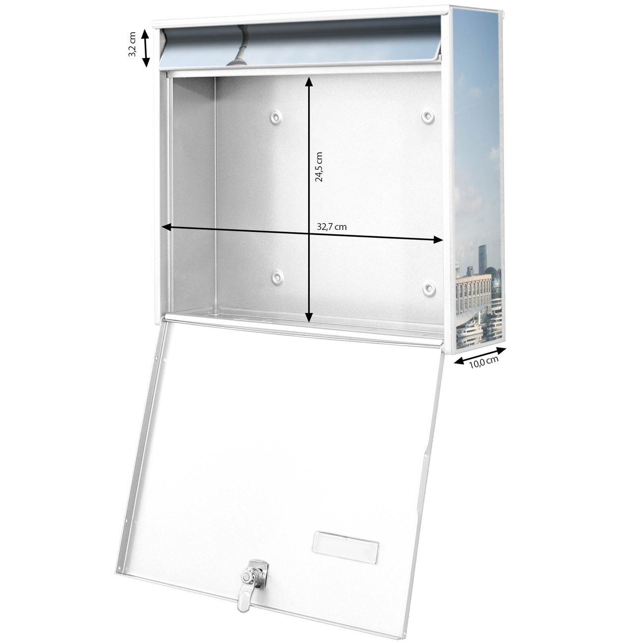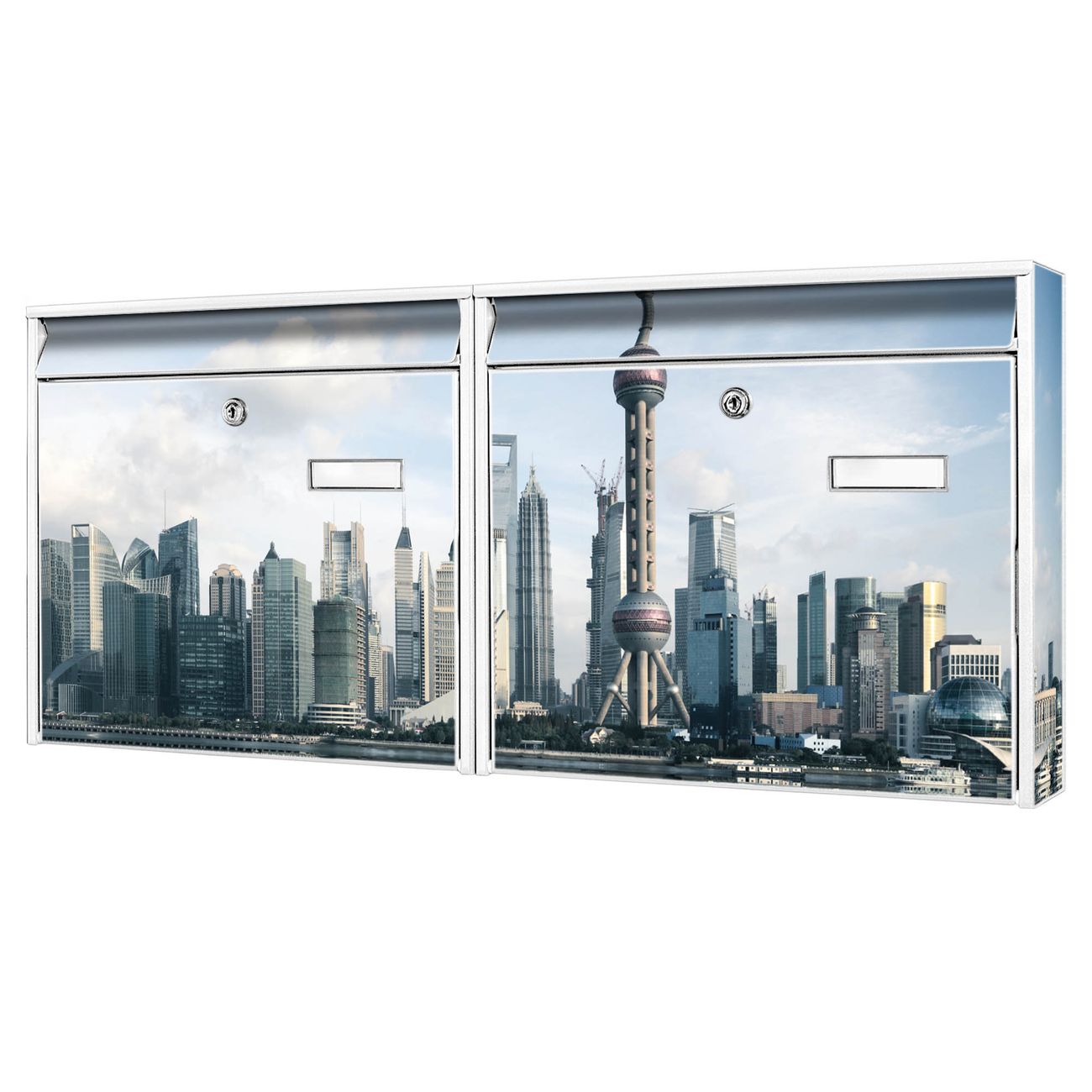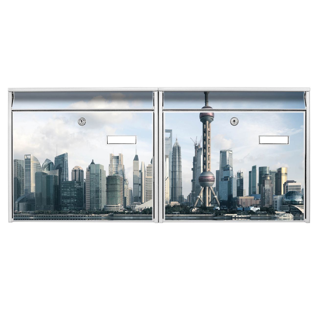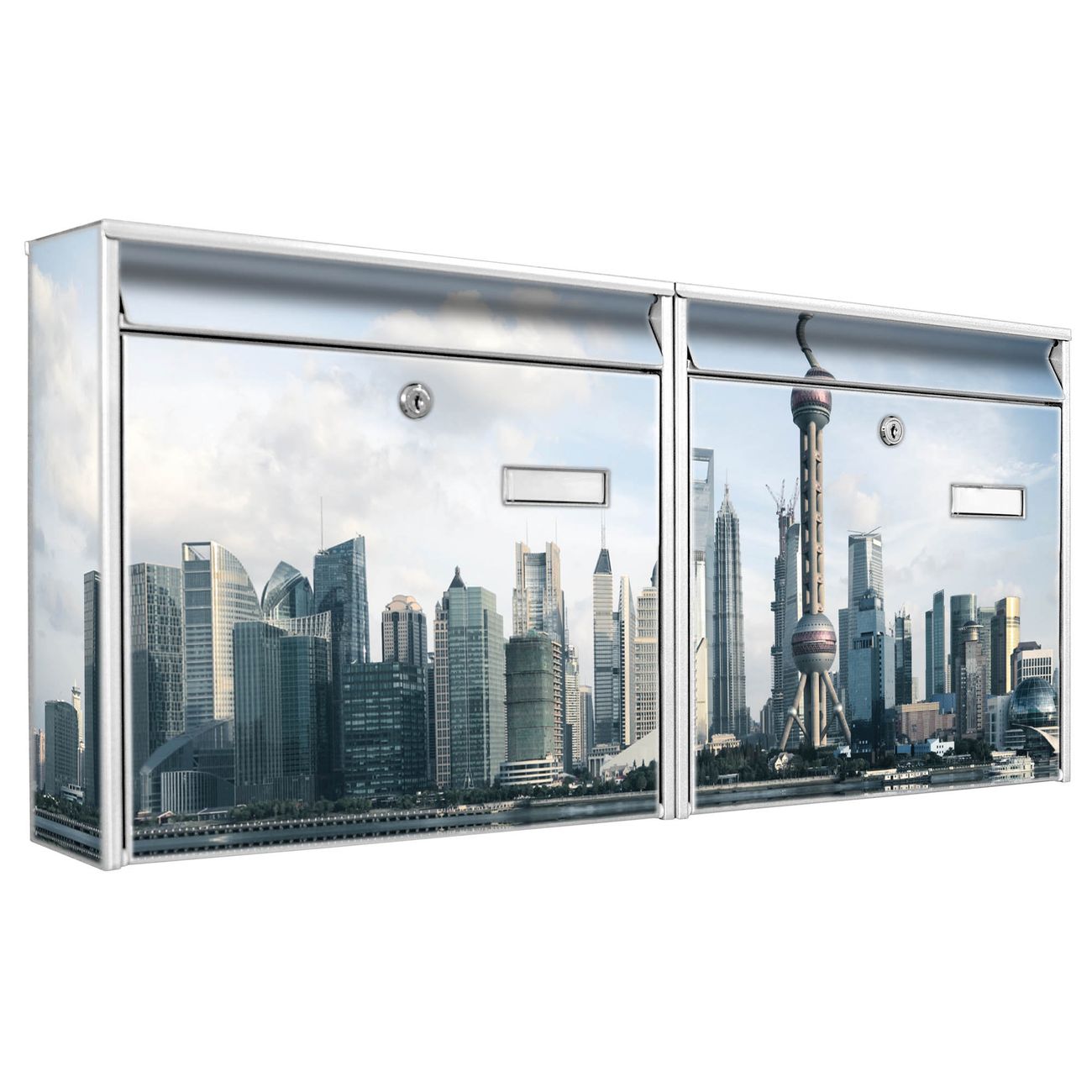 FUNKTION: Die Burg Wächter doppel Briefkastenanlage mit Motiv Shanghai bietet Ihnen ein großes Fassungsvermögen, sodass auch A4 Sendungen eingeworfen werden können. Das Namensschild lässt sich individuell beschriften. DESIGN: Die 2 Briefkästen mit Shanghai Motiv haben ein sehr ansprechendes und zeitloses Design. Heben Sie Sich von der tristen grauen Masse ab, ohne auf Funktionalität zu verzichten. Sie erhalten 2 Schlüssel sowie das Montagematerial. DETAILS: Der Doppelbriefkasten besteht aus verzinktem Stahl weiß. Er ist 72,5cm x 32,2cm x 10cm groß. Das Motiv besteht aus einer wetter- und UV-festen Folie, die Ihren Briefkasten zusätzlich vor Kratzern schützt. NUTZEN: Die stabile Bauart sowie die Wetterfestigkeit machen diese doppel Briefkästen zu einem zuverlässigen Begleiter im Alltag. Effektvoll in Reihe gehangen schmückt die Anlage jede Hauswand. BANJADO: Ihr Briefkasten wird in Sachsen in einer kleinen Manufaktur von Hand veredelt. Die Motivfolie ist lösungsmittelfrei und schutzlaminiert für einen langen Halt. Wir legen großen Wert auf die Verbindung von Funktionalität und Design. Sie erhalten Handarbeit aus Sachsen.