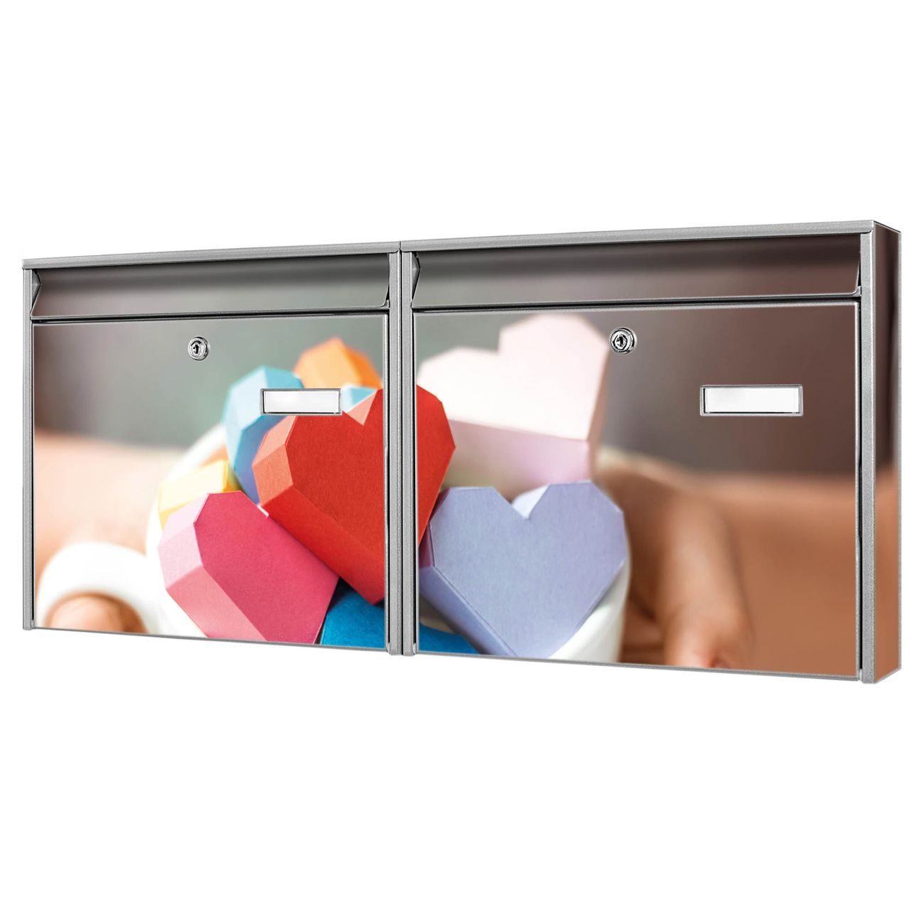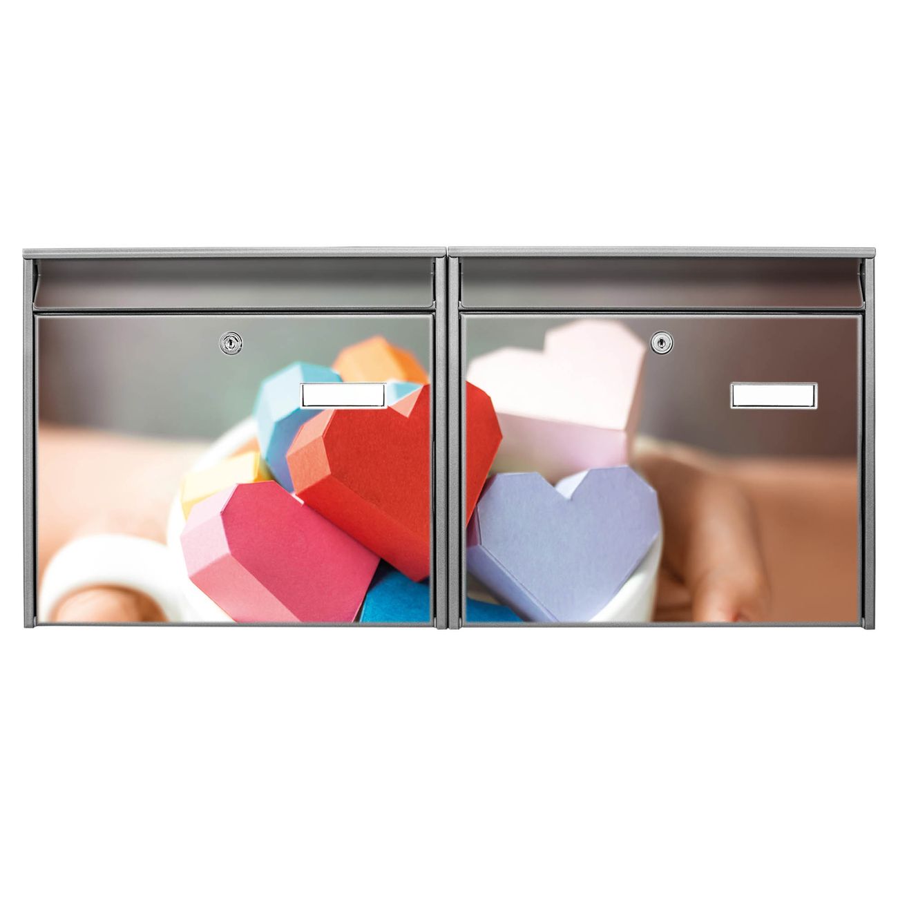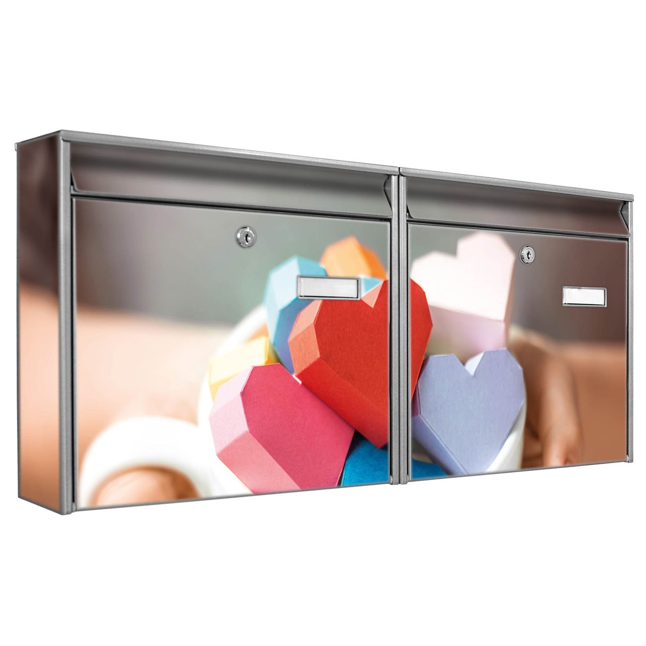 Doppelbriefkasten quer Tasse voller Herzen