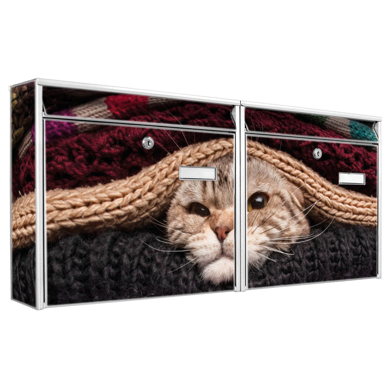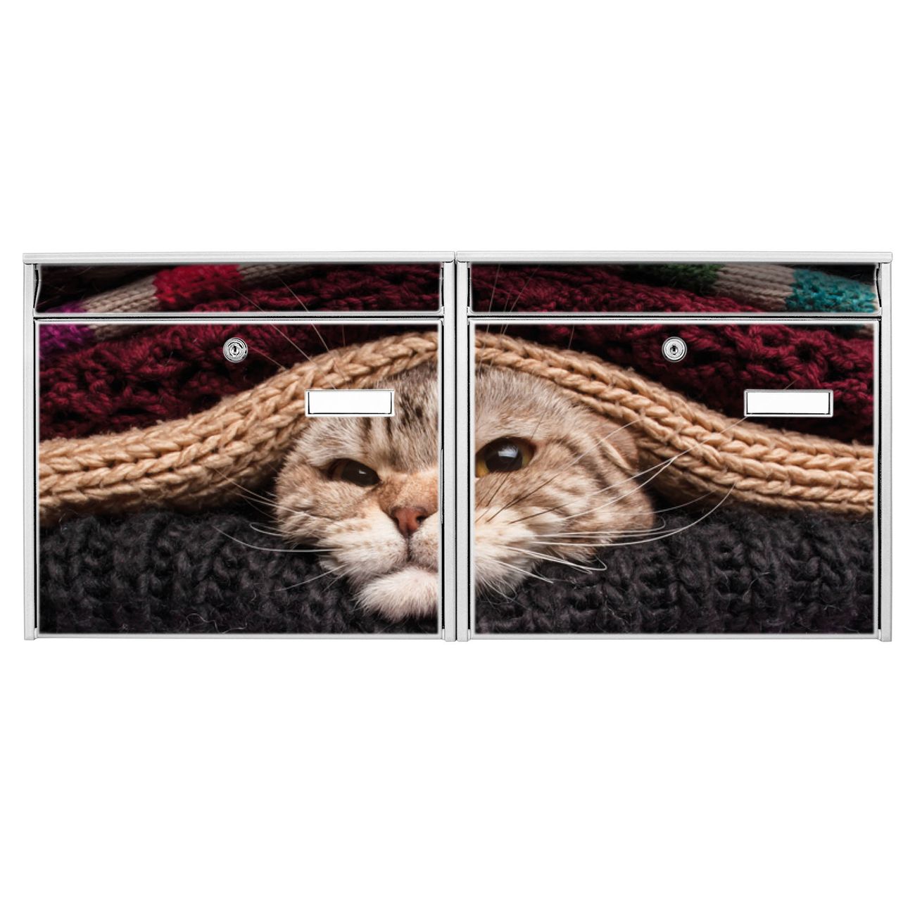 FUNKTION: Die Burg Wächter doppel Briefkastenanlage mit Motiv Theo bietet Ihnen ein großes Fassungsvermögen, sodass auch A4 Sendungen eingeworfen werden können. Das Namensschild lässt sich individuell beschriften. DESIGN: Die 2 Briefkästen mit Theo Motiv haben ein sehr ansprechendes und zeitloses Design. Heben Sie Sich von der tristen grauen Masse ab, ohne auf Funktionalität zu verzichten. Sie erhalten 2 Schlüssel sowie das Montagematerial. DETAILS: Der Doppelbriefkasten besteht aus verzinktem Stahl weiß. Er ist 72,5cm x 32,2cm x 10cm groß. Das Motiv besteht aus einer wetter- und UV-festen Folie, die Ihren Briefkasten zusätzlich vor Kratzern schützt. NUTZEN: Die stabile Bauart sowie die Wetterfestigkeit machen diese doppel Briefkästen zu einem zuverlässigen Begleiter im Alltag. Effektvoll in Reihe gehangen schmückt die Anlage jede Hauswand. BANJADO: Ihr Briefkasten wird in Sachsen in einer kleinen Manufaktur von Hand veredelt. Die Motivfolie ist lösungsmittelfrei und schutzlaminiert für einen langen Halt. Wir legen großen Wert auf die Verbindung von Funktionalität und Design. Sie erhalten Handarbeit aus Sachsen.