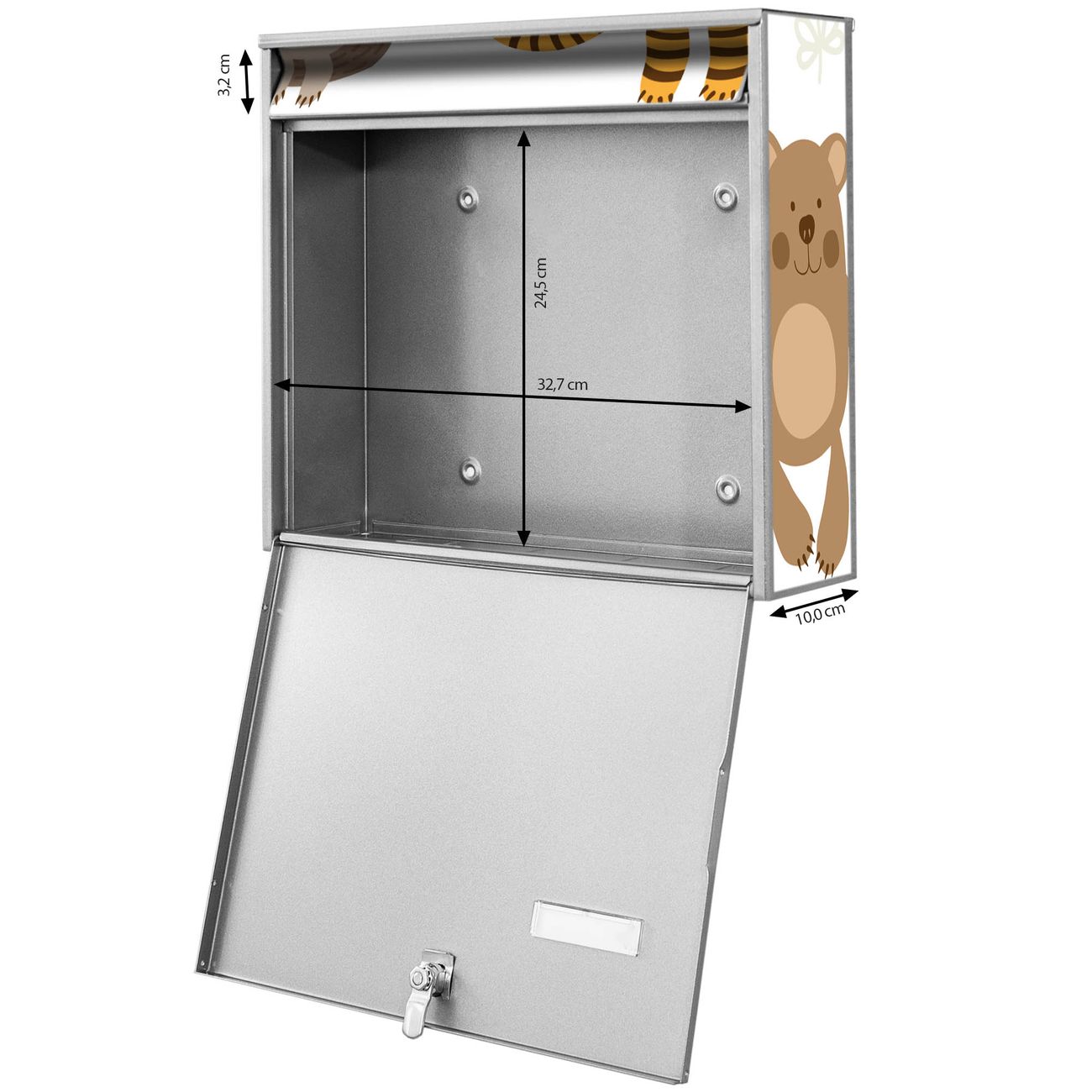 FUNKTION: Die Burg Wächter doppel Briefkastenanlage mit Motiv Tierfreunde bietet Ihnen ein großes Fassungsvermögen, sodass auch A4 Sendungen eingeworfen werden können. Das Namensschild lässt sich individuell beschriften. DESIGN: Die 2 Briefkästen mit Tierfreunde Motiv haben ein sehr ansprechendes und zeitloses Design. Heben Sie Sich von der tristen grauen Masse ab, ohne auf Funktionalität zu verzichten. Sie erhalten 2 Schlüssel sowie das Montagematerial. DETAILS: Der Doppelbriefkasten besteht aus verzinktem Stahl weiß. Er ist 72,5cm x 32,2cm x 10cm groß. Das Motiv besteht aus einer wetter- und UV-festen Folie, die Ihren Briefkasten zusätzlich vor Kratzern schützt. NUTZEN: Die stabile Bauart sowie die Wetterfestigkeit machen diese doppel Briefkästen zu einem zuverlässigen Begleiter im Alltag. Effektvoll in Reihe gehangen schmückt die Anlage jede Hauswand. BANJADO: Ihr Briefkasten wird in Sachsen in einer kleinen Manufaktur von Hand veredelt. Die Motivfolie ist lösungsmittelfrei und schutzlaminiert für einen langen Halt. Wir legen großen Wert auf die Verbindung von Funktionalität und Design. Sie erhalten Handarbeit aus Sachsen.