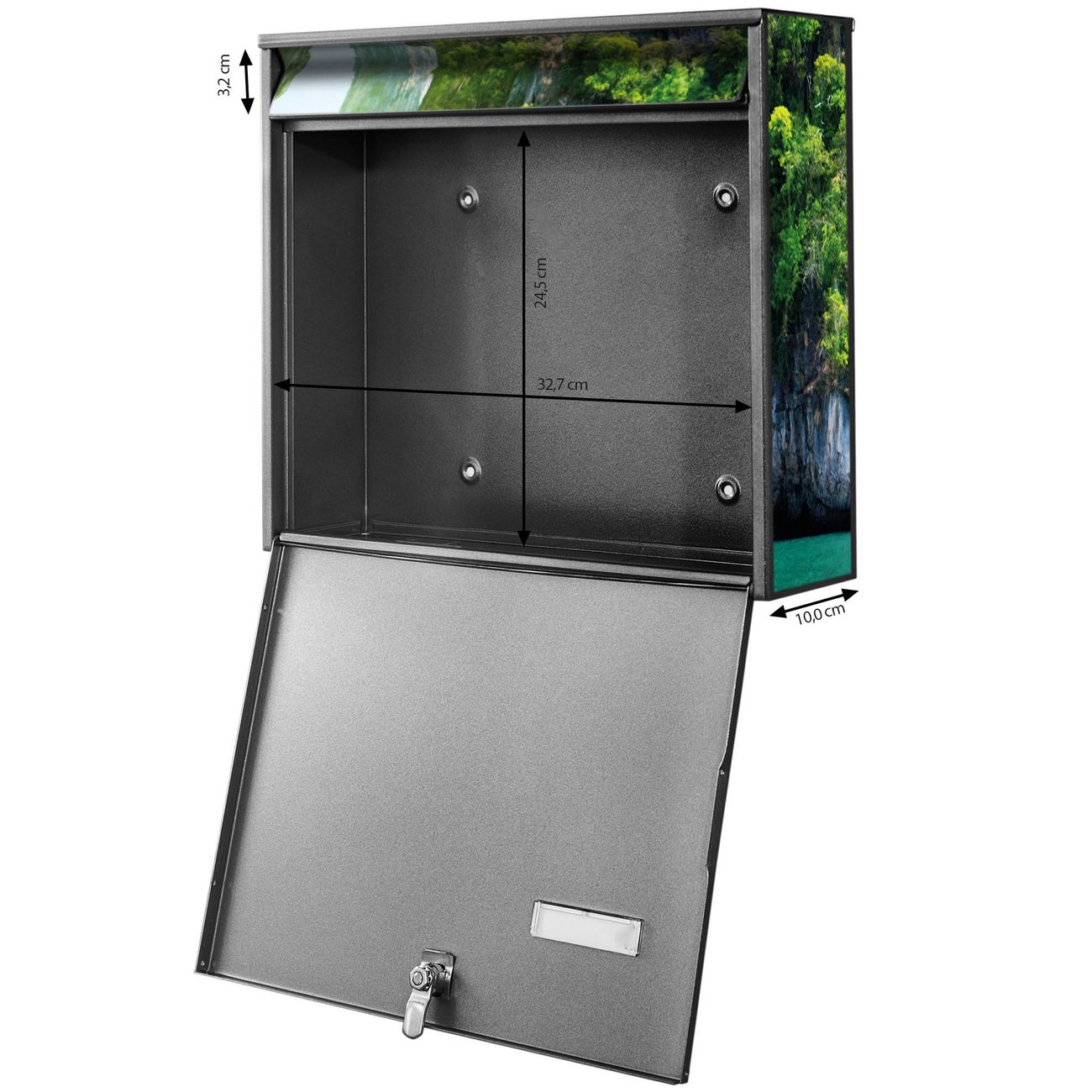 FUNKTION: Die Burg Wächter doppel Briefkastenanlage mit Motiv Versteckte Bucht bietet Ihnen ein großes Fassungsvermögen, sodass auch A4 Sendungen eingeworfen werden können. Das Namensschild lässt sich individuell beschriften. DESIGN: Die 2 Briefkästen mit Versteckte Bucht Motiv haben ein sehr ansprechendes und zeitloses Design. Heben Sie Sich von der tristen grauen Masse ab, ohne auf Funktionalität zu verzichten. Sie erhalten 2 Schlüssel sowie das Montagematerial. DETAILS: Der Doppelbriefkasten besteht aus verzinktem Stahl weiß. Er ist 72,5cm x 32,2cm x 10cm groß. Das Motiv besteht aus einer wetter- und UV-festen Folie, die Ihren Briefkasten zusätzlich vor Kratzern schützt. NUTZEN: Die stabile Bauart sowie die Wetterfestigkeit machen diese doppel Briefkästen zu einem zuverlässigen Begleiter im Alltag. Effektvoll in Reihe gehangen schmückt die Anlage jede Hauswand. BANJADO: Ihr Briefkasten wird in Sachsen in einer kleinen Manufaktur von Hand veredelt. Die Motivfolie ist lösungsmittelfrei und schutzlaminiert für einen langen Halt. Wir legen großen Wert auf die Verbindung von Funktionalität und Design. Sie erhalten Handarbeit aus Sachsen.